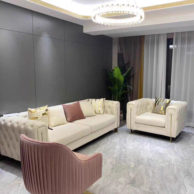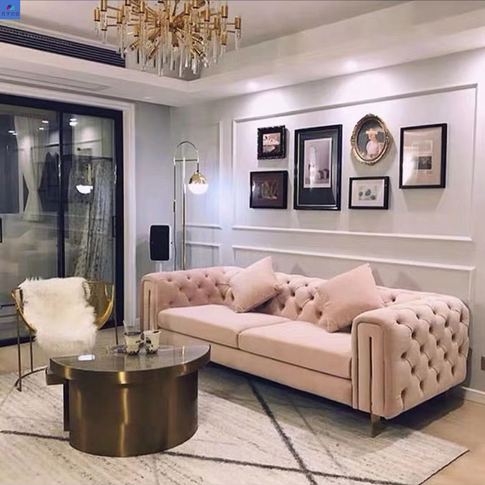버클 및 회전 의자 조합 소파를 가진 현대 빛 럭셔리 패브릭 거실 소파 아메리칸 스타일 스트레이트 123