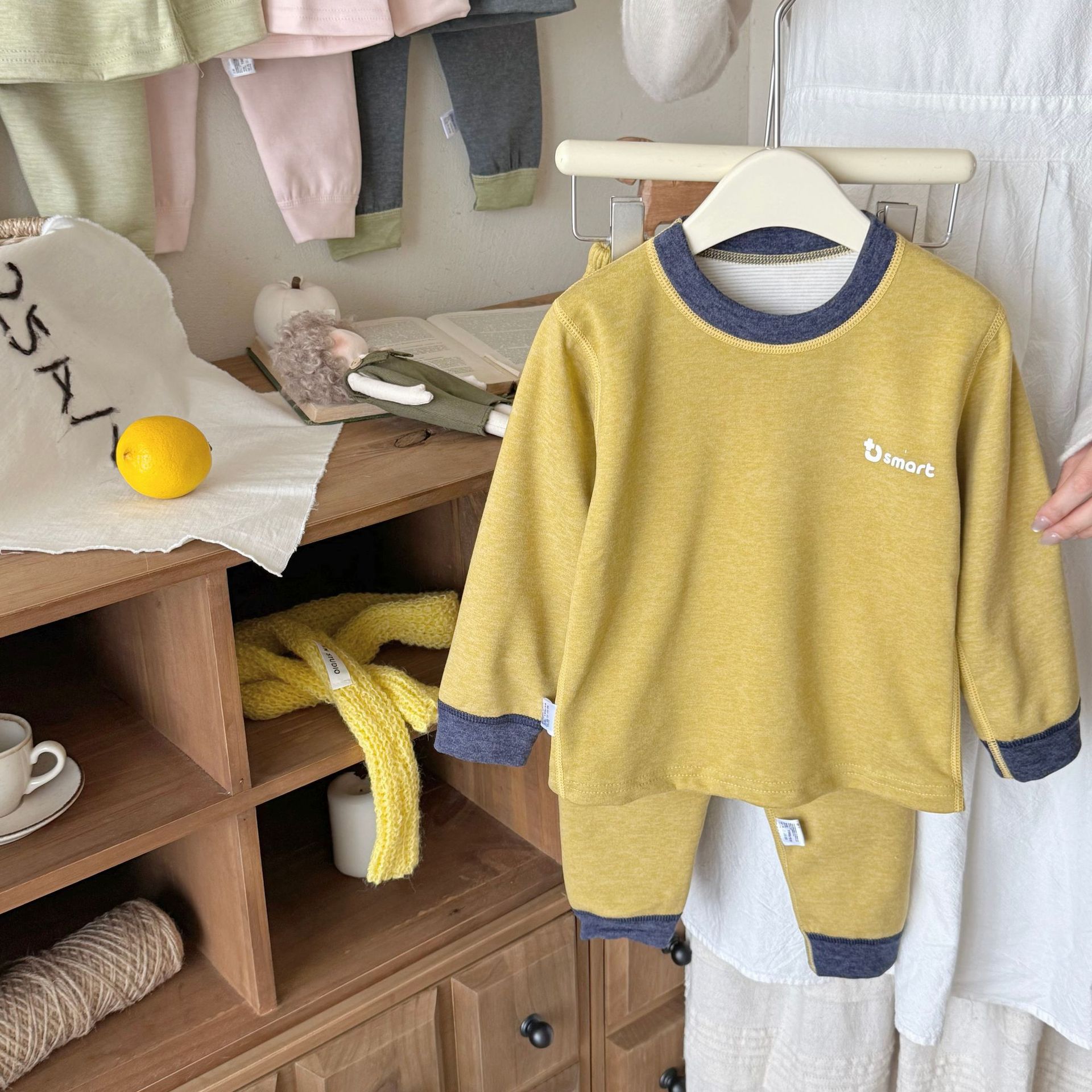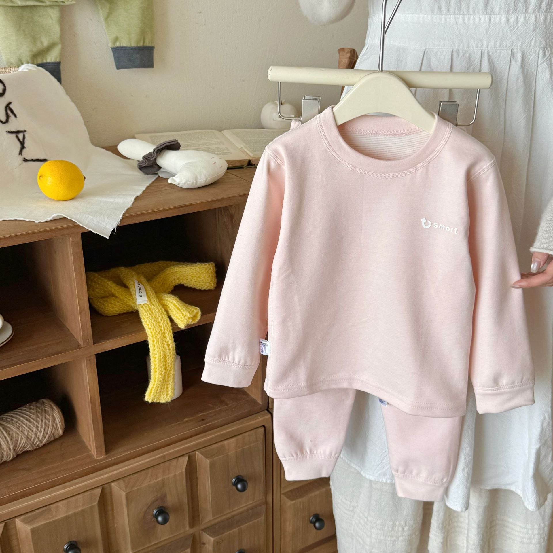 Qiqi 아기 어린이 잠옷 뼈없는 양면 양모 실크 가을, 겨울 두꺼운 가을 옷과 긴 바지 따뜻한 속옷 세트