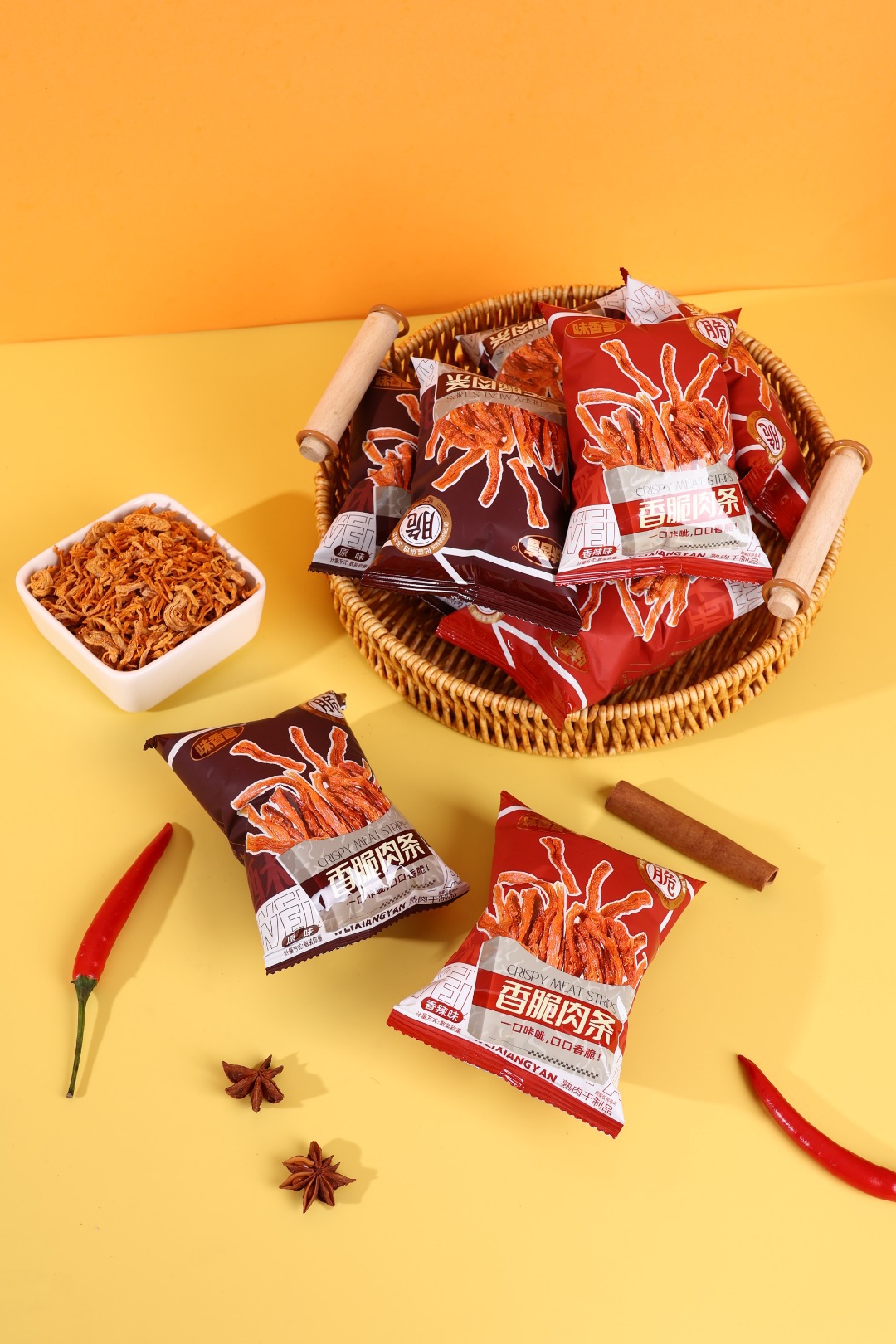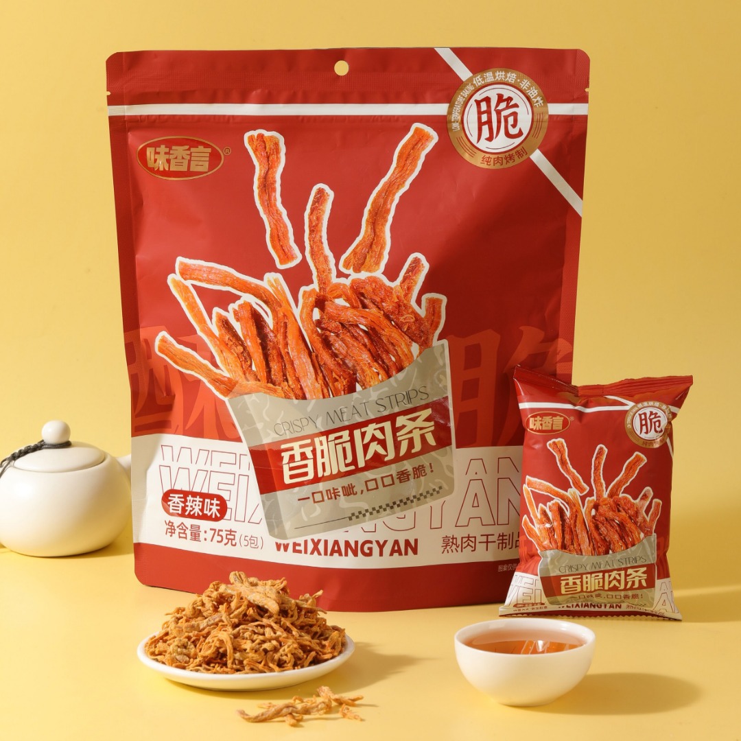 • 크리스피 미트 스트립 오리지널 맛 75g에는 5개의 작은 패킷이 들어 있습니다.
