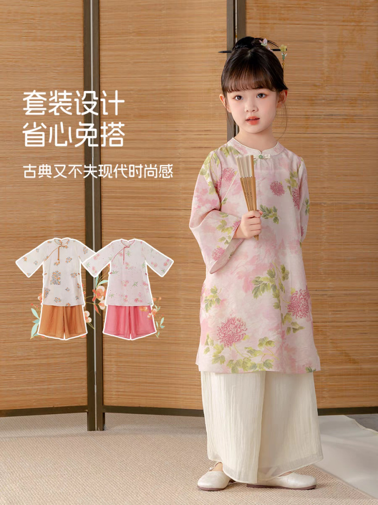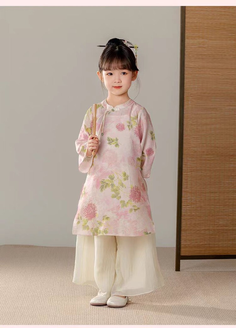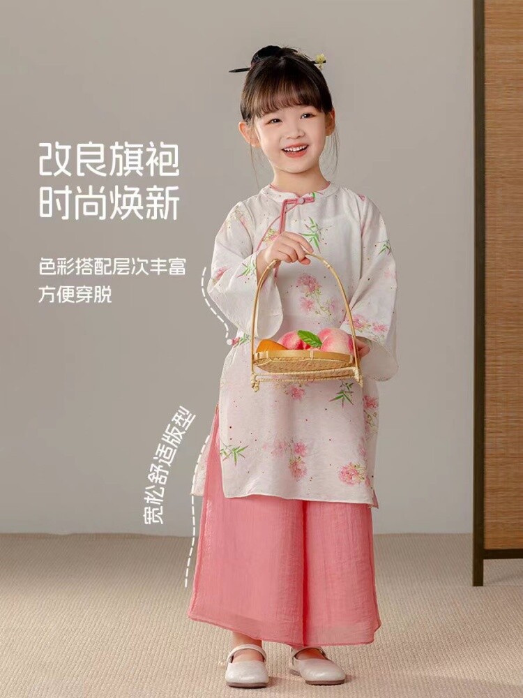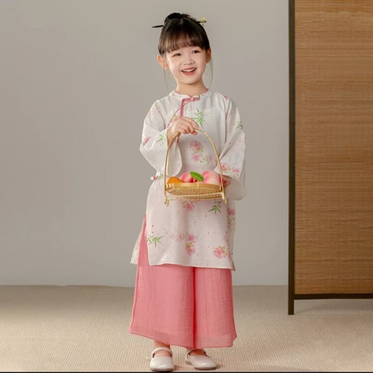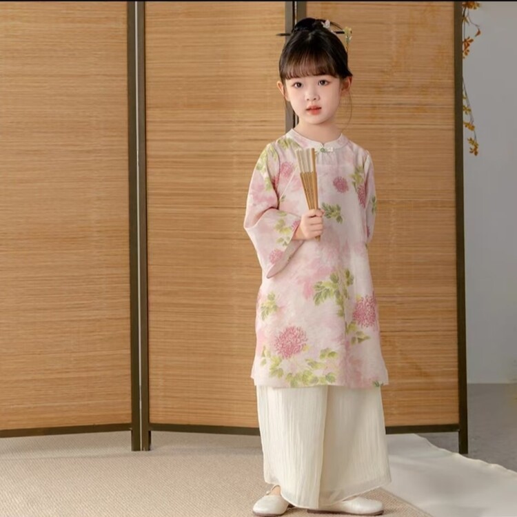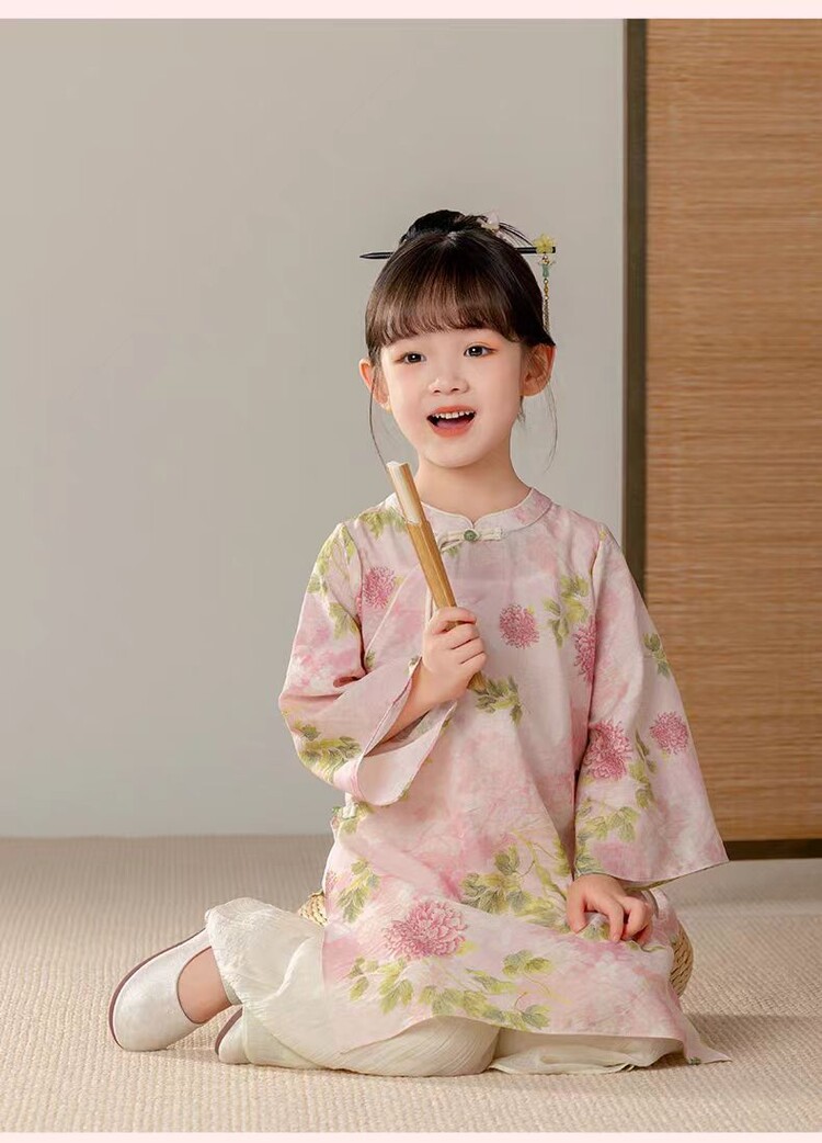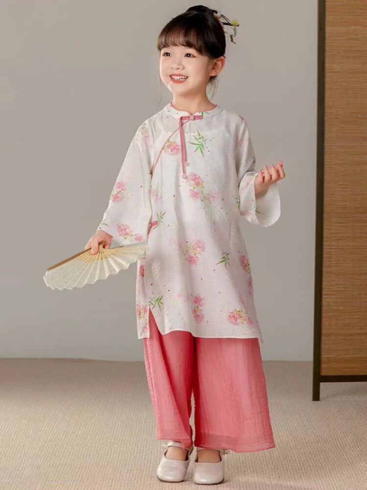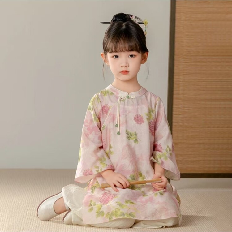 중국 스타일 소녀 청삼 새 봄과 가을 긴 소매 새로운 중국 스타일 하이 엔드 서양식 소녀 공연 옷 세트