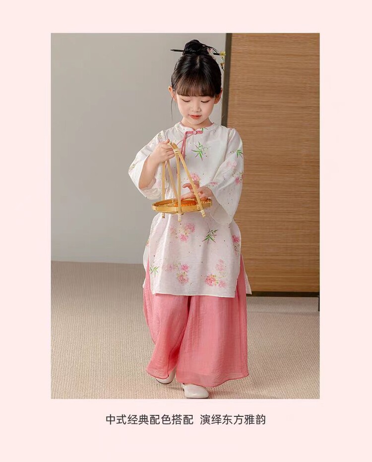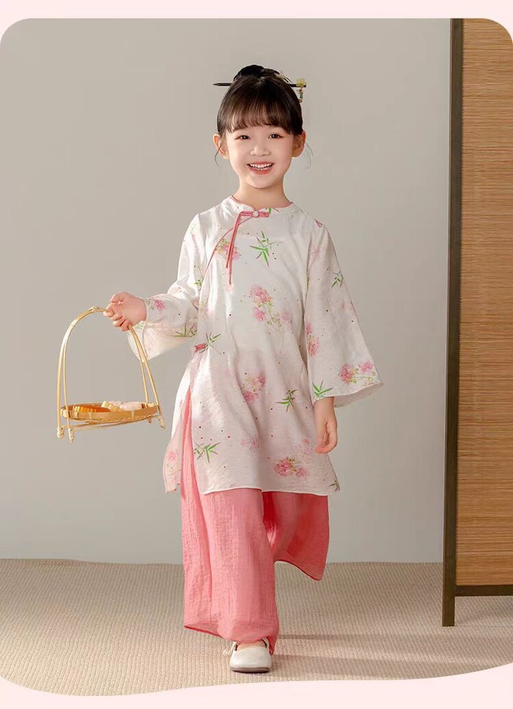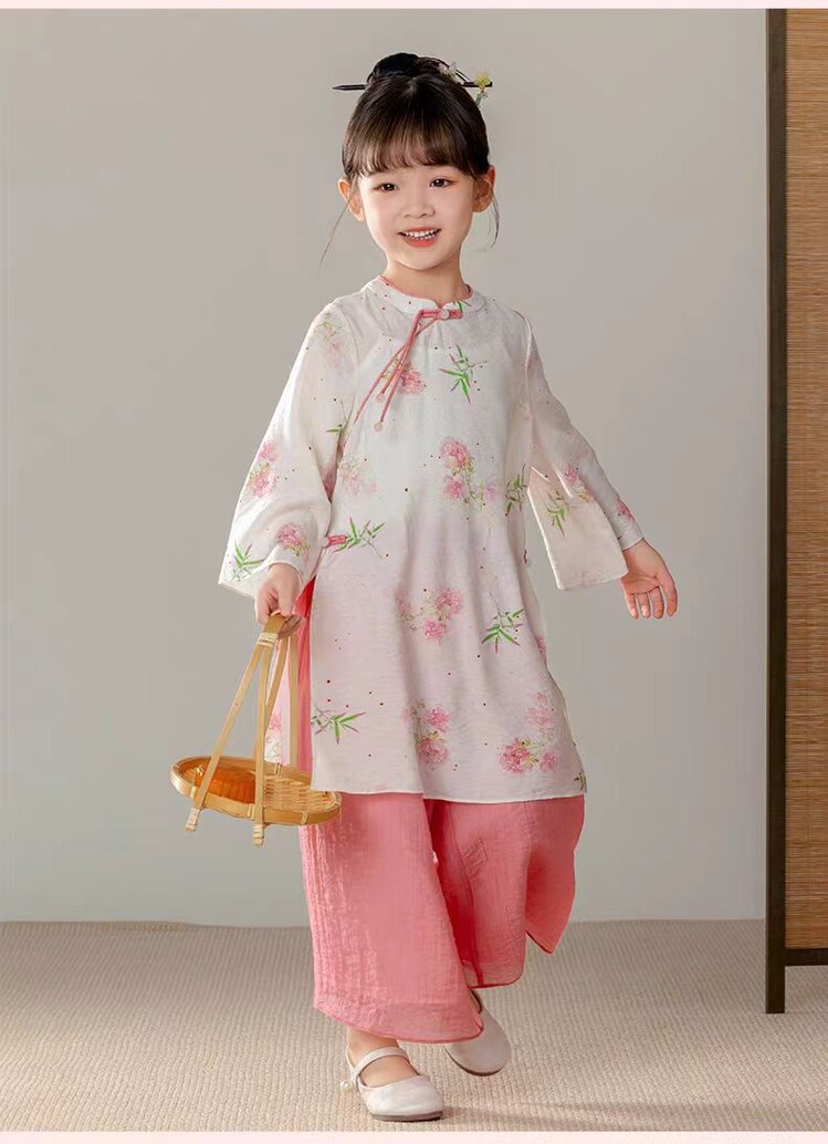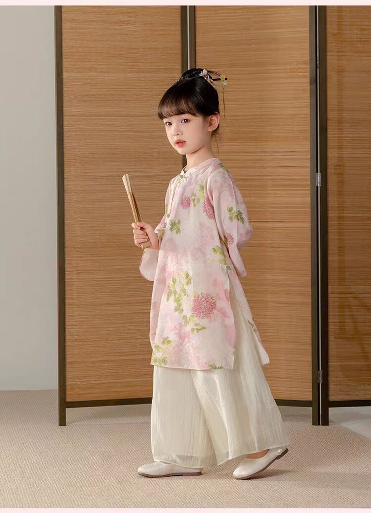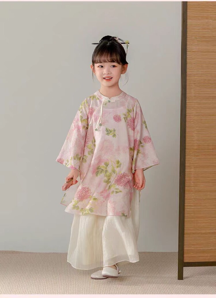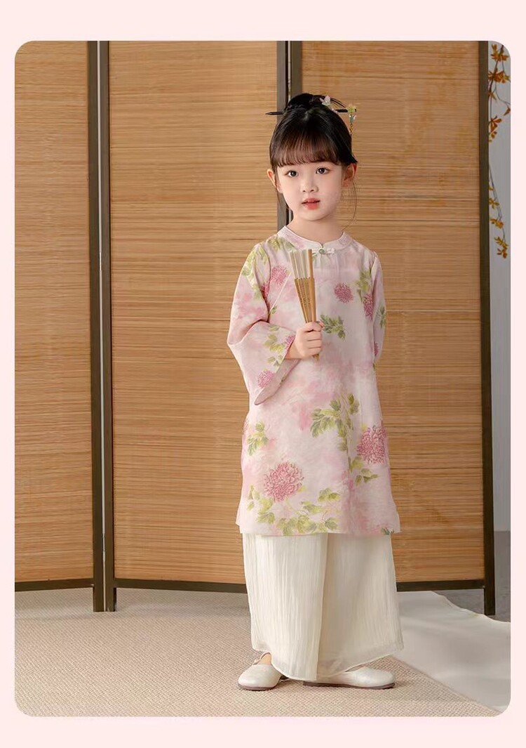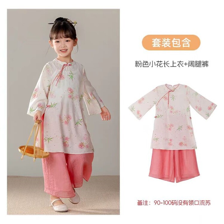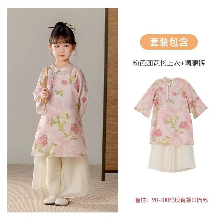 중국 스타일 소녀 청삼 새 봄과 가을 긴 소매 새로운 중국 스타일 하이 엔드 서양식 소녀 공연 옷 세트