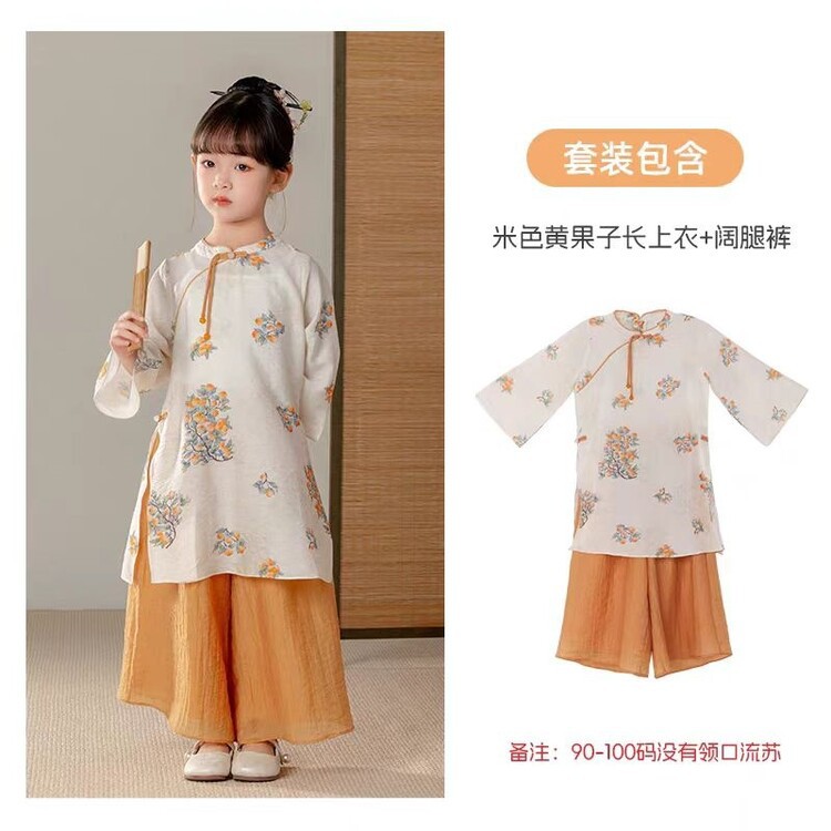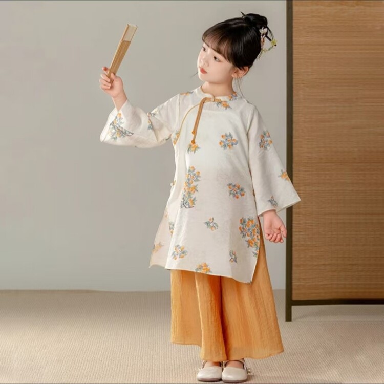 중국 스타일 소녀 청삼 새 봄과 가을 긴 소매 새로운 중국 스타일 하이 엔드 서양식 소녀 공연 옷 세트스토어 가기