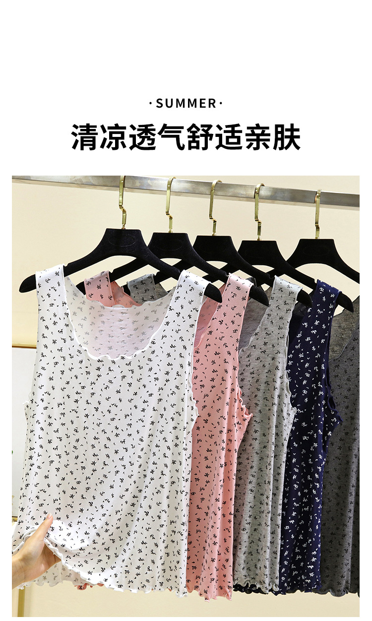 모달 꽃 조끼 여자 여름 라운드 넥 레이스 슬링 플러스 사이즈 민소매 얇은 베이스 셔츠와 함께 침투 방지 탑스토어 가기