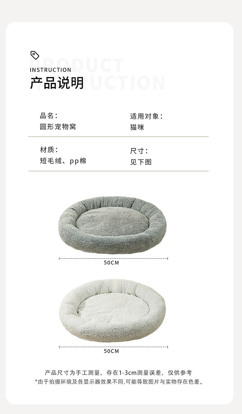 고양이 둥지 따뜻한 고양이 침대 개 둥지 둥근 둥지 착용 방지 부드러운 편안한 매트 겨울 용품 애완 동물 용품 공장 도매스토어 가기