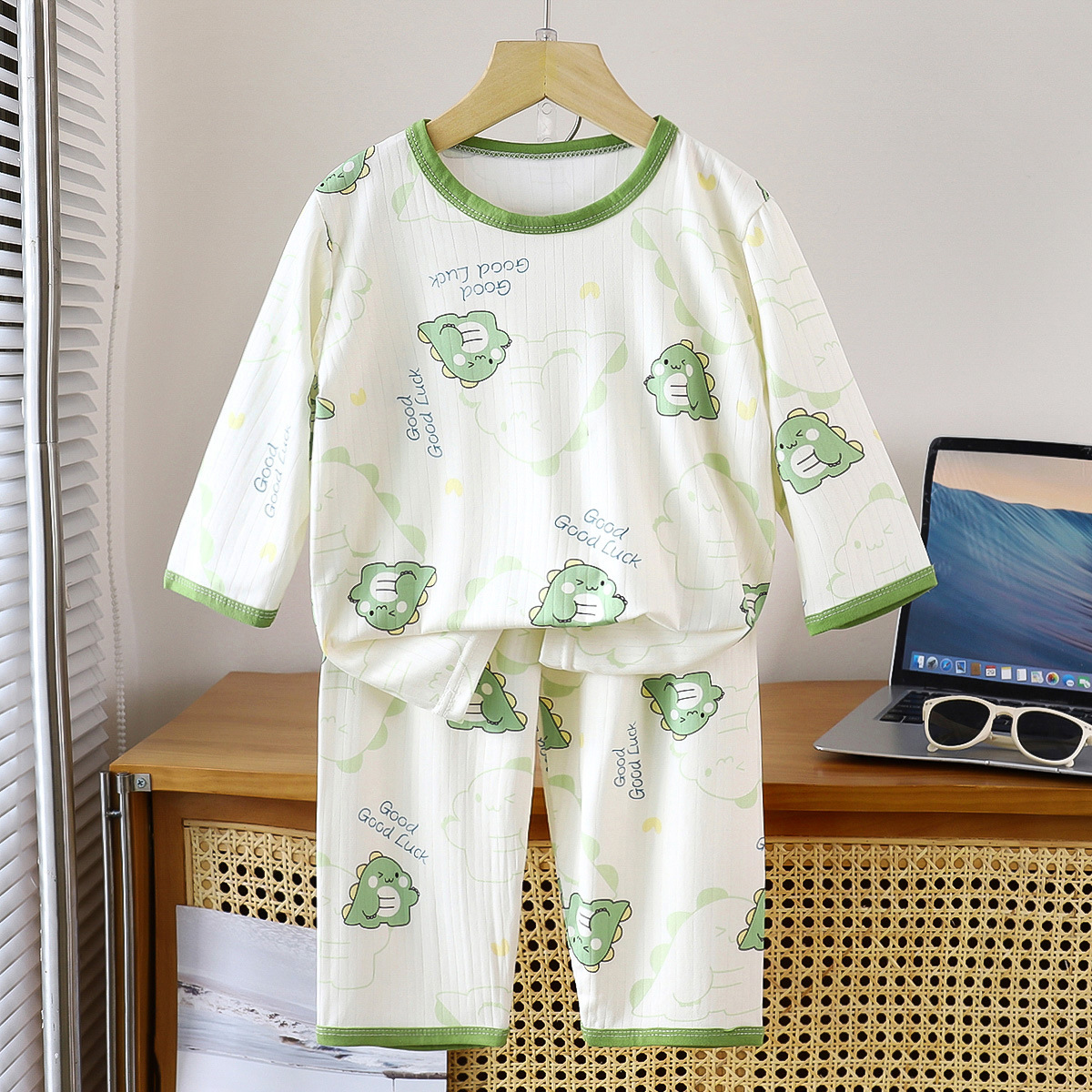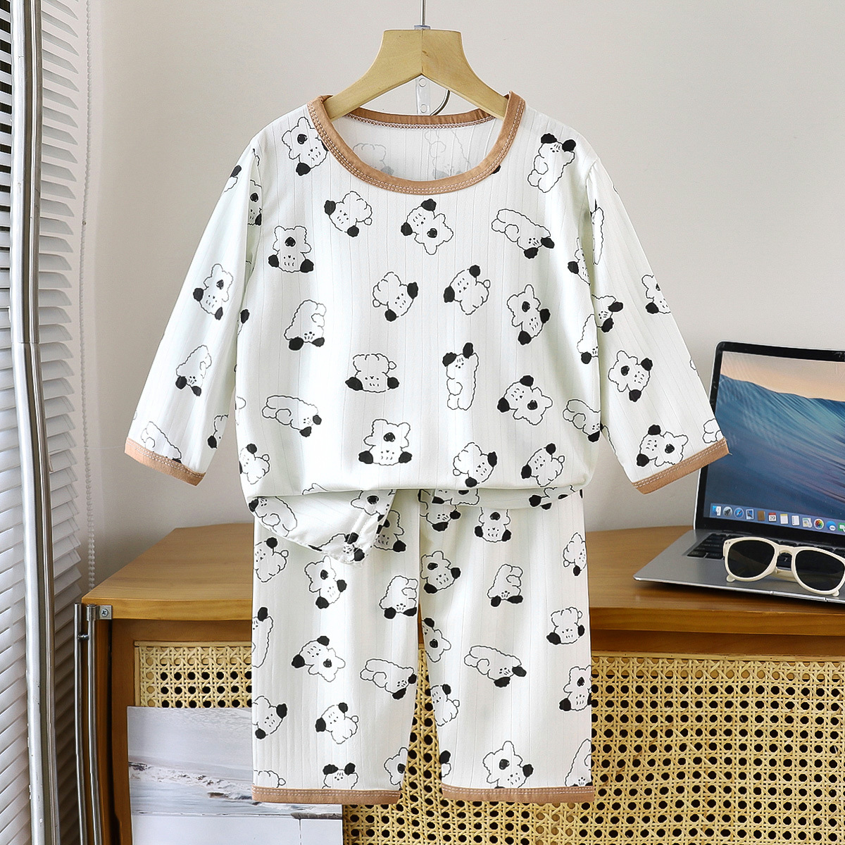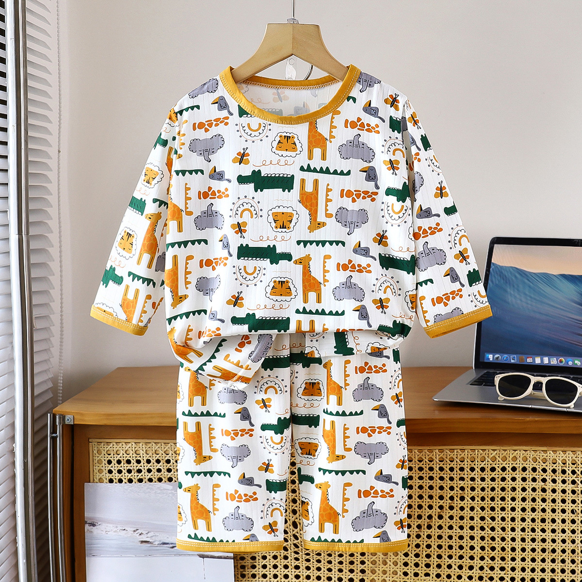 어린 이용 홈 의류 세트 소년 소녀 여름 얇은 에어컨 옷 아기의 여름 잠옷 큰 어린이를위한 투피스 세트