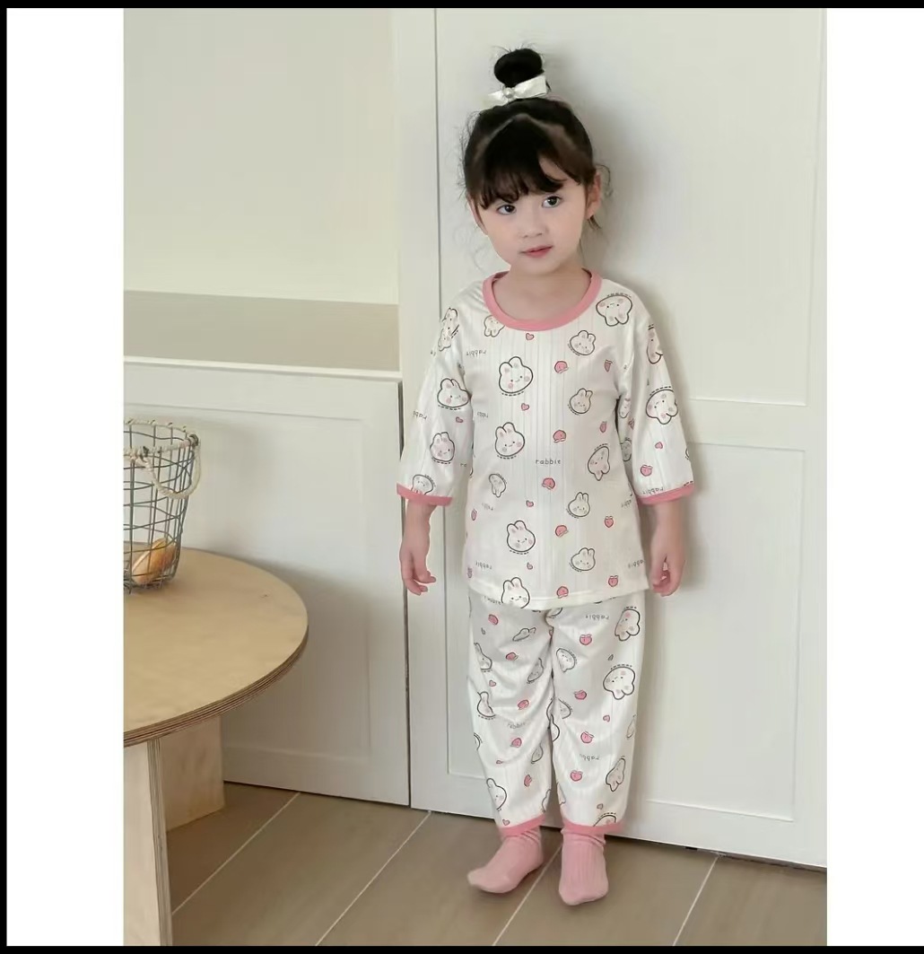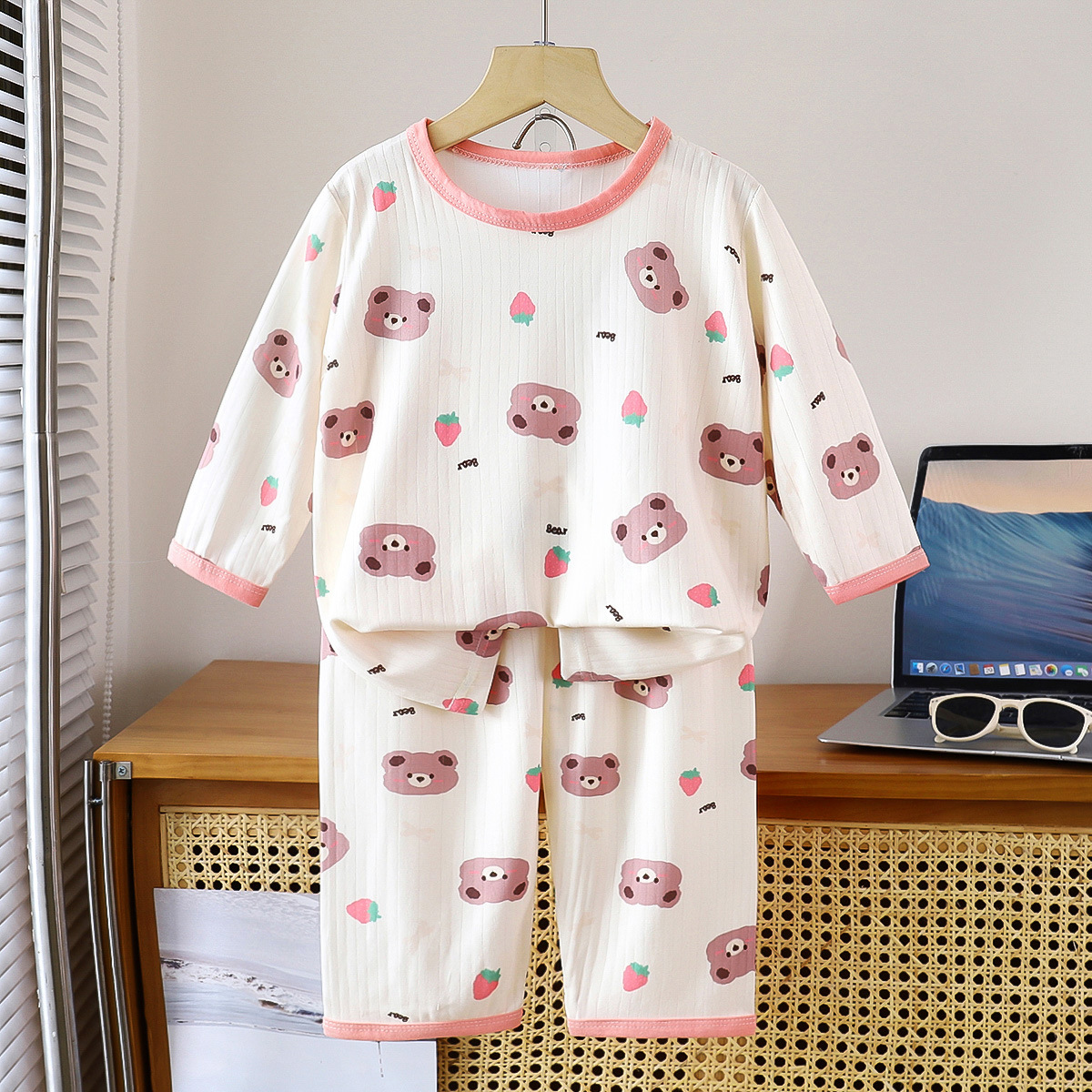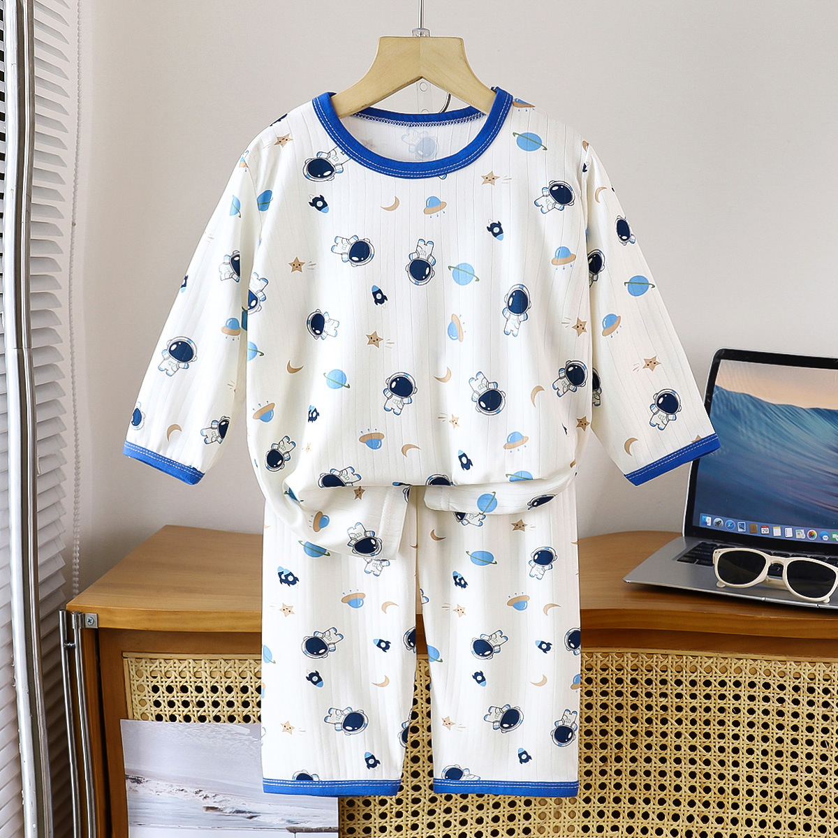 어린 이용 홈 의류 세트 소년 소녀 여름 얇은 에어컨 옷 아기의 여름 잠옷 큰 어린이를위한 투피스 세트