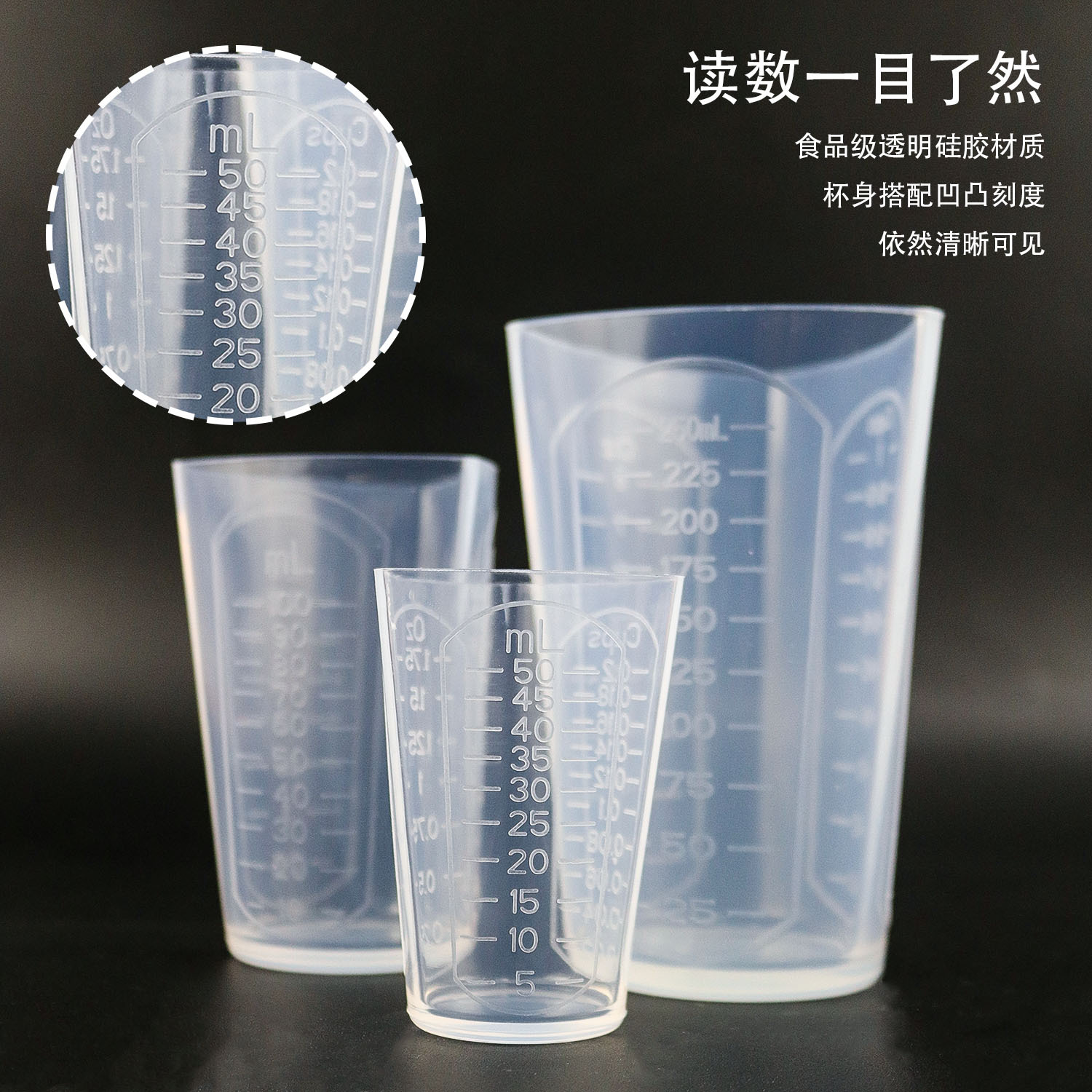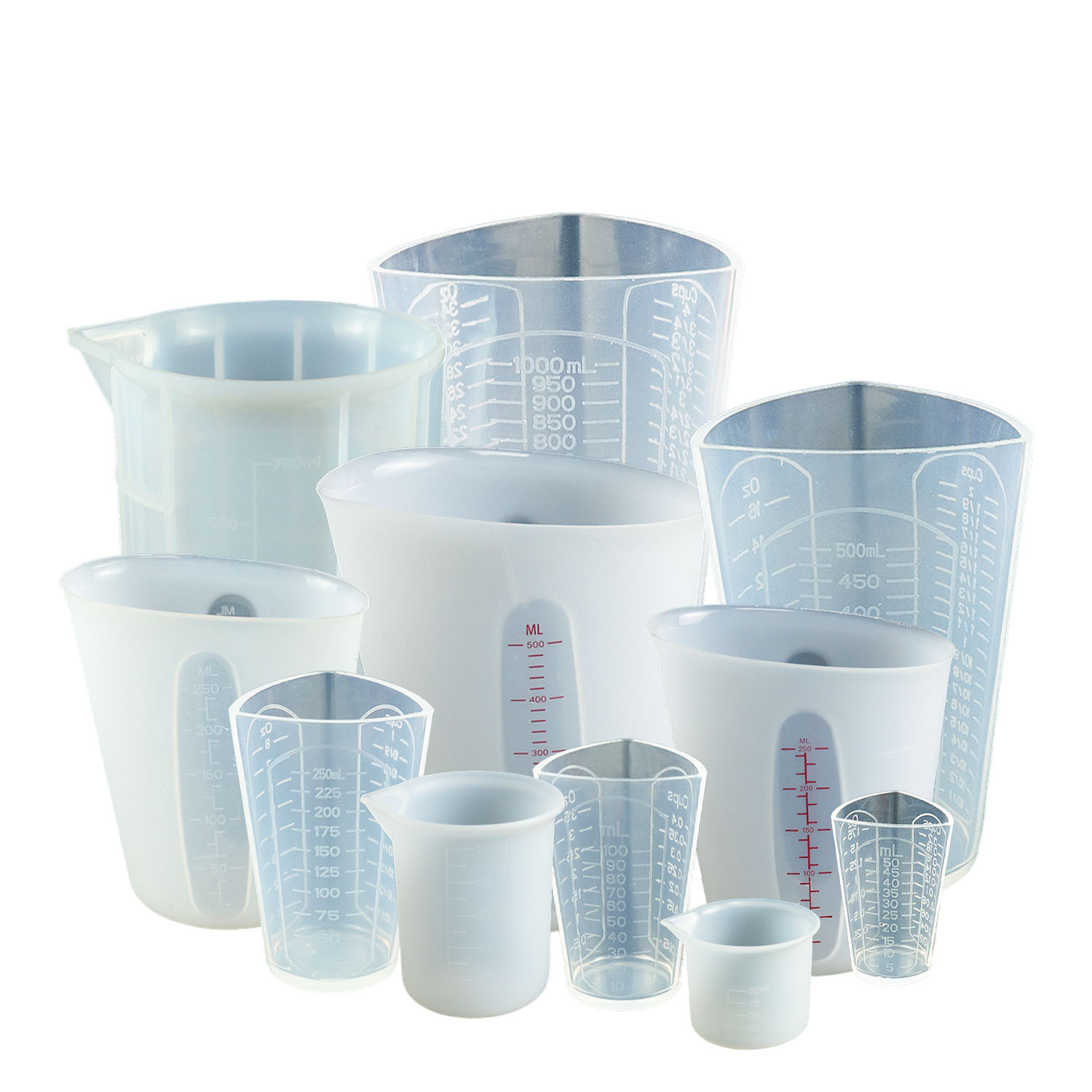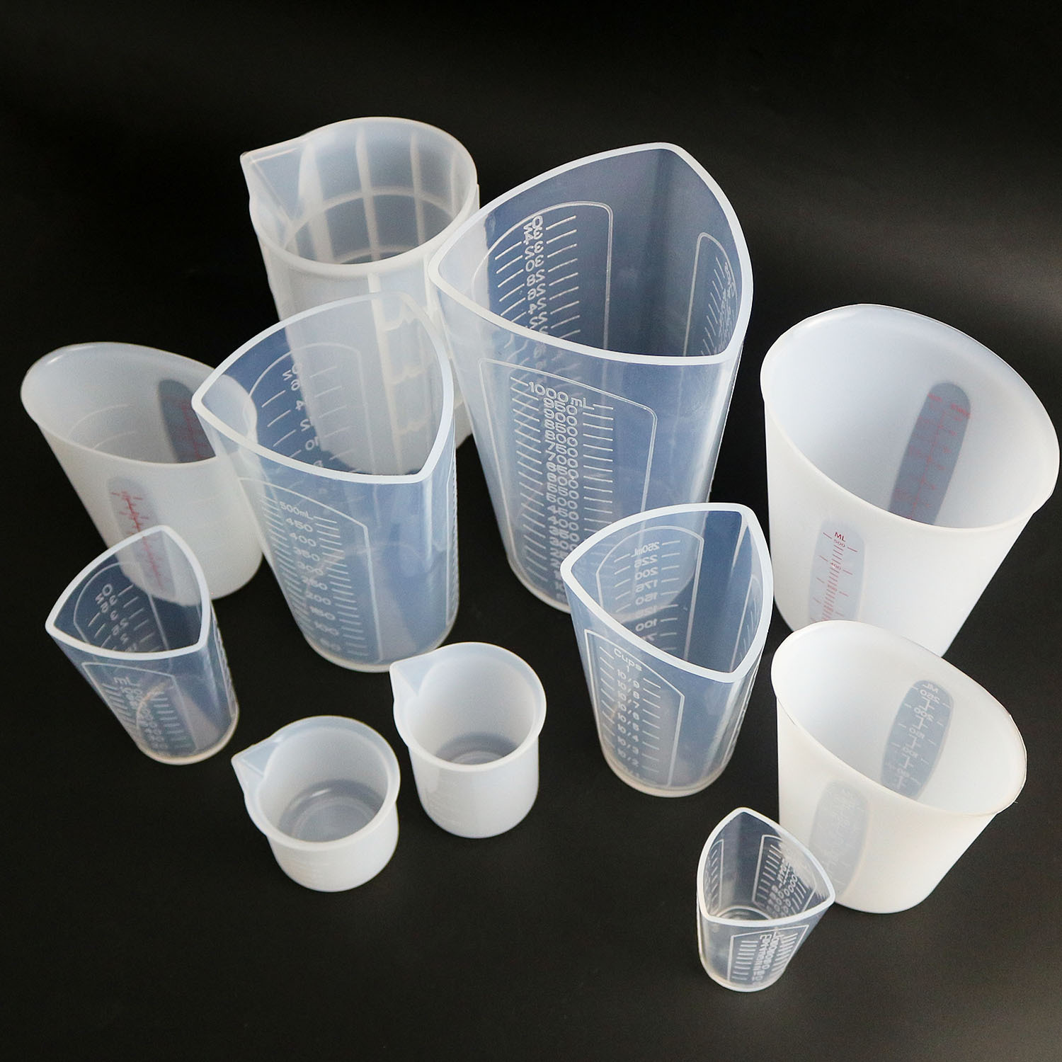 승리 한 실리콘 측정 컵 50ml-1000ml 방울 접착제 금형 도구 컵 시각적 이중 규모 액체 측정 컵