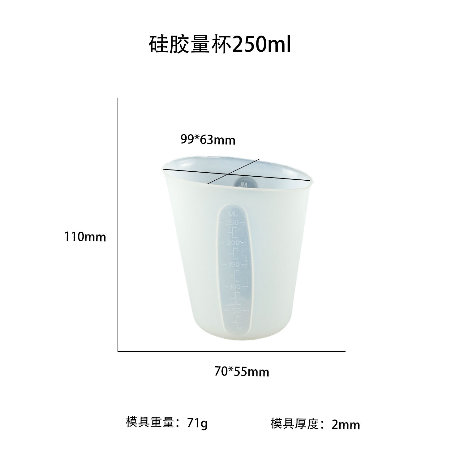 • 투명도가 높은 삼각형 250ml 계량컵 몰드