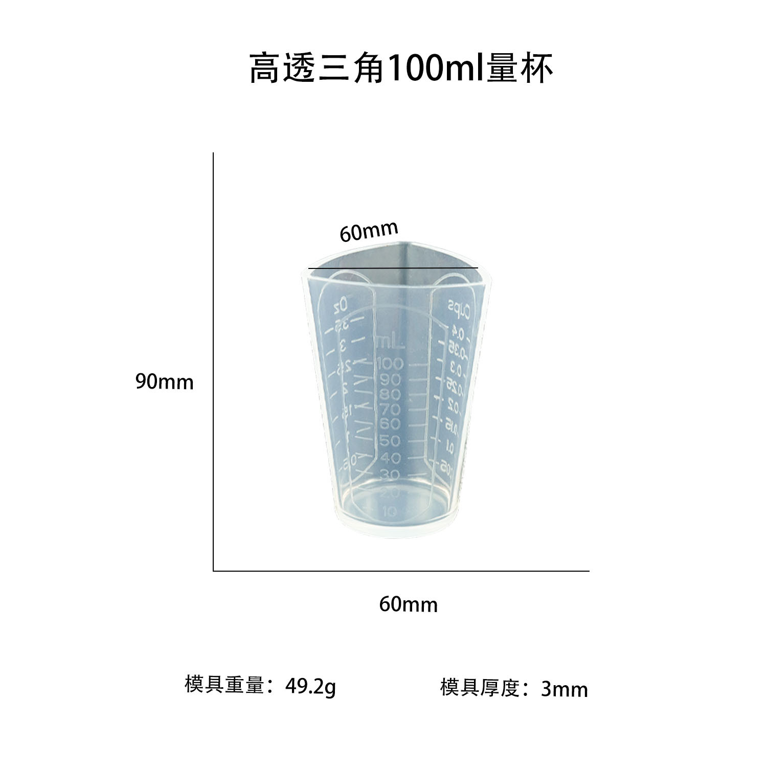 • 투명도가 높은 삼각형 100ml 계량컵 몰드