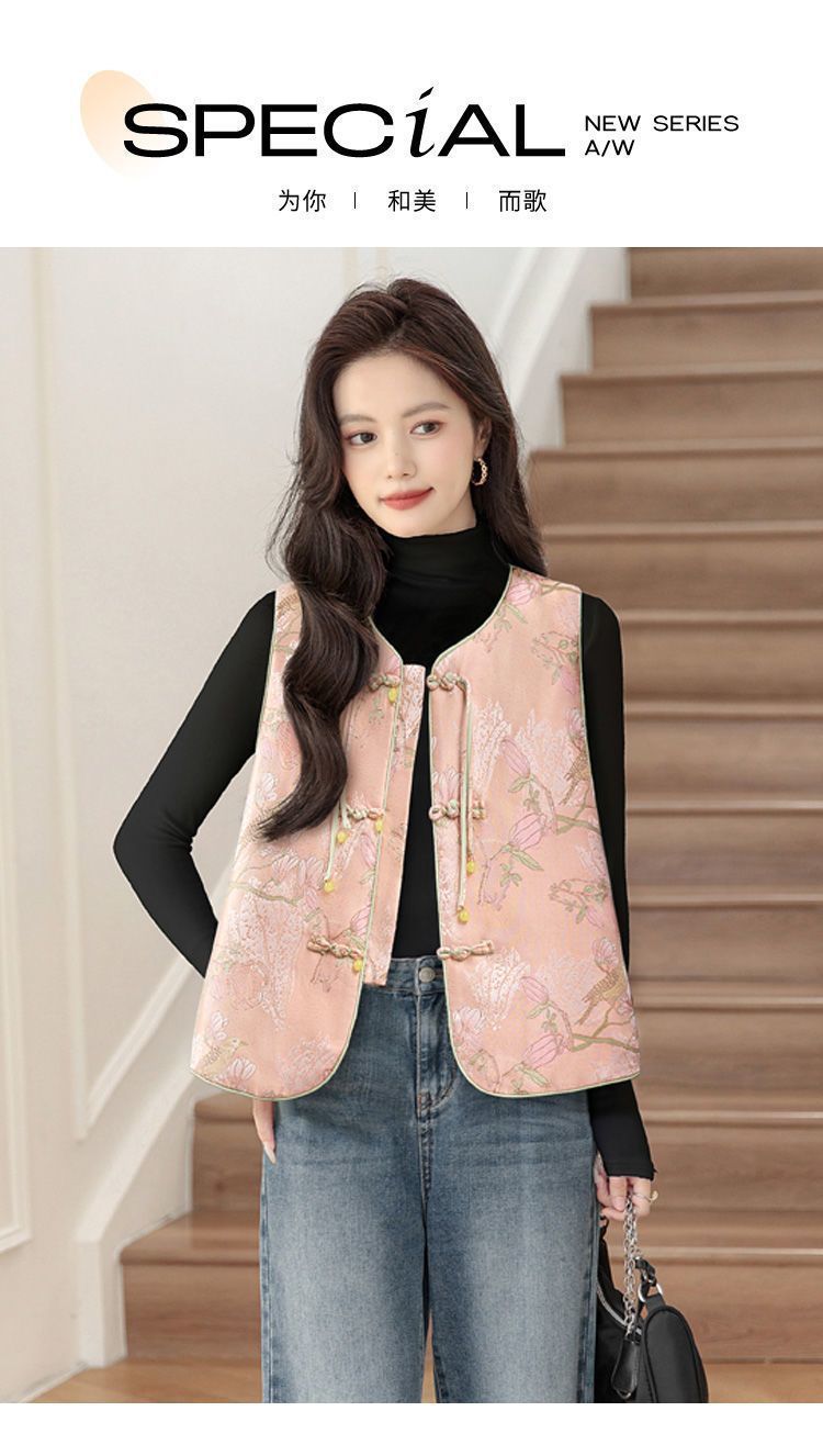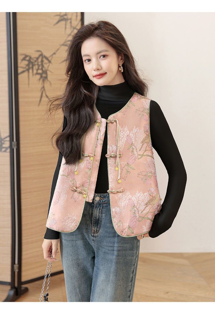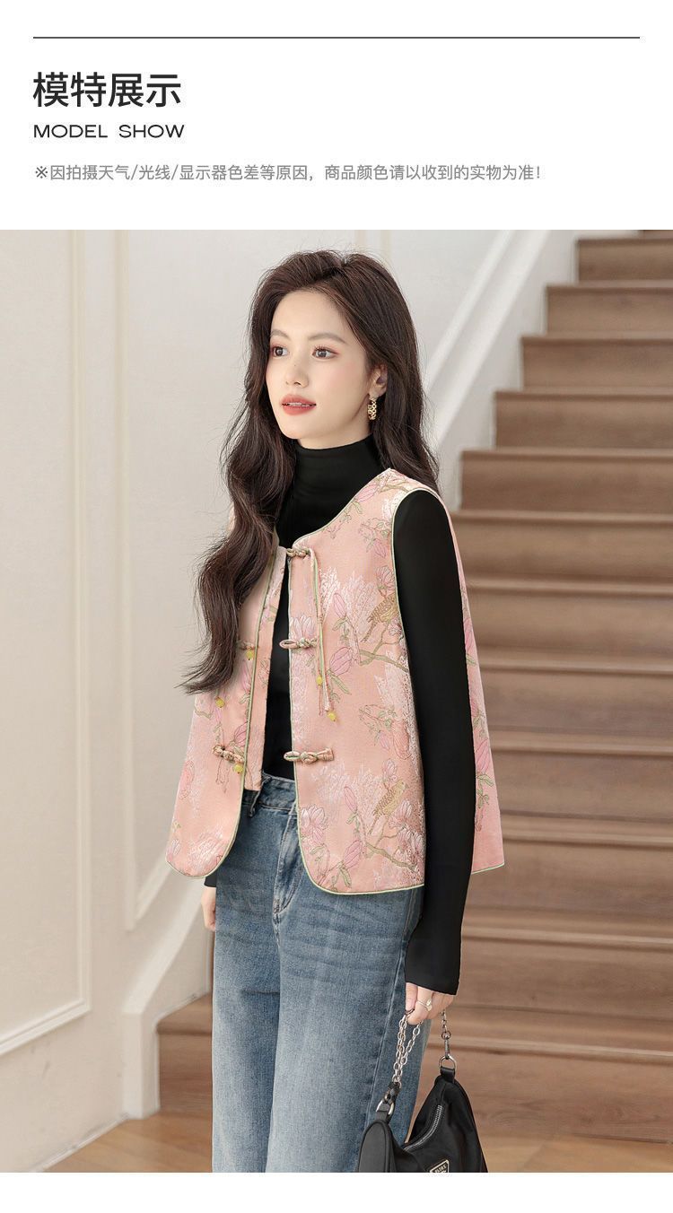 봄 새로운 중국 조끼 여성 명암 인쇄 느슨한 우아한 탑 새로운 중국 스타일 복고풍 성인 조끼 골동품 스타일스토어 가기