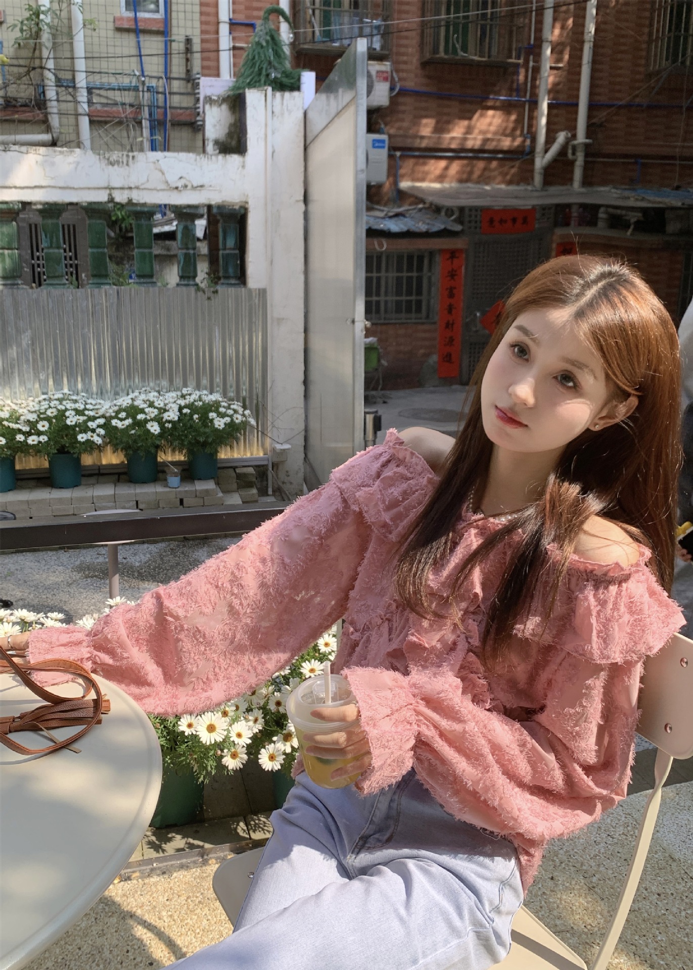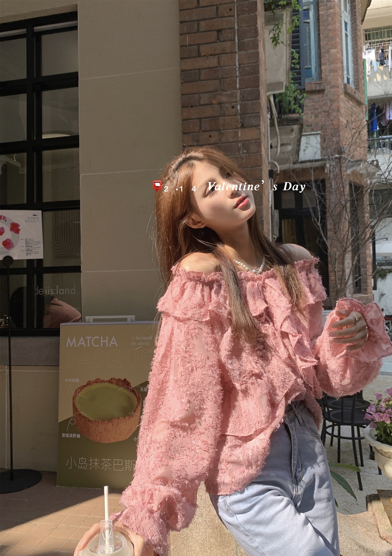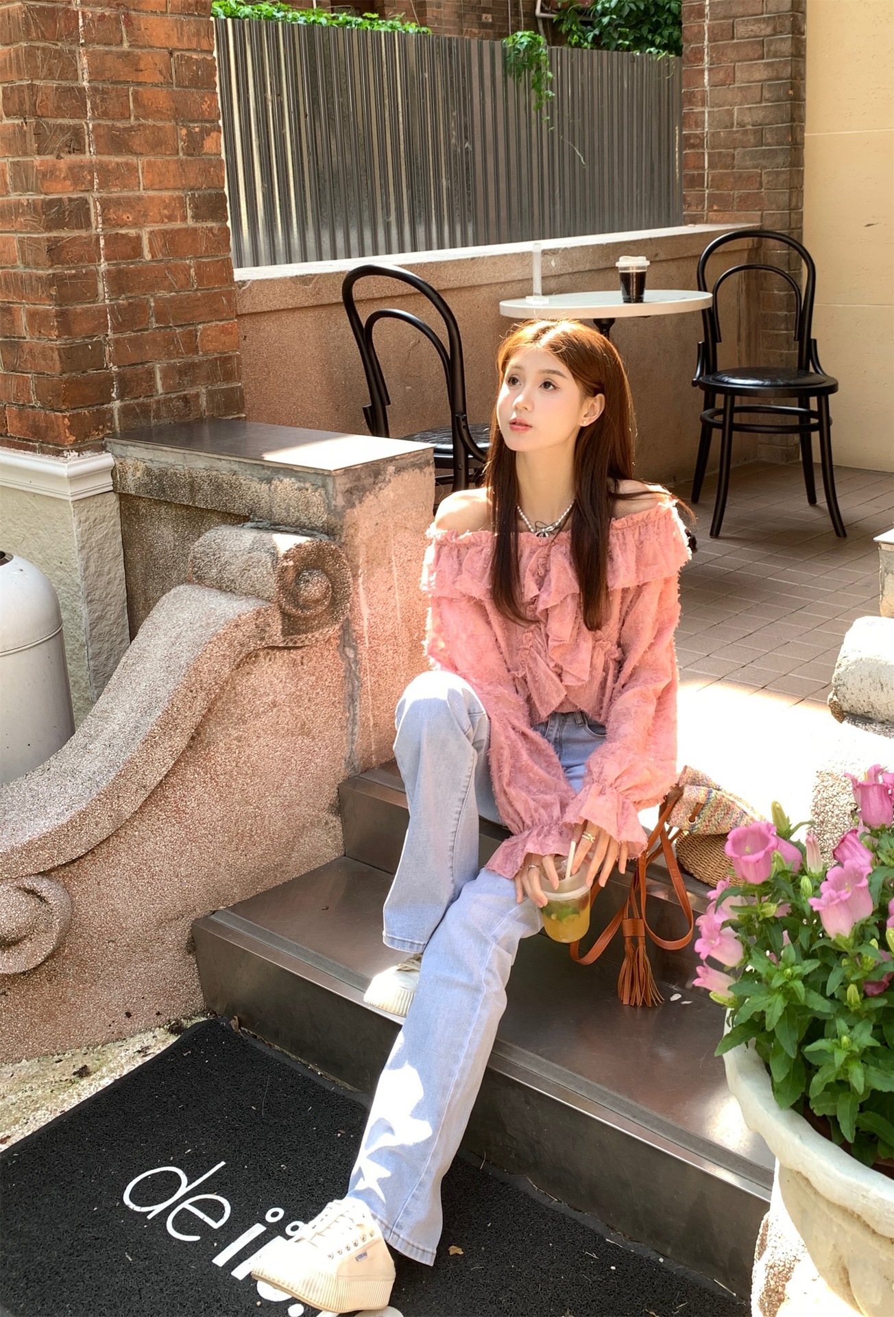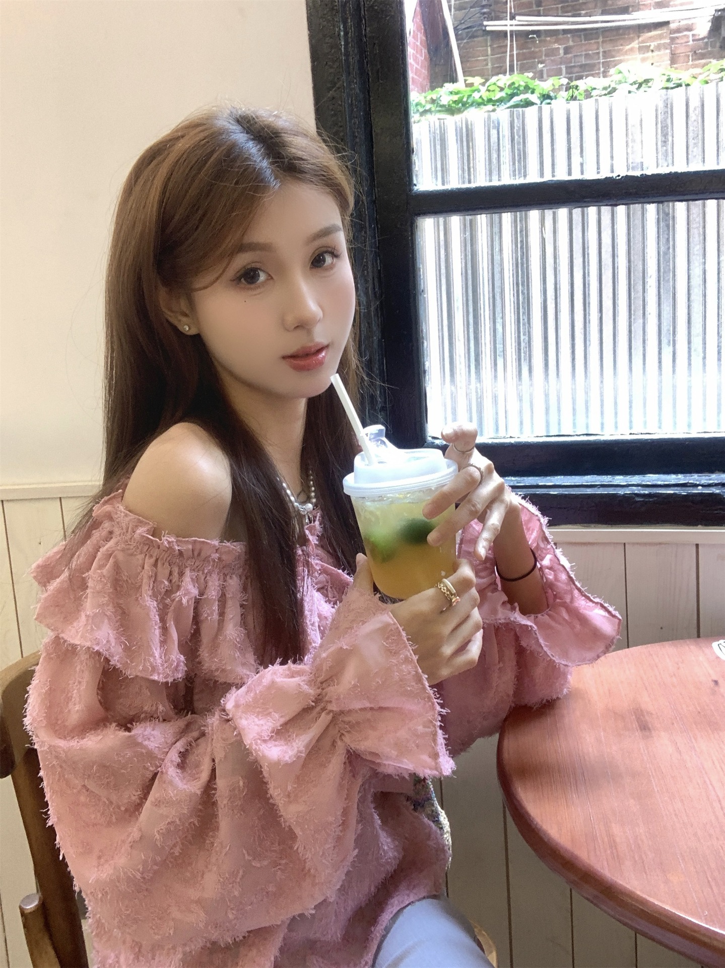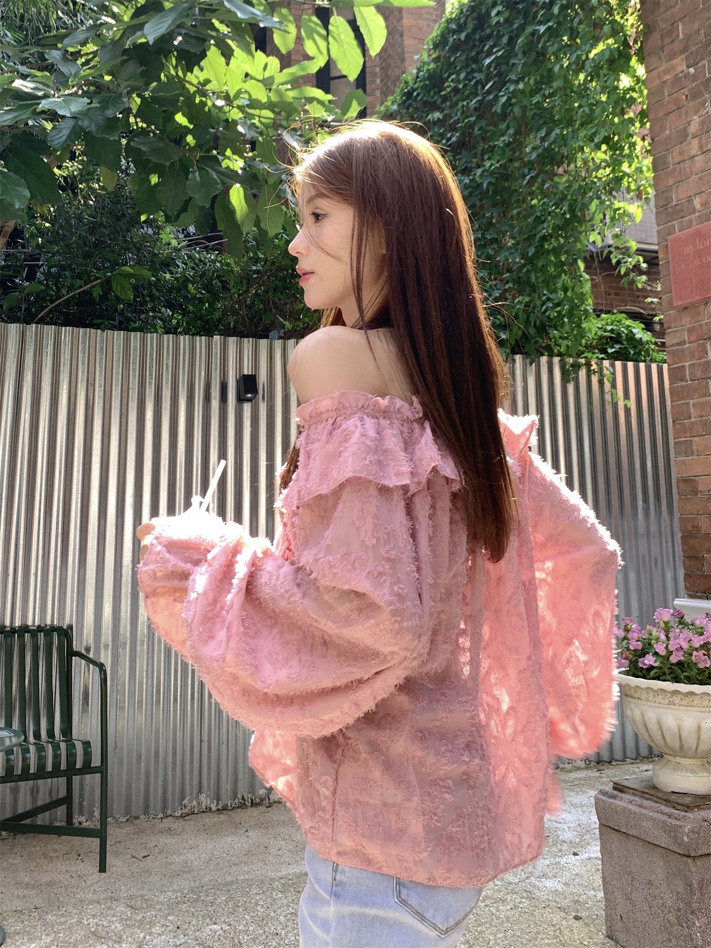봄과 가을 2025 새로운 부드러운 소녀의 주름진 틈새 쉬폰 셔츠 여성 어깨 디자인 센스 탑스토어 가기