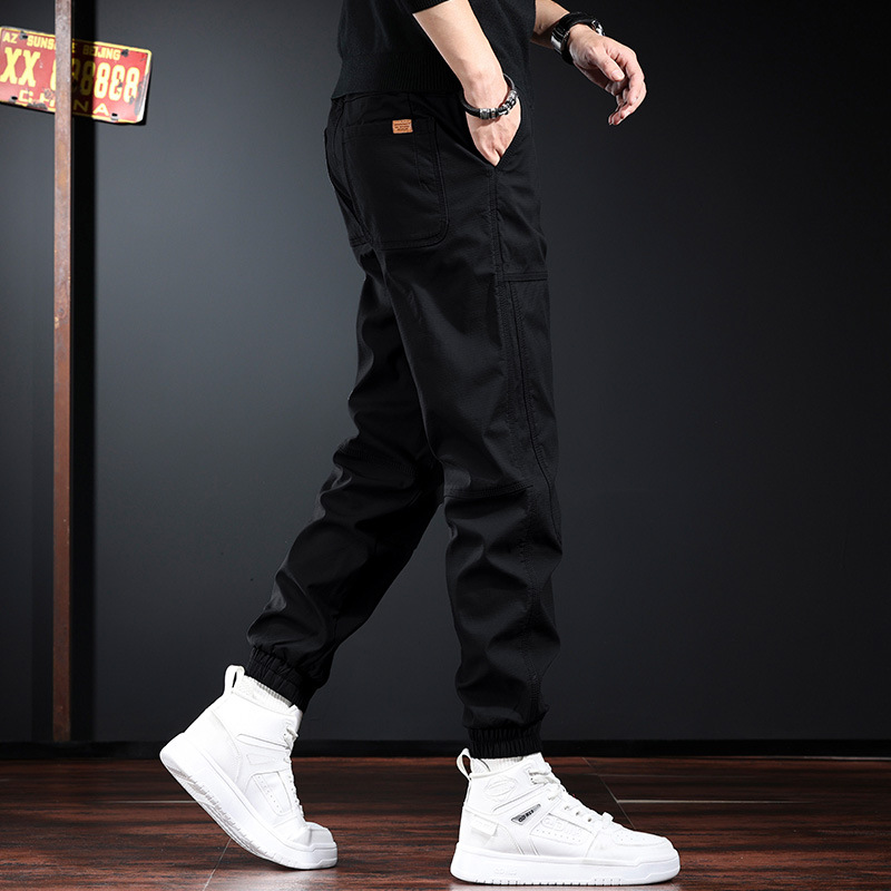 블랙 대형 캐주얼 팬츠 남성용 2025 가을 신상 스플라이싱 디자인 아웃도어 스포츠 레깅스 하렘 팬츠