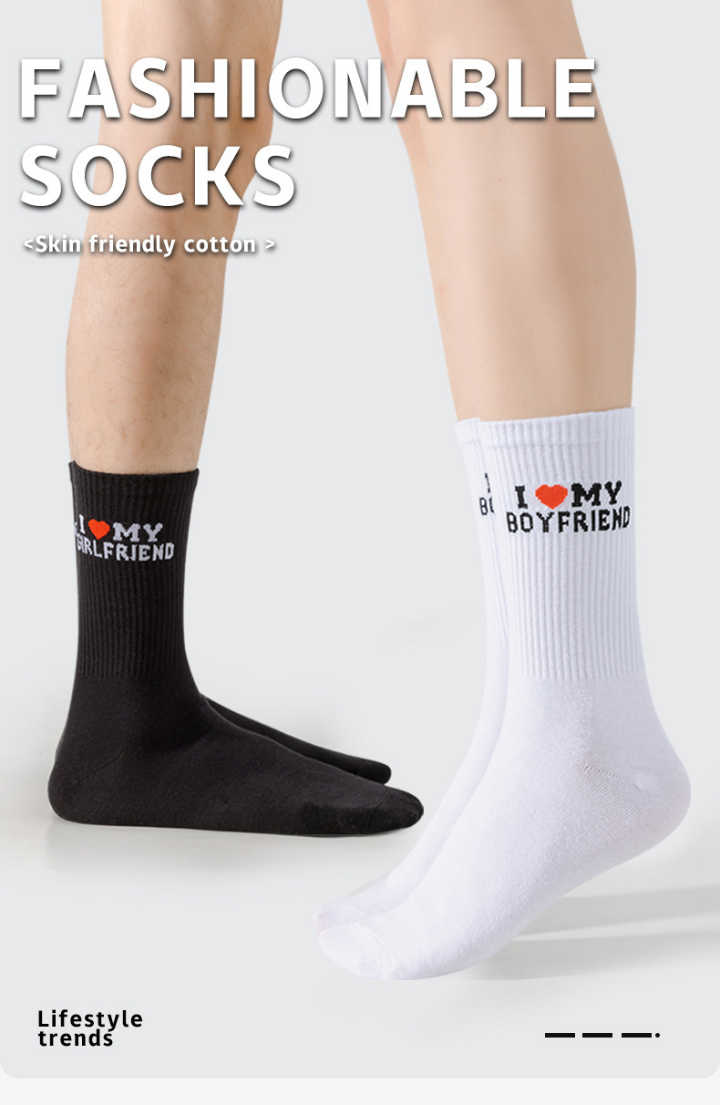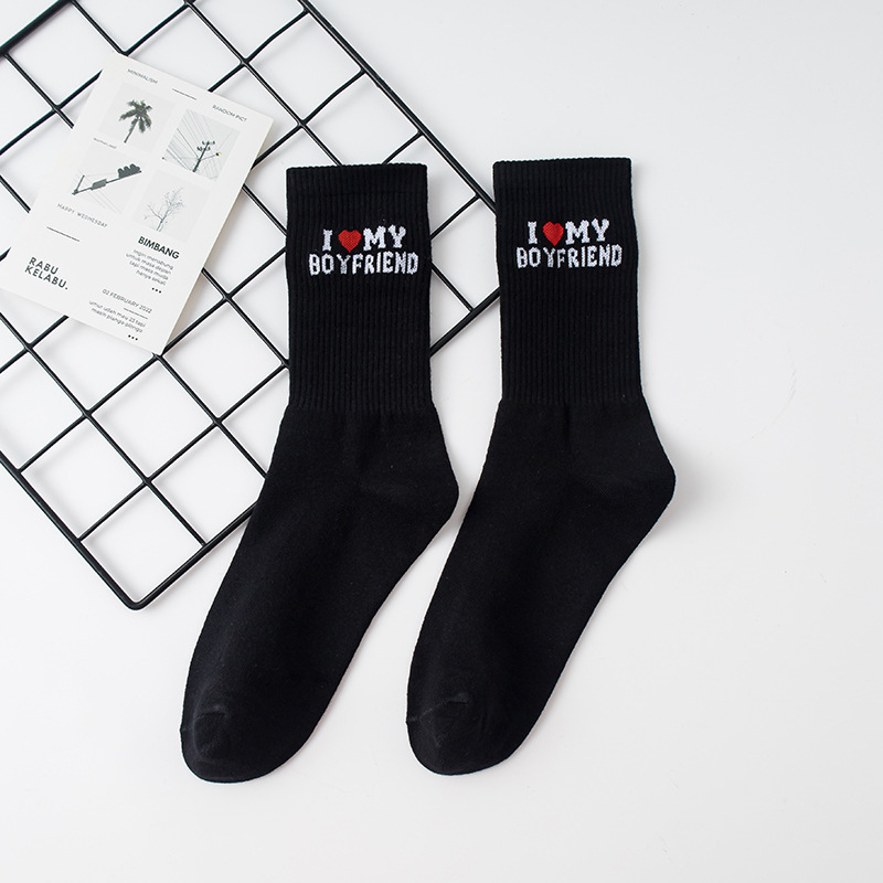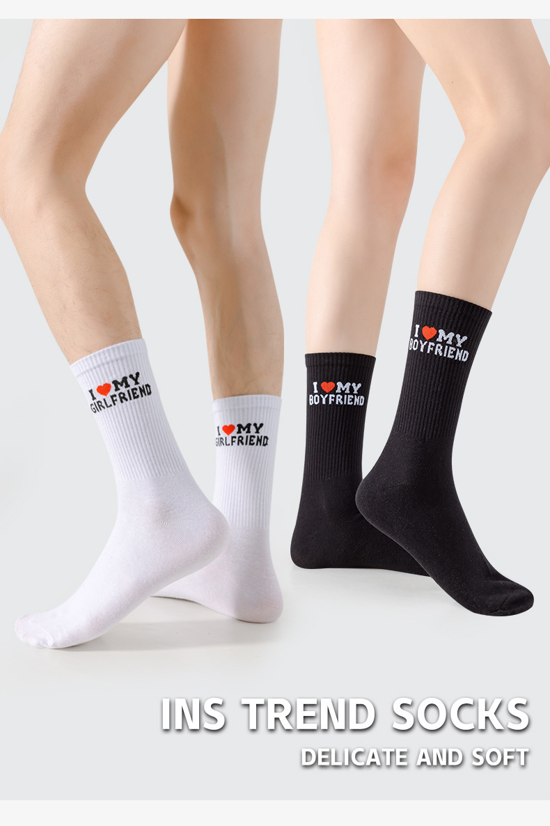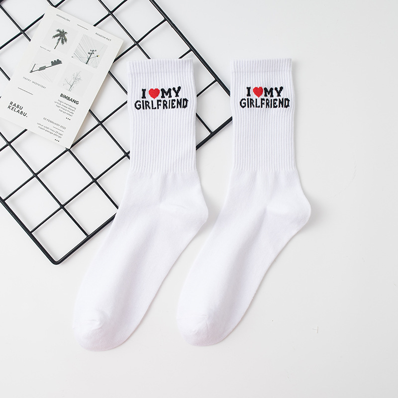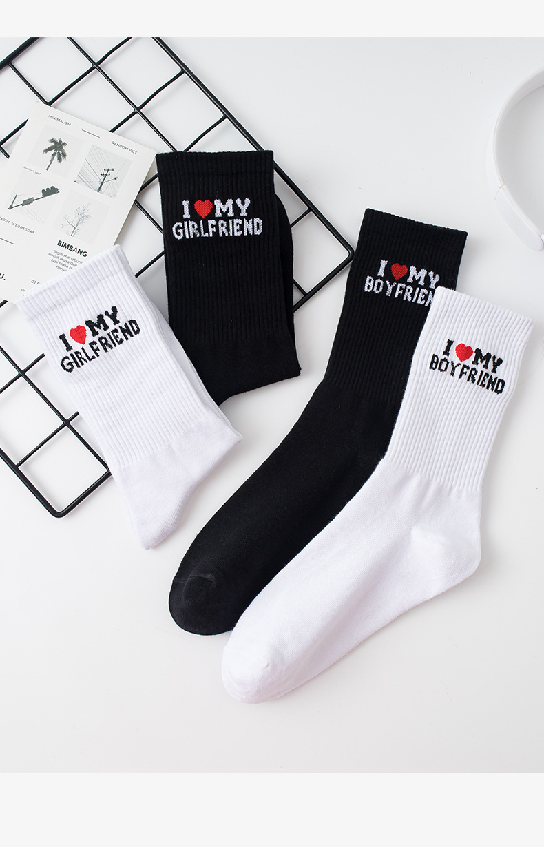 2025 봄 새로운 AliExpress 아마존 양말 새로운 연인 양말 나는 당신을 사랑합니다 영어 문자 면화 스타킹스토어 가기