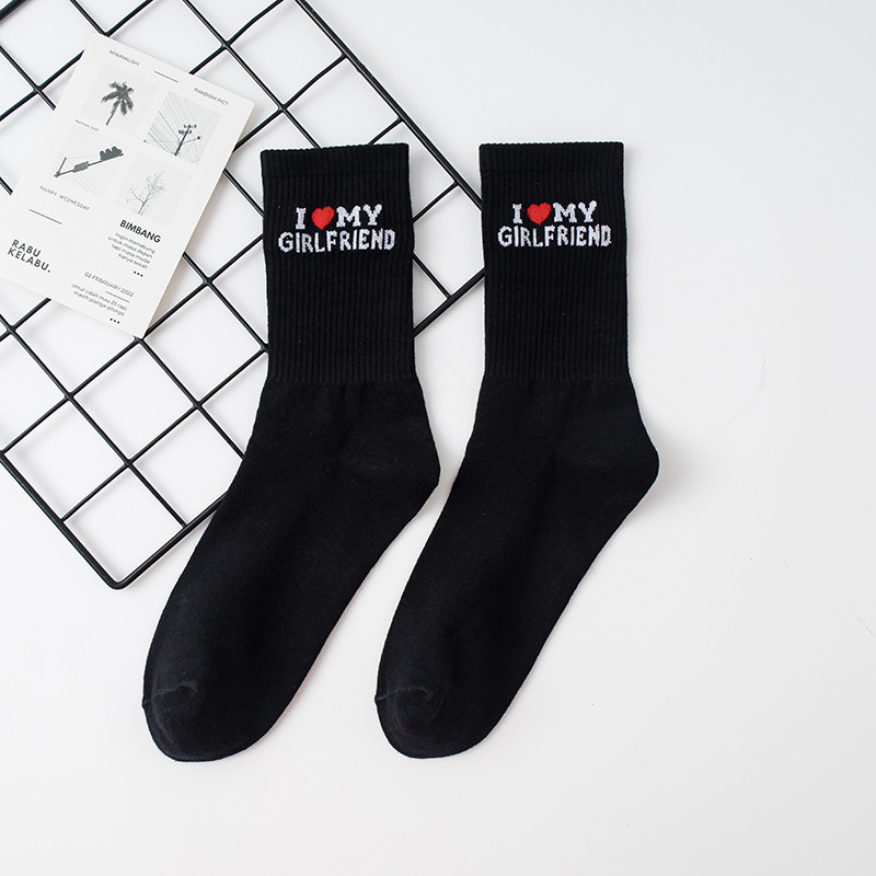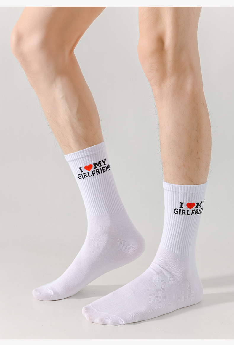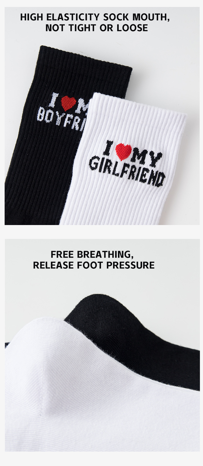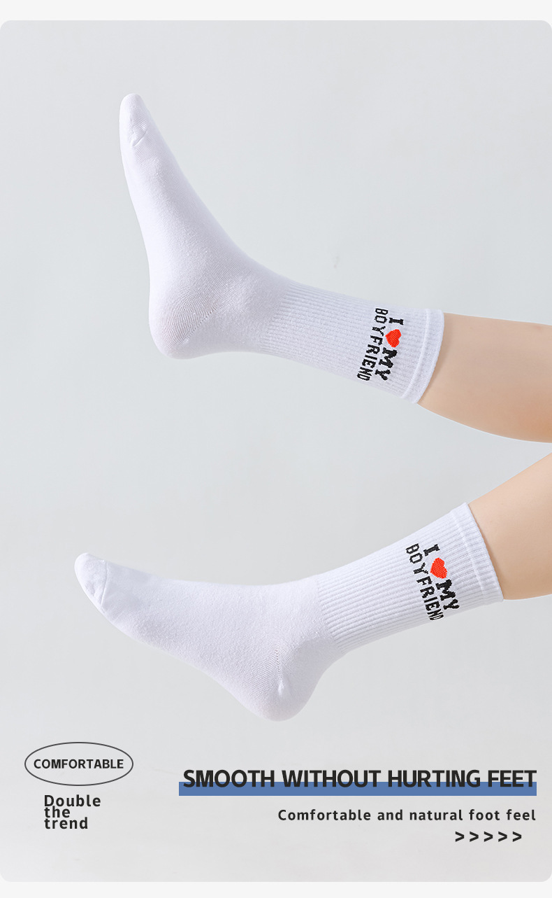 2025 봄 새로운 AliExpress 아마존 양말 새로운 연인 양말 나는 당신을 사랑합니다 영어 문자 면화 스타킹스토어 가기