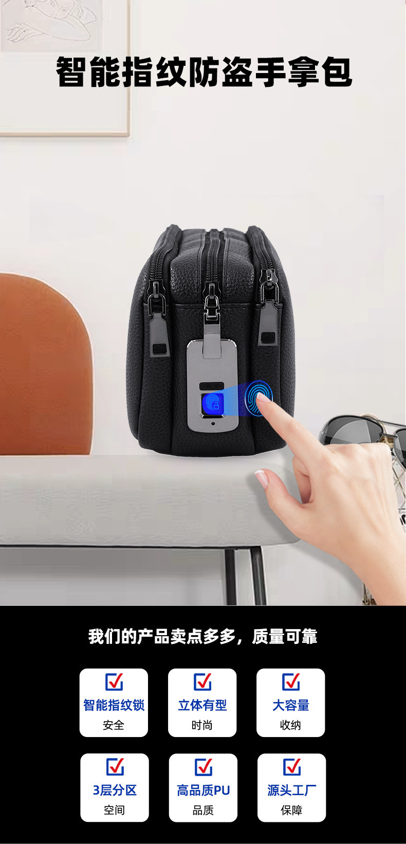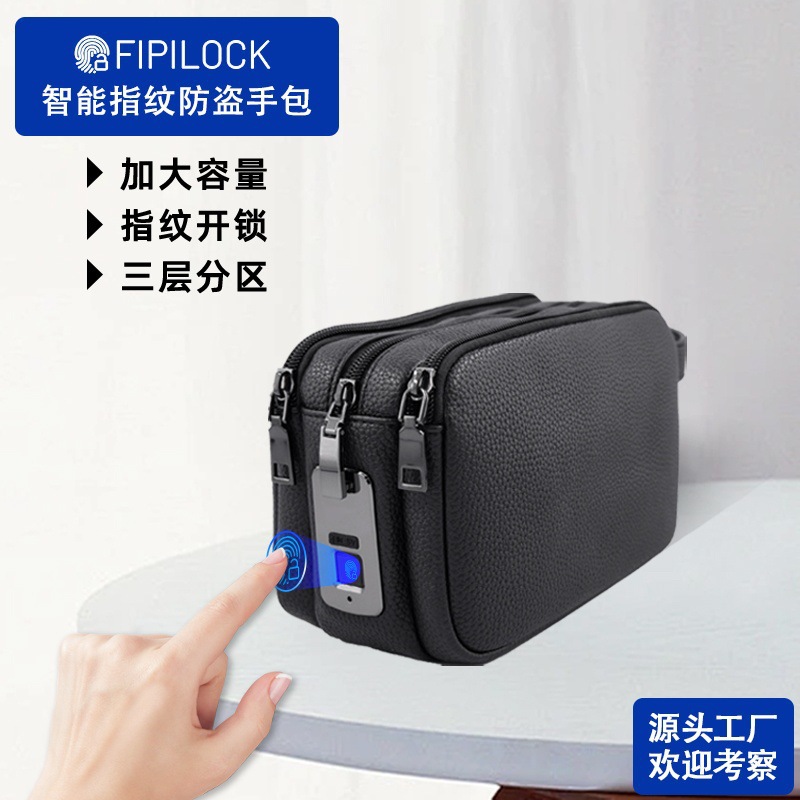 스마트 지문 클러치 국경 간 폭발 남성 가죽 하이 엔드 핸드 백 용량 클러치 제조 업체 도매스토어 가기