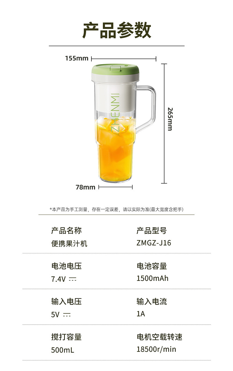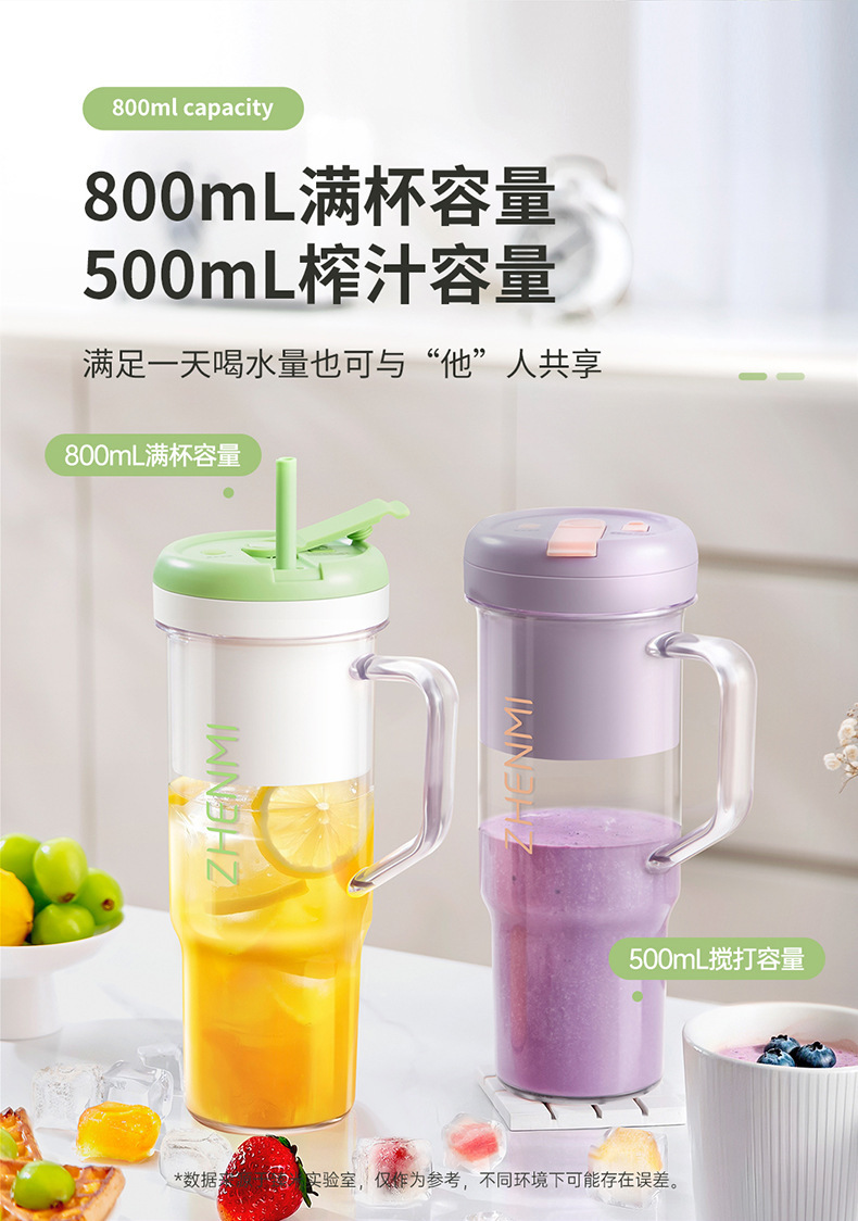 •500ml大容量搅拌,一次榨汁两人品尝;