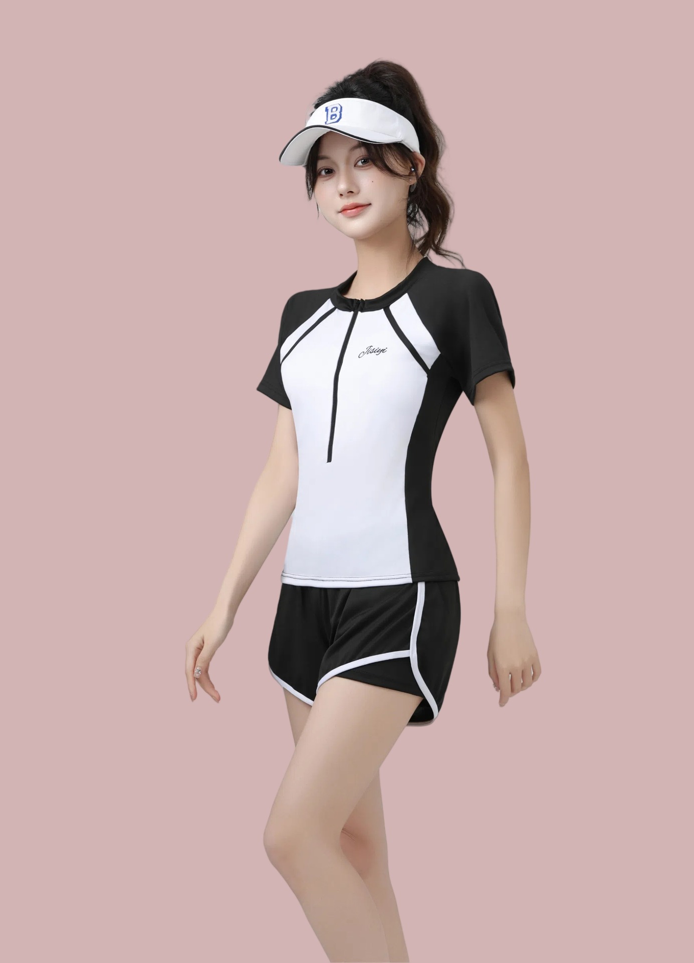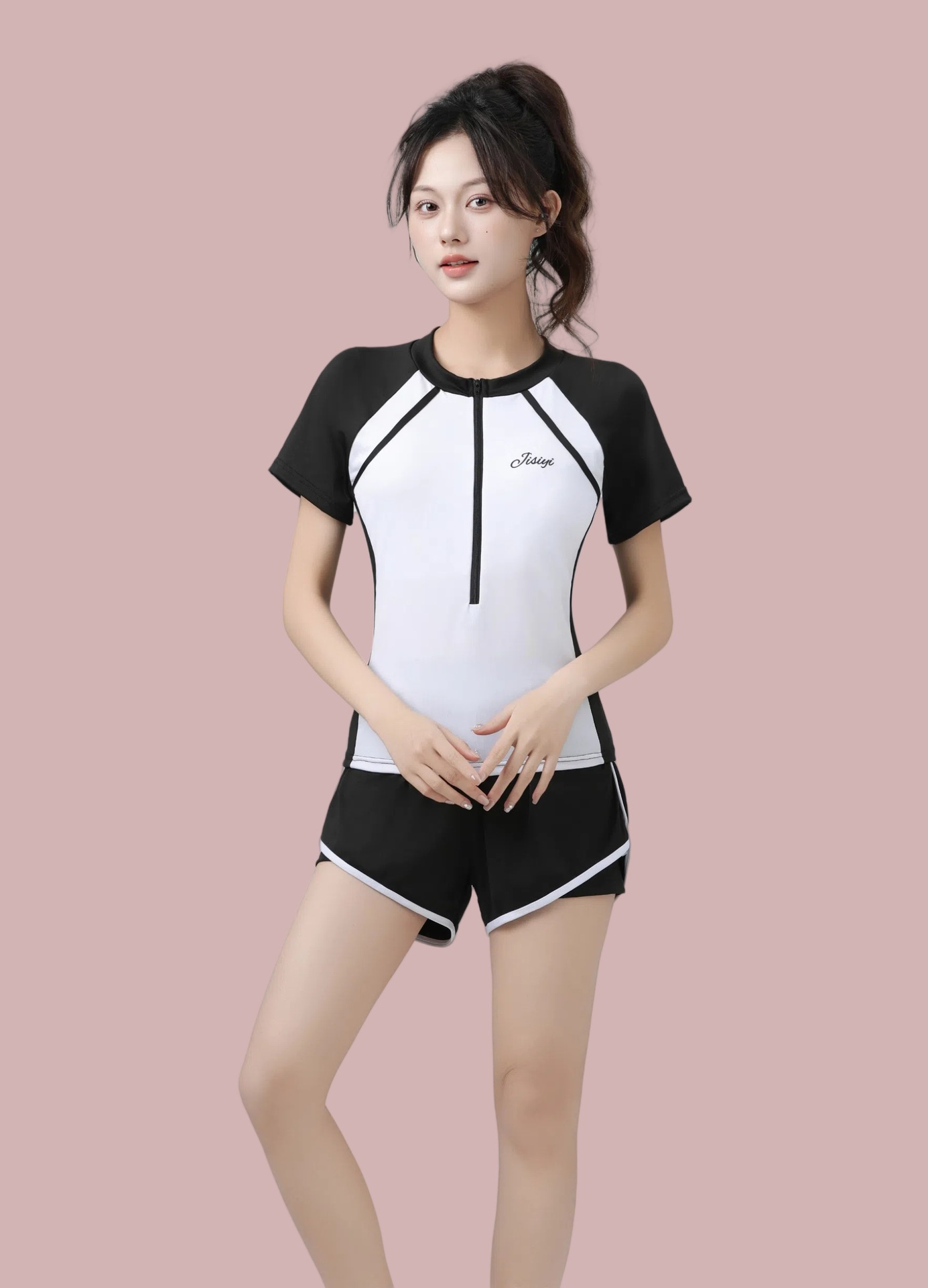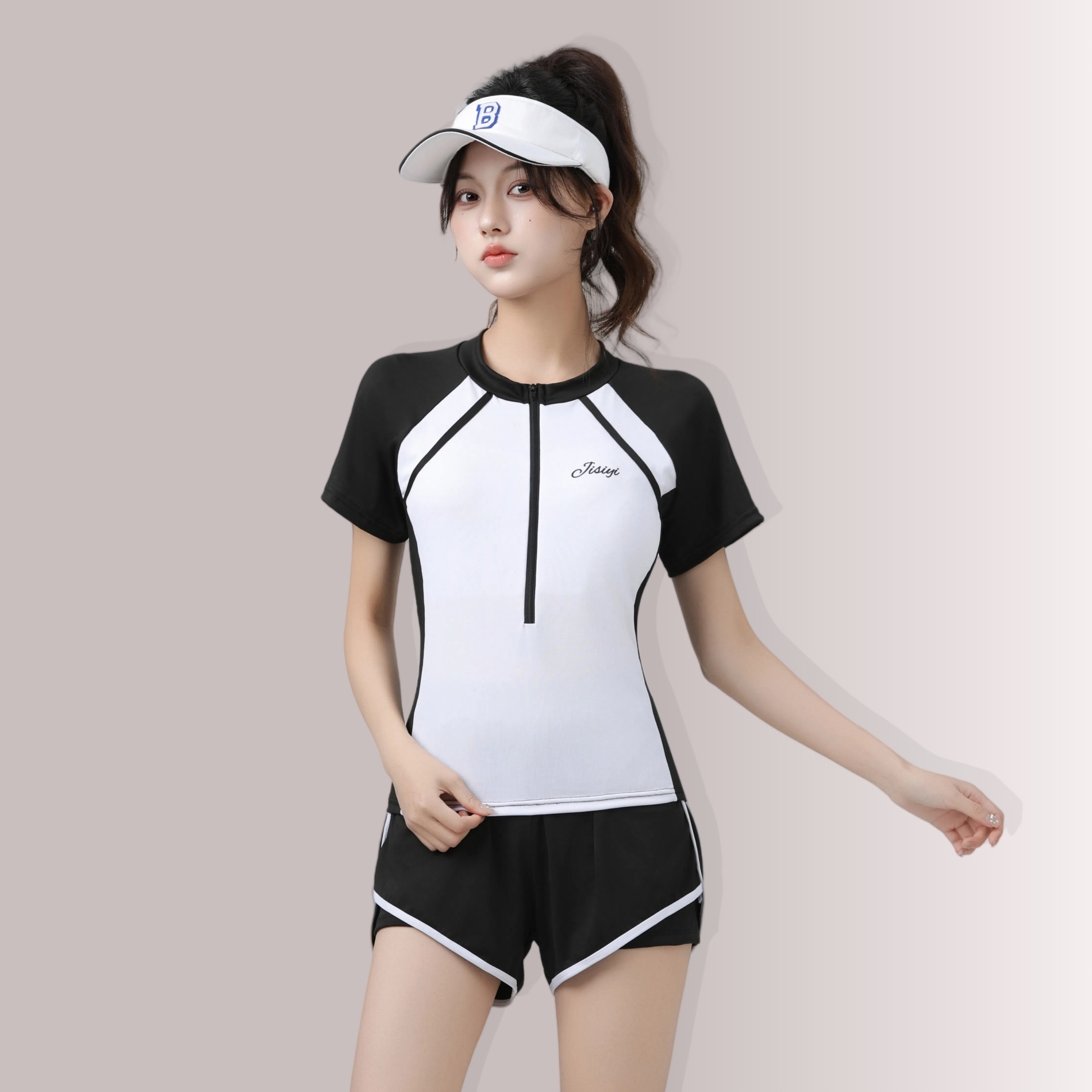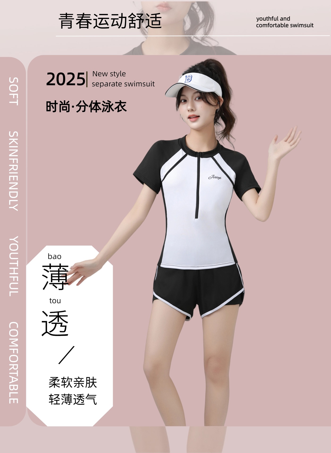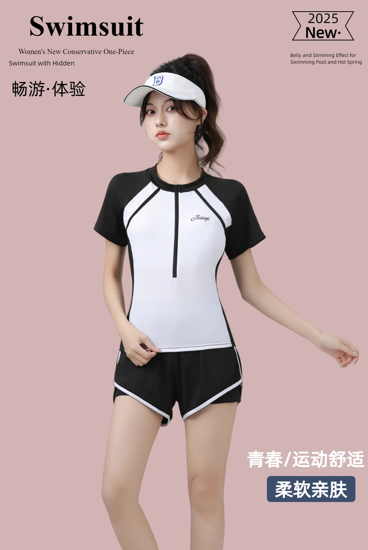 2025 새로운 수영복 여성 분할 투피스 세트 학생들을위한 보수적 인 수영 세트 수영 클래스 벨리 커버 슬리밍 해변 수영복