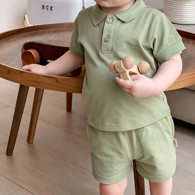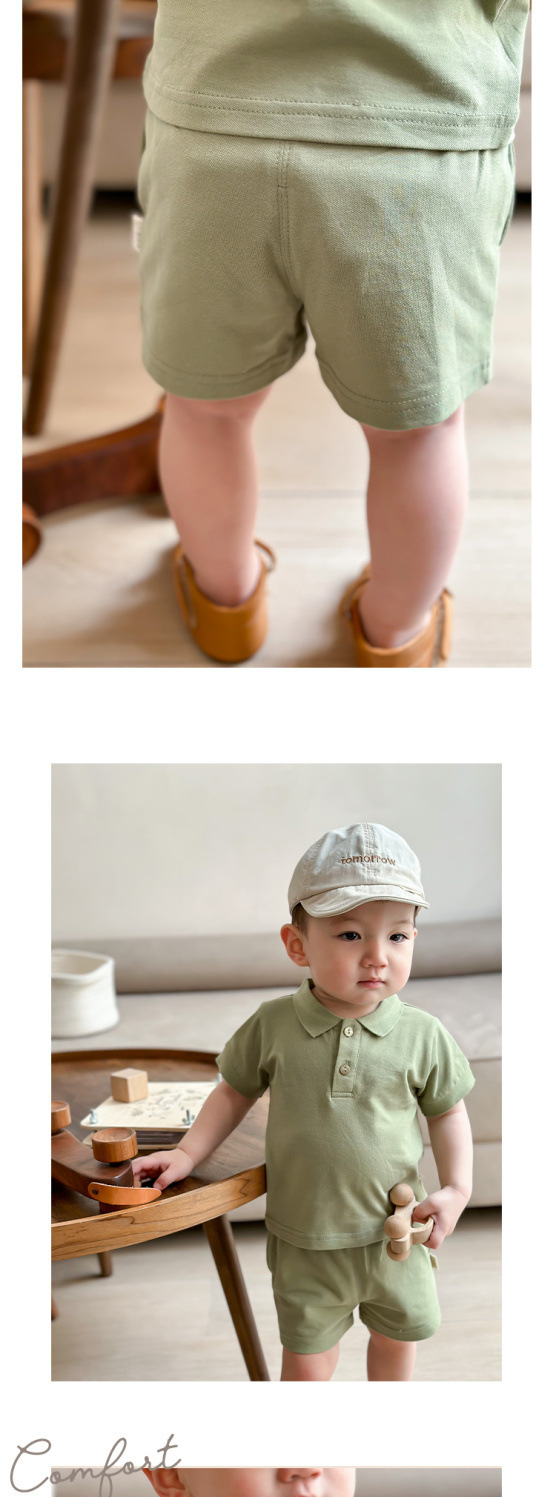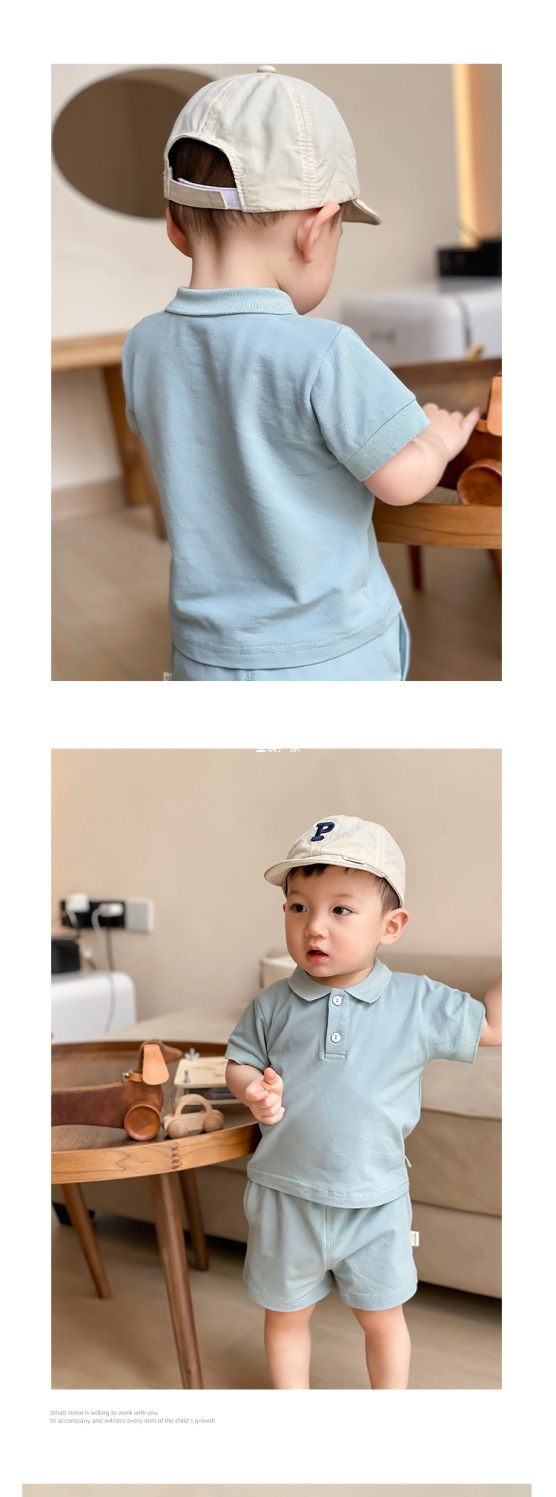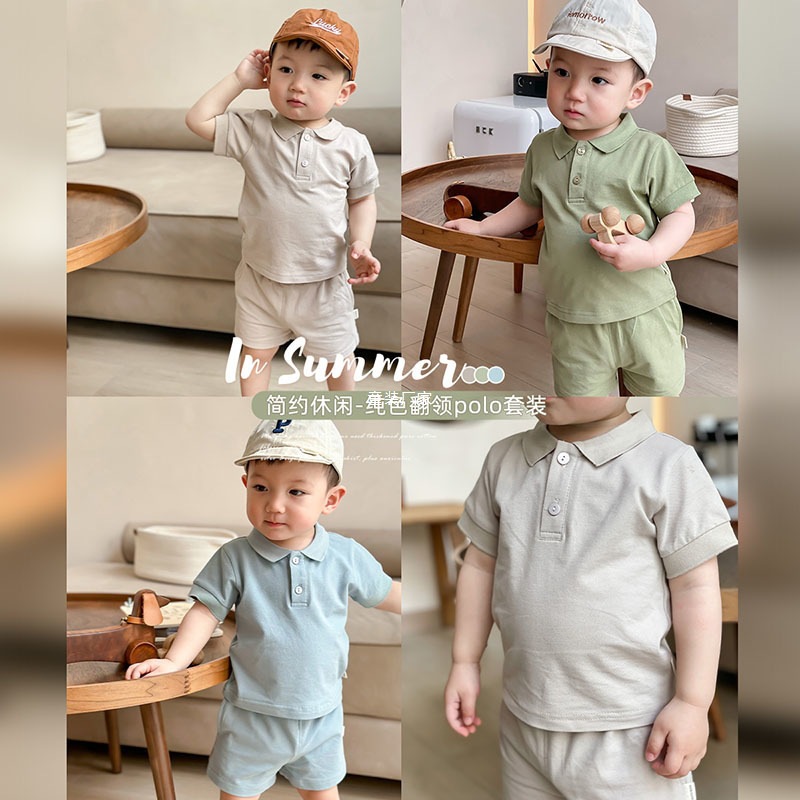 새로운 어린이 여름 단순! 통기성 진주 면 폴로 세트 여름 아기 컬러 옷깃 짧은 소매 반바지 웨스턴스토어 가기