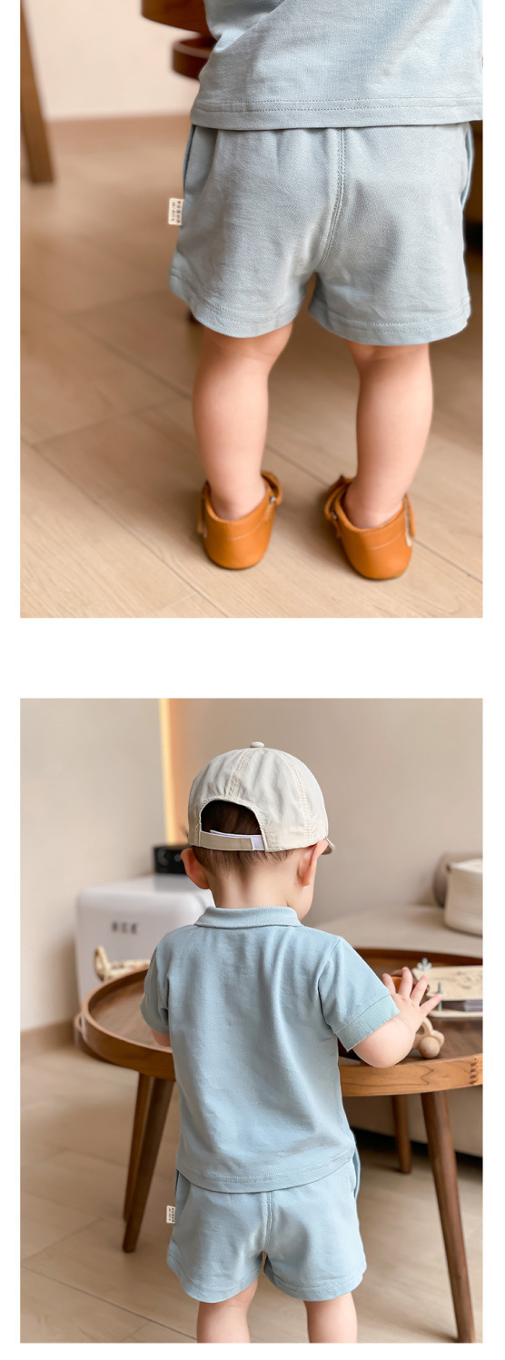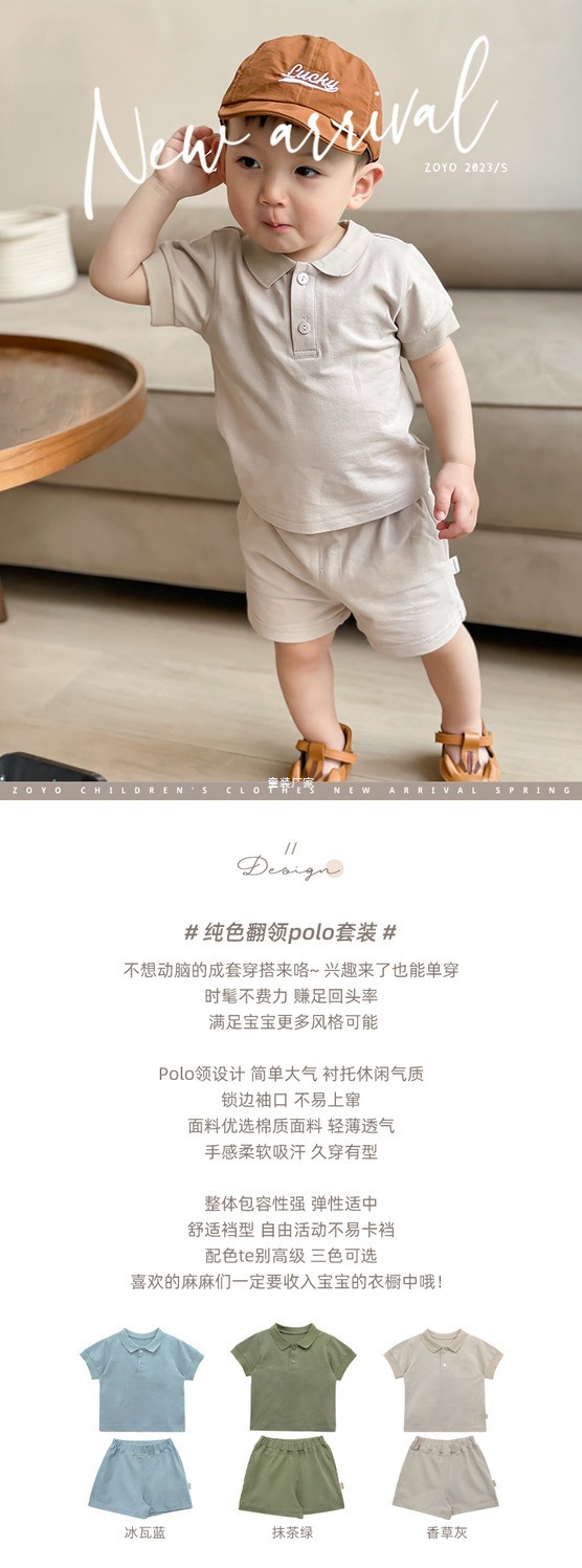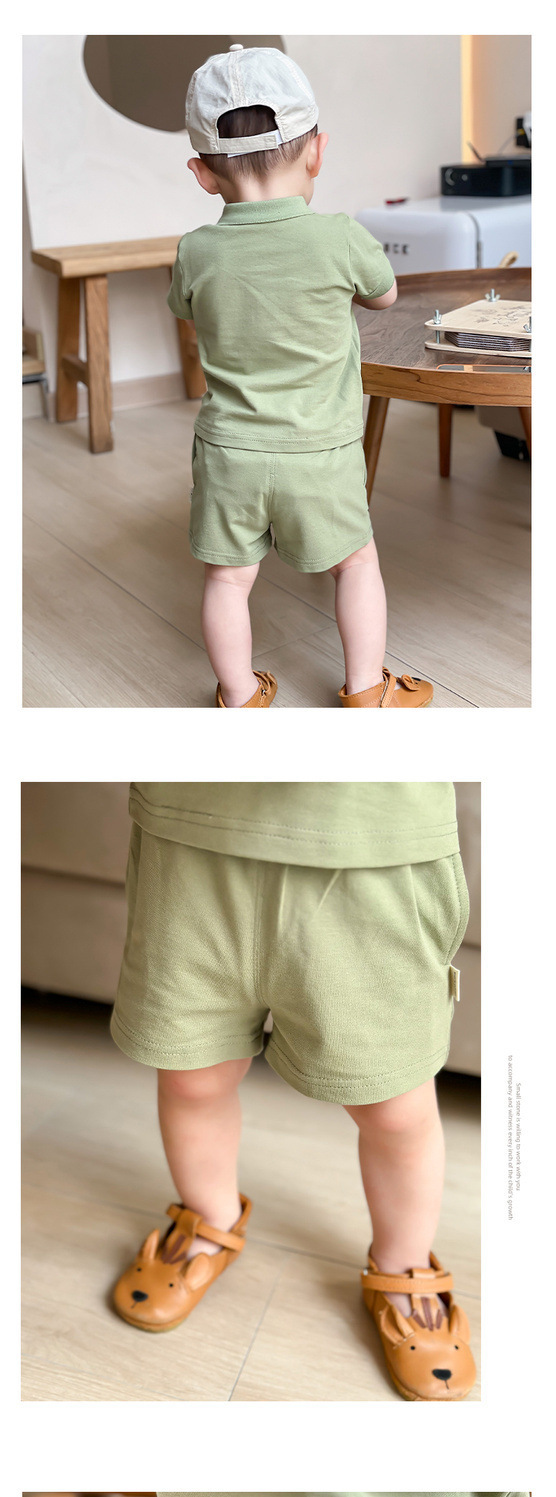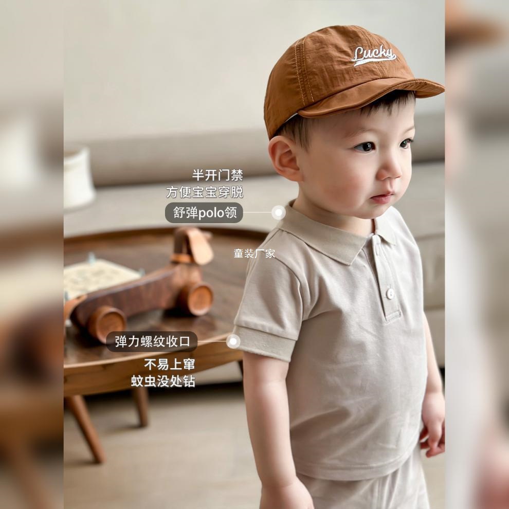 새로운 어린이 여름 단순! 통기성 진주 면 폴로 세트 여름 아기 컬러 옷깃 짧은 소매 반바지 웨스턴스토어 가기