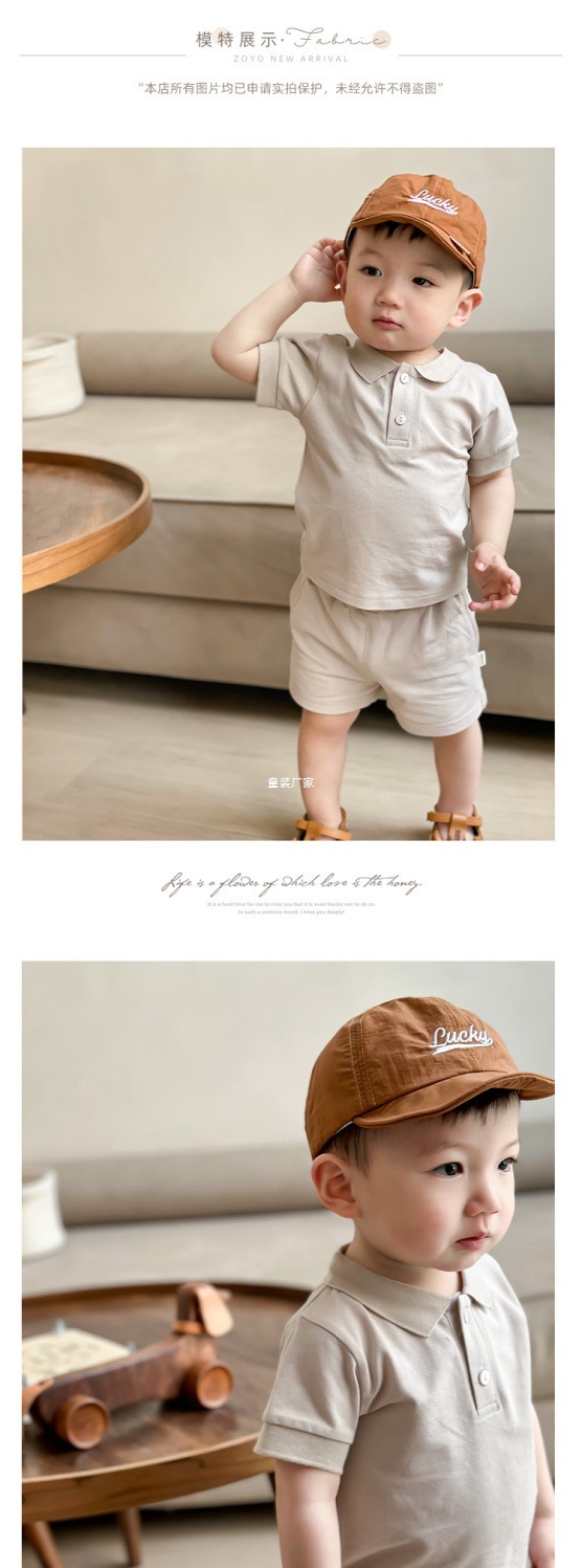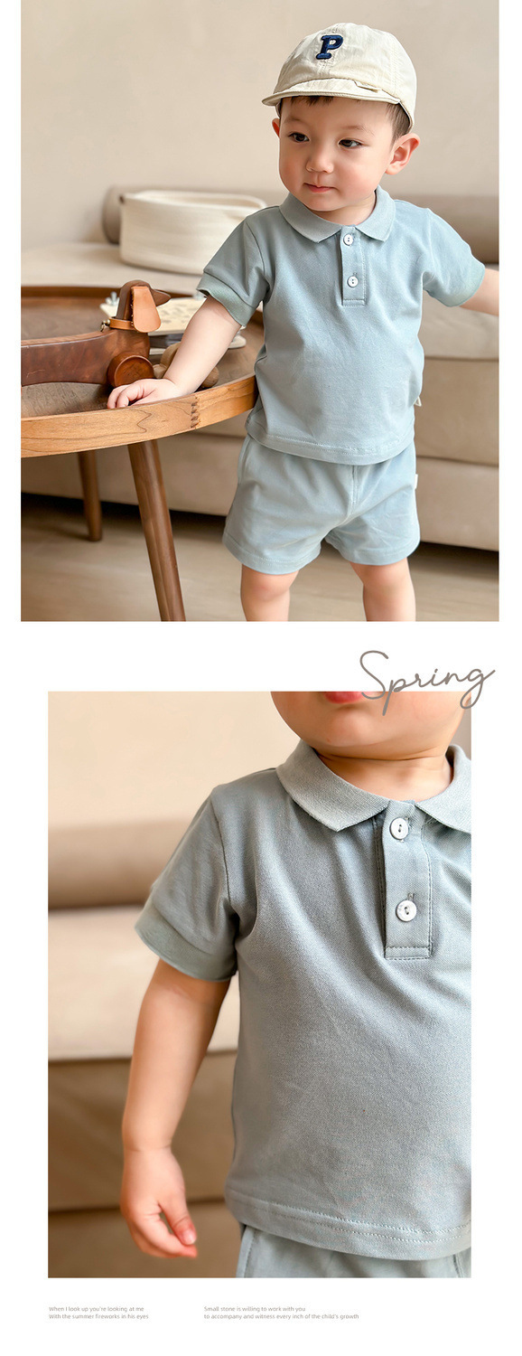 새로운 어린이 여름 단순! 통기성 진주 면 폴로 세트 여름 아기 컬러 옷깃 짧은 소매 반바지 웨스턴