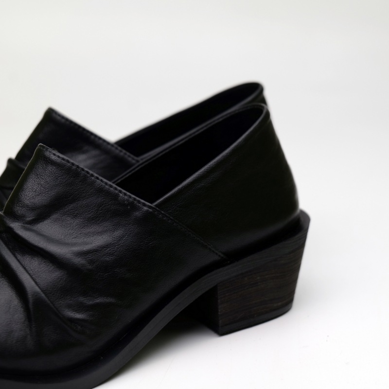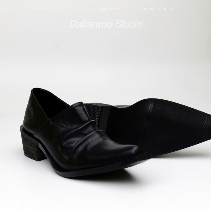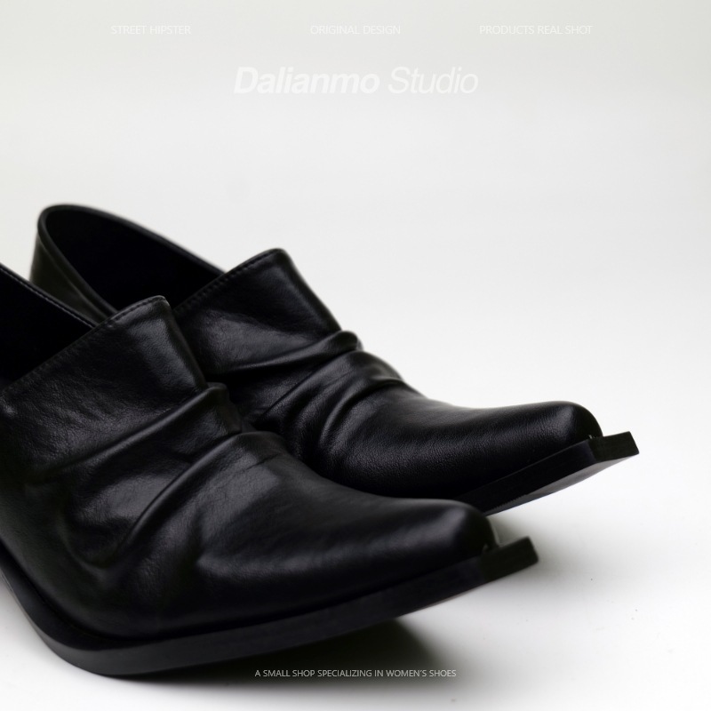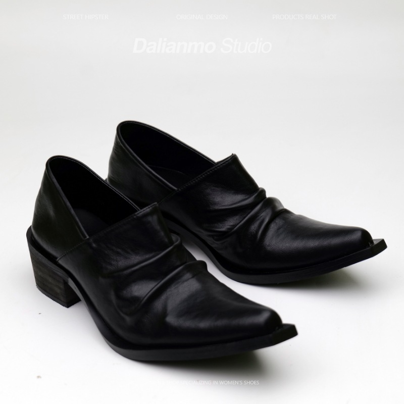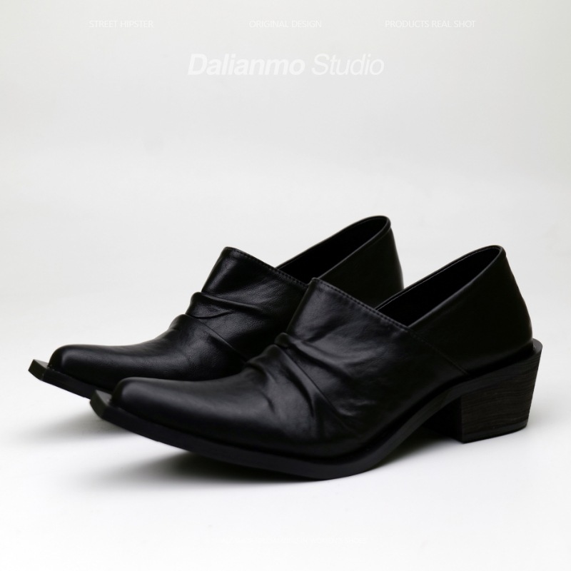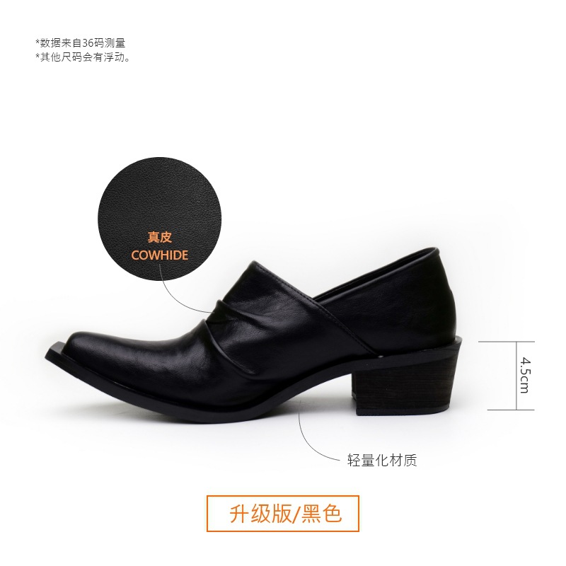 한국 동대문 주름 가죽 신발 여성용 두꺼운 힐링 신발 남성용 두꺼운 밑창 뾰족한 발가락 가죽 신발 빈티지 더비 신발스토어 가기