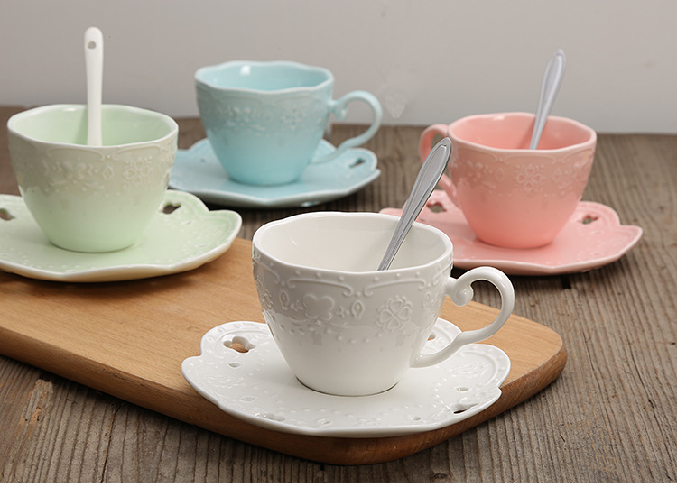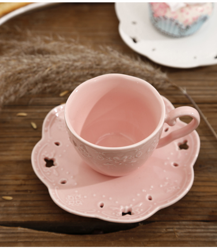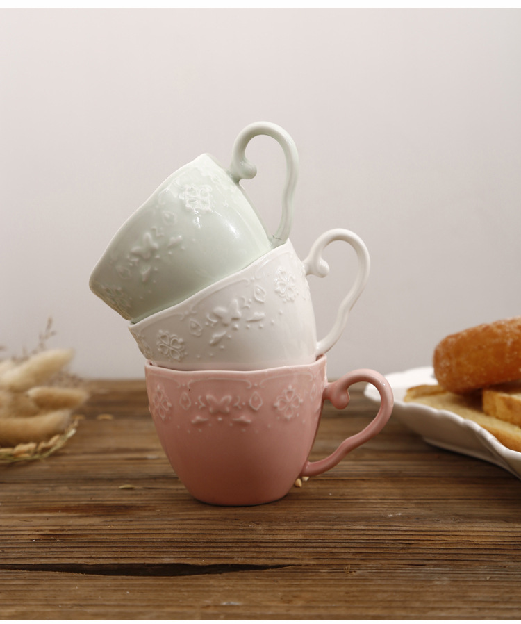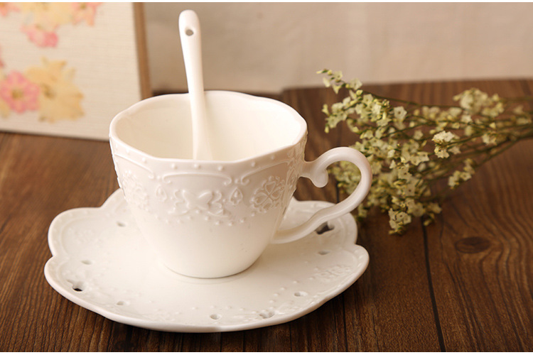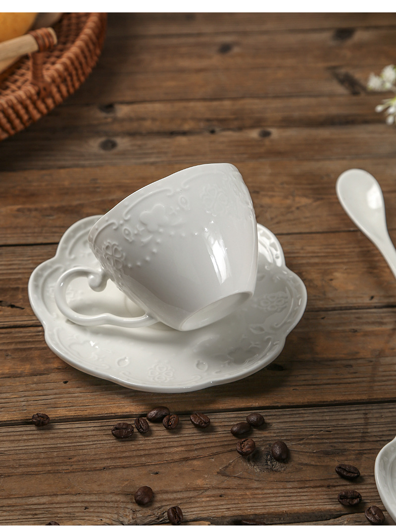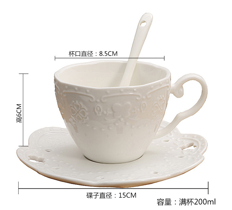 새로운 뼈 중국 흰색 도자기 꽃잎 가장자리 양각 유럽식 세라믹 커피 컵 소스 아름다운 나비 꽃 작은 물 컵스토어 가기
