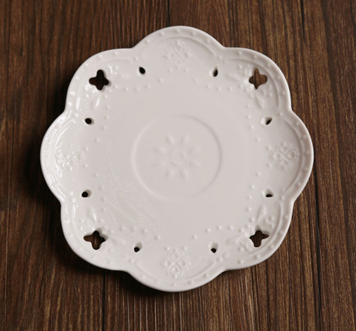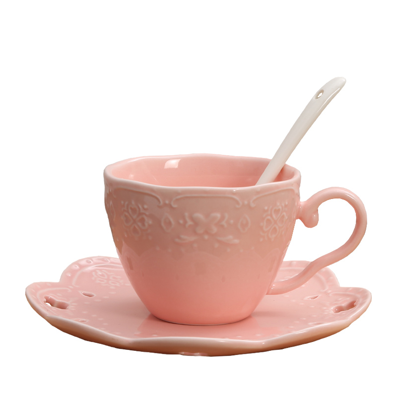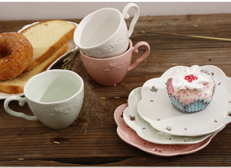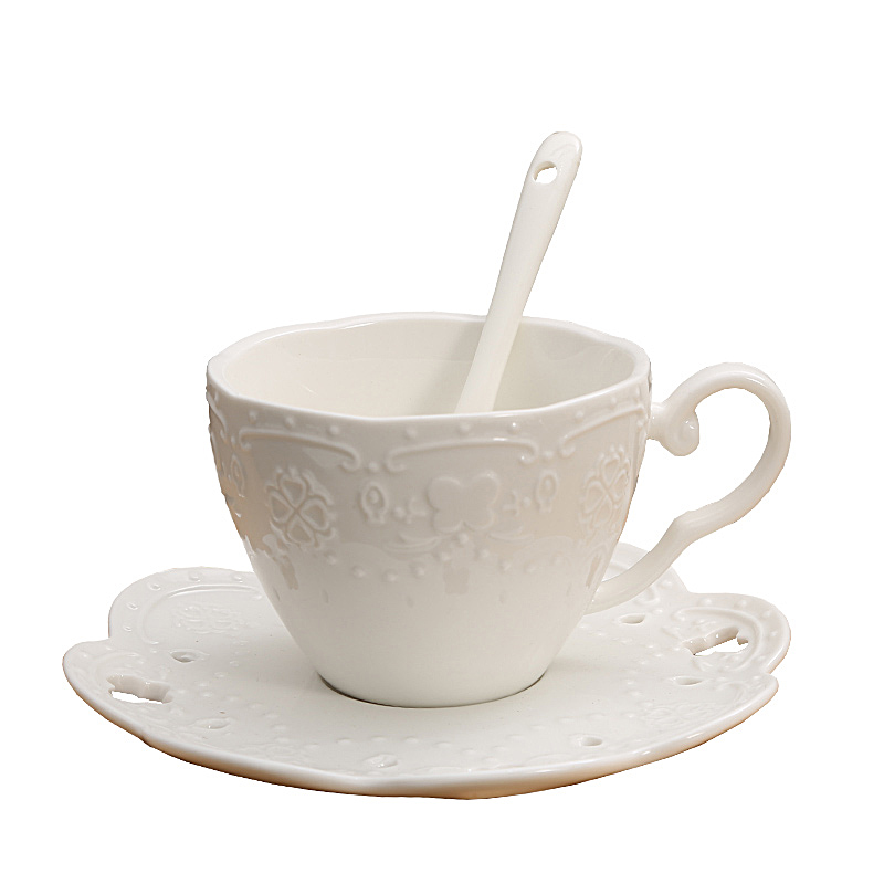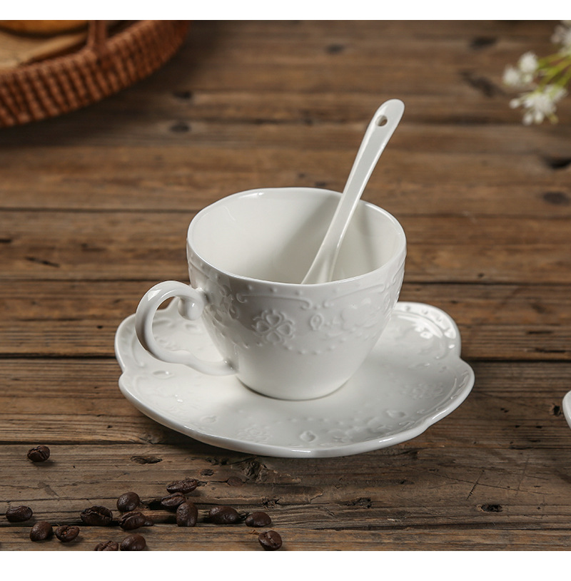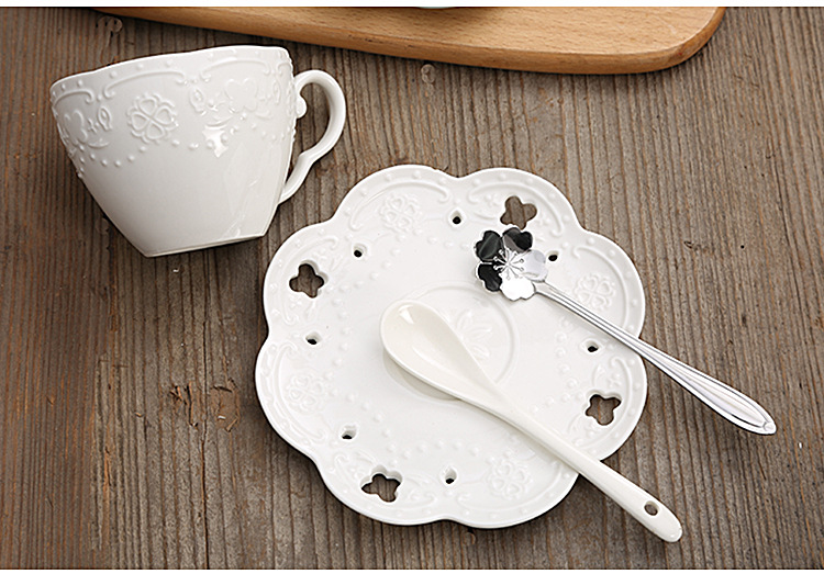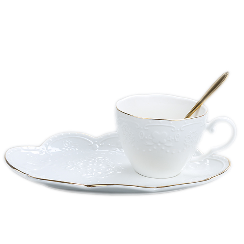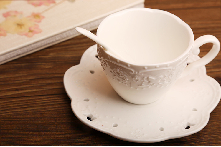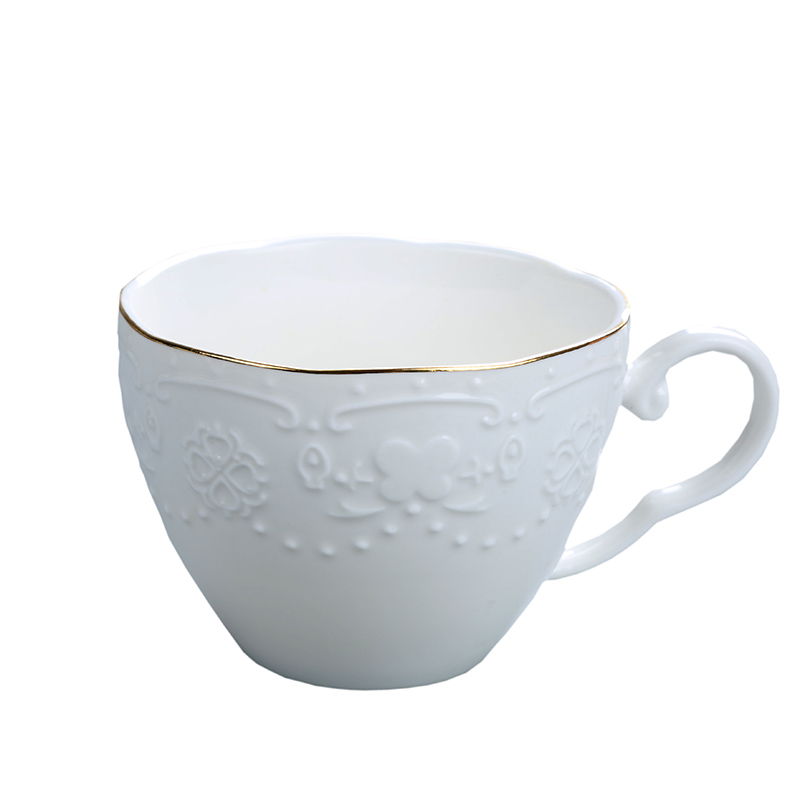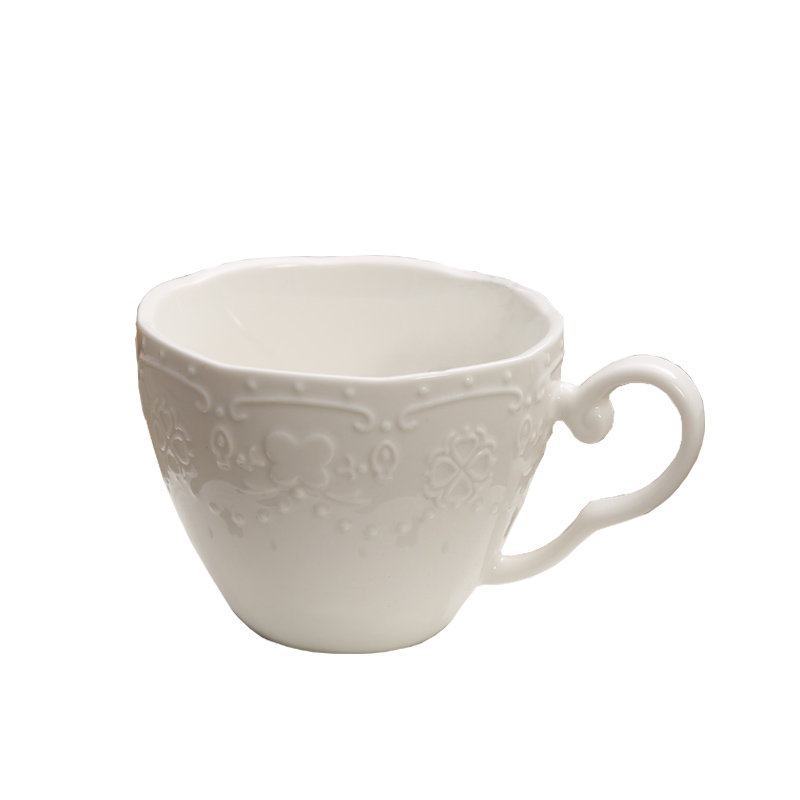 새로운 뼈 중국 흰색 도자기 꽃잎 가장자리 양각 유럽식 세라믹 커피 컵 소스 아름다운 나비 꽃 작은 물 컵