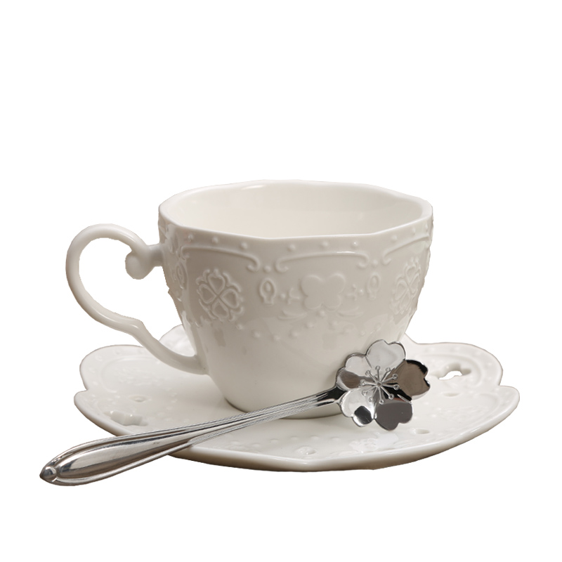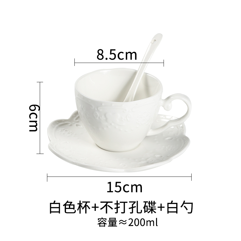 • 흰색 컵 + 구멍 없는 접시 + 흰색 스푼