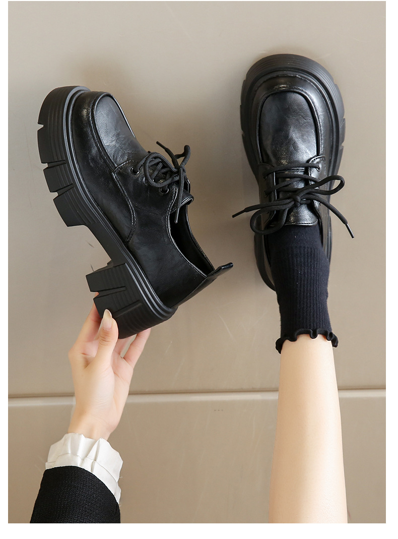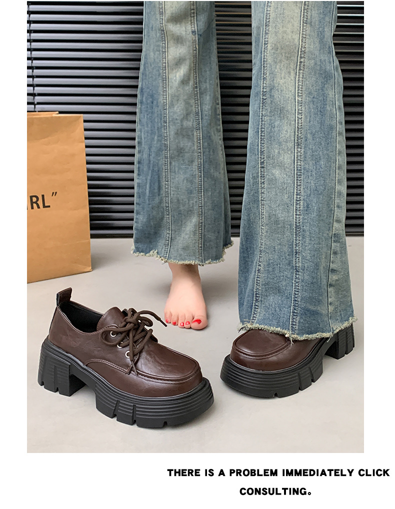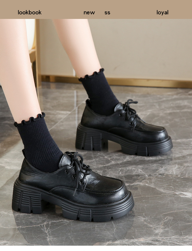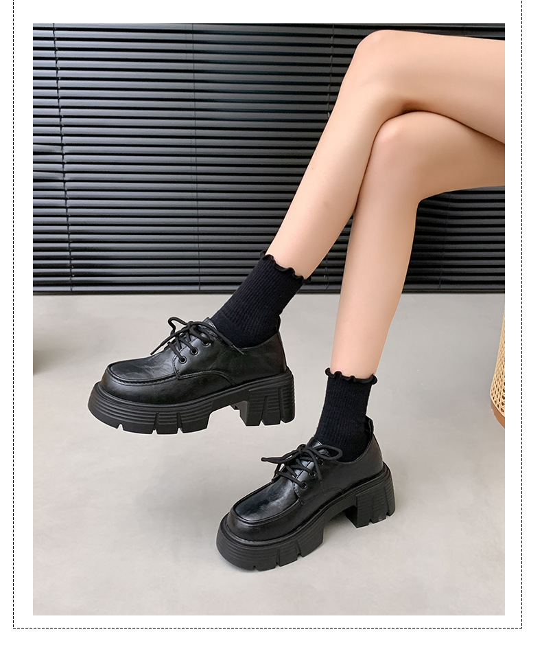 한국 스타일 올매치 두꺼운 단독 높이 증가 영국 스타일 가죽 신발 여성의 새로운 올 매치 두꺼운 힐 레트로 프랑스 스타일 로퍼 하이힐스토어 가기