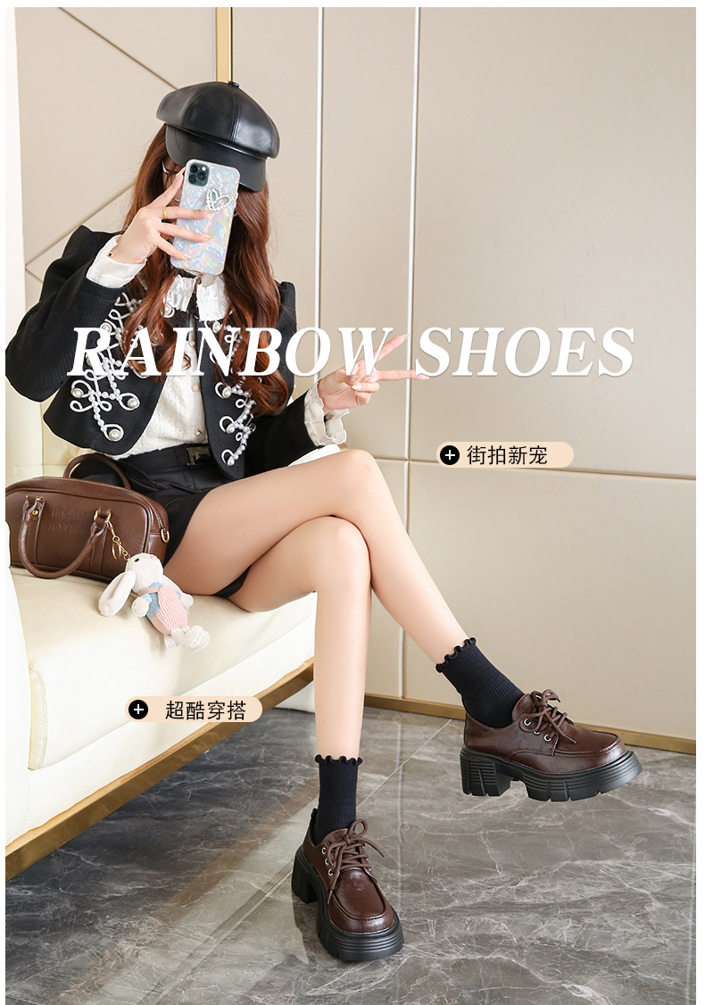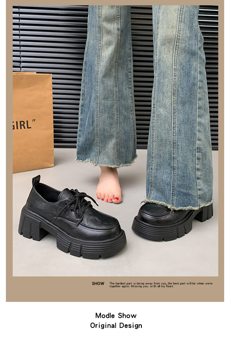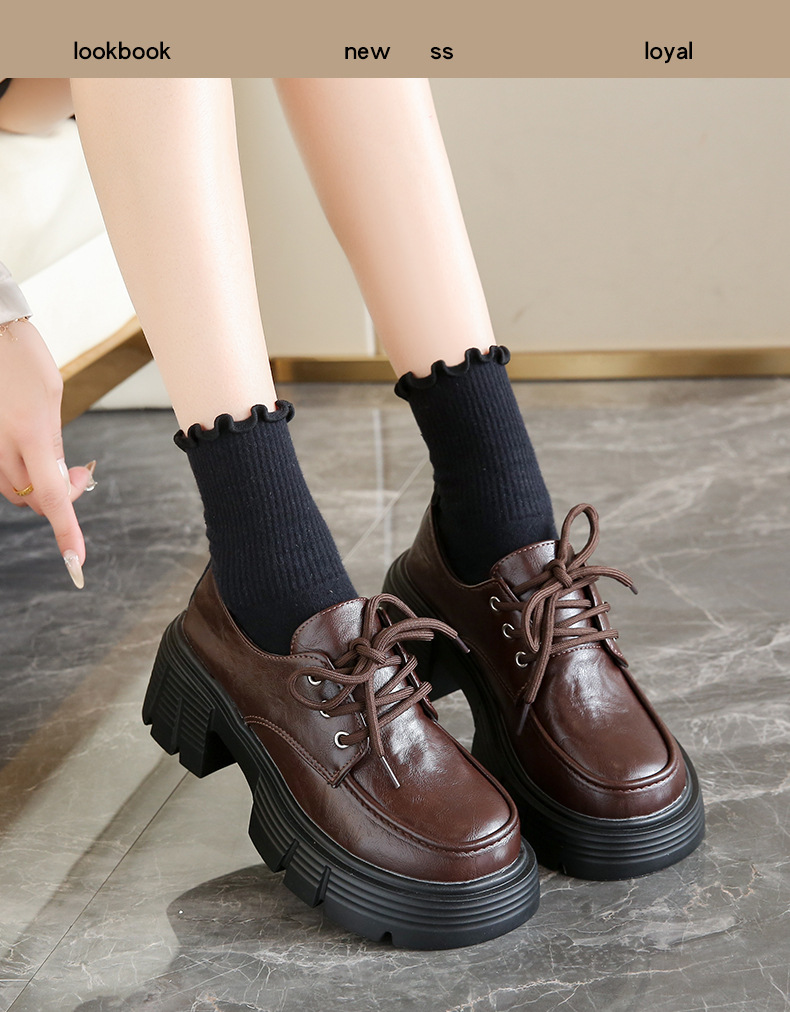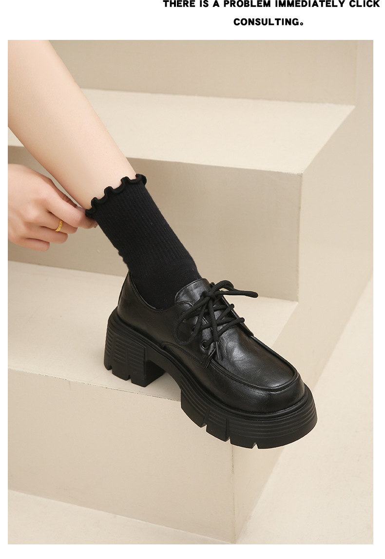 한국 스타일 올매치 두꺼운 단독 높이 증가 영국 스타일 가죽 신발 여성의 새로운 올 매치 두꺼운 힐 레트로 프랑스 스타일 로퍼 하이힐스토어 가기