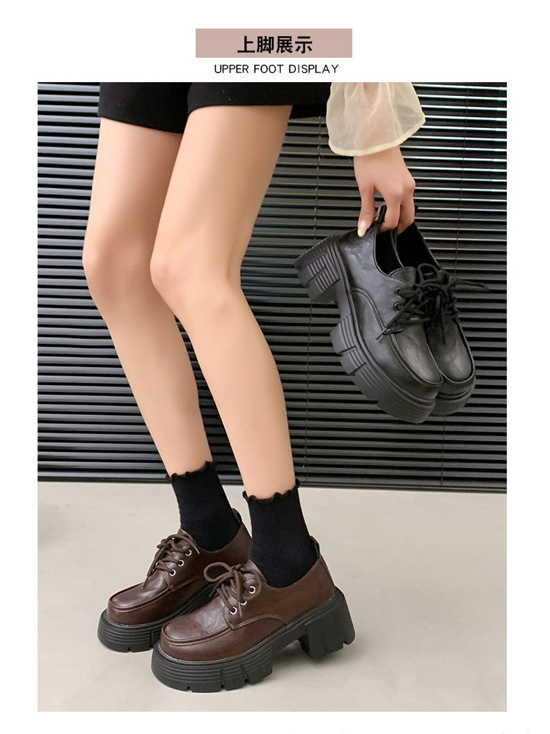 한국 스타일 올매치 두꺼운 단독 높이 증가 영국 스타일 가죽 신발 여성의 새로운 올 매치 두꺼운 힐 레트로 프랑스 스타일 로퍼 하이힐