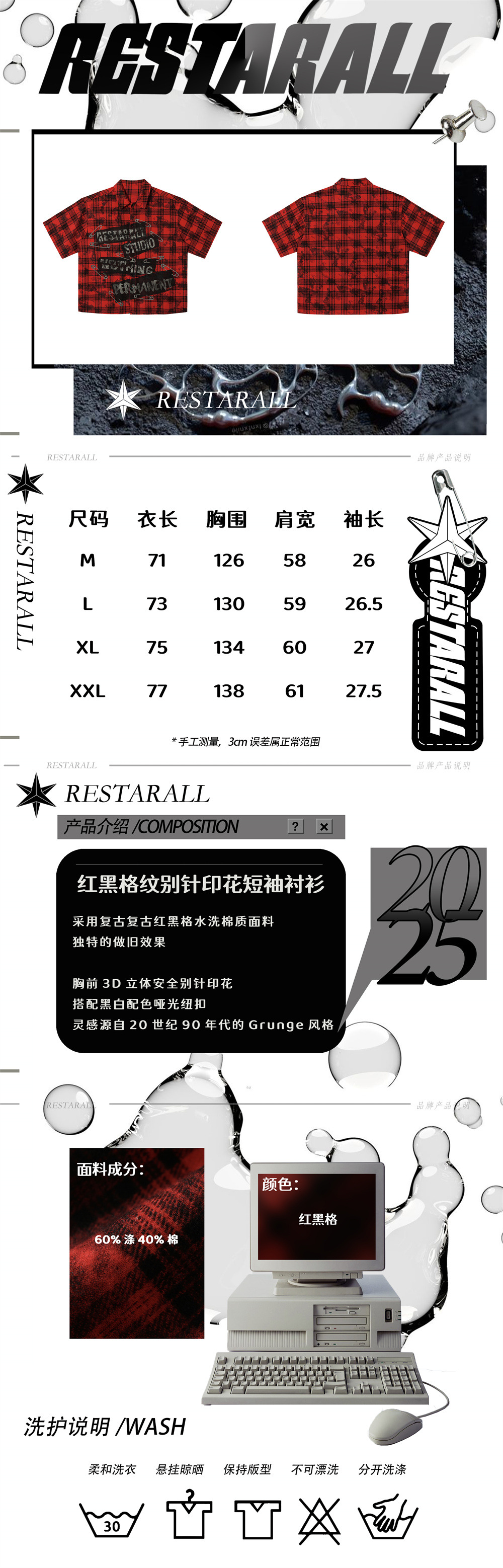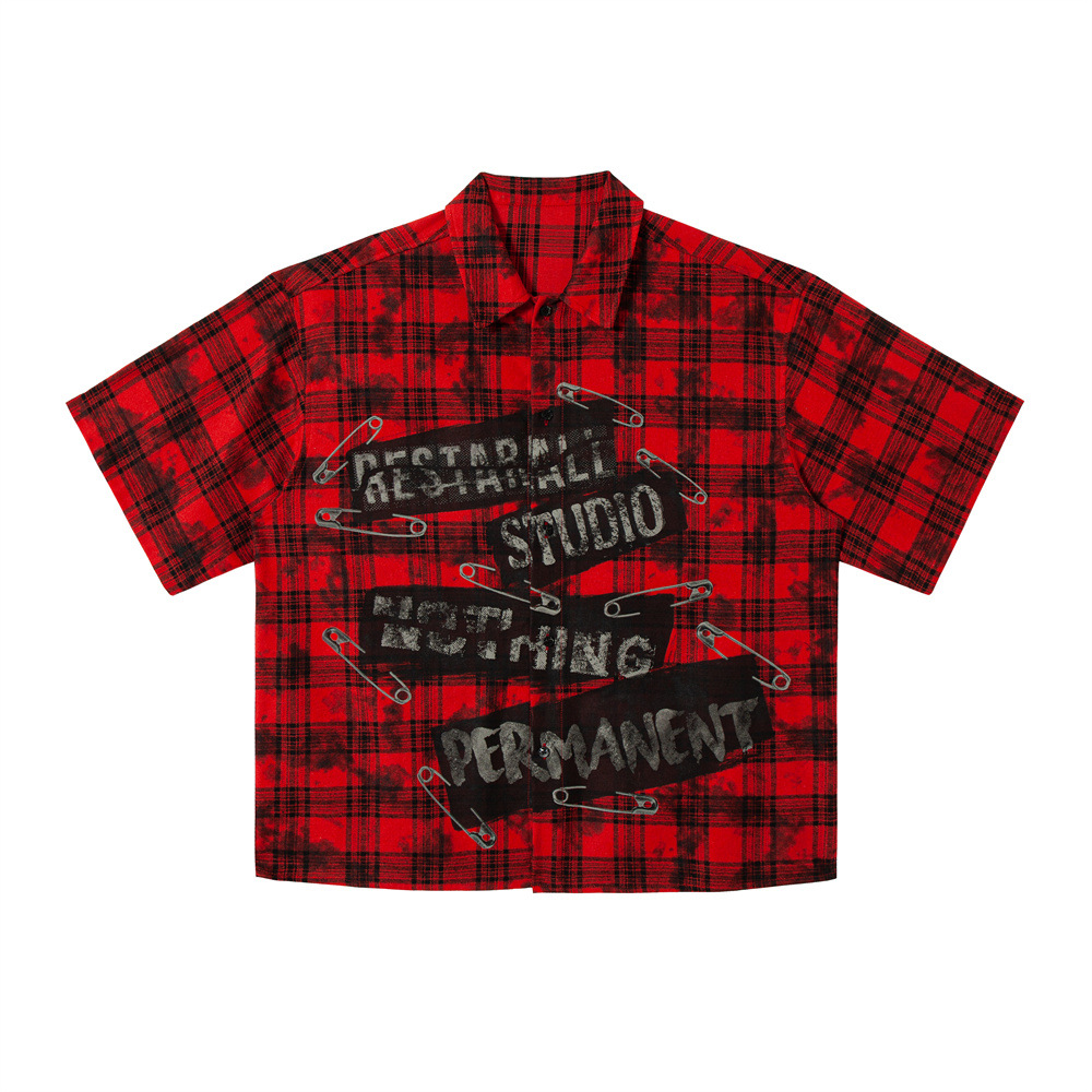 아메리칸 스타일 레트로 남성용 셔츠 남성용 더러운 옷깃 체크 프린트 트렌디 브랜드 느슨한 새 셔츠스토어 가기
