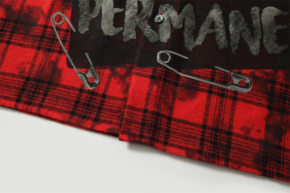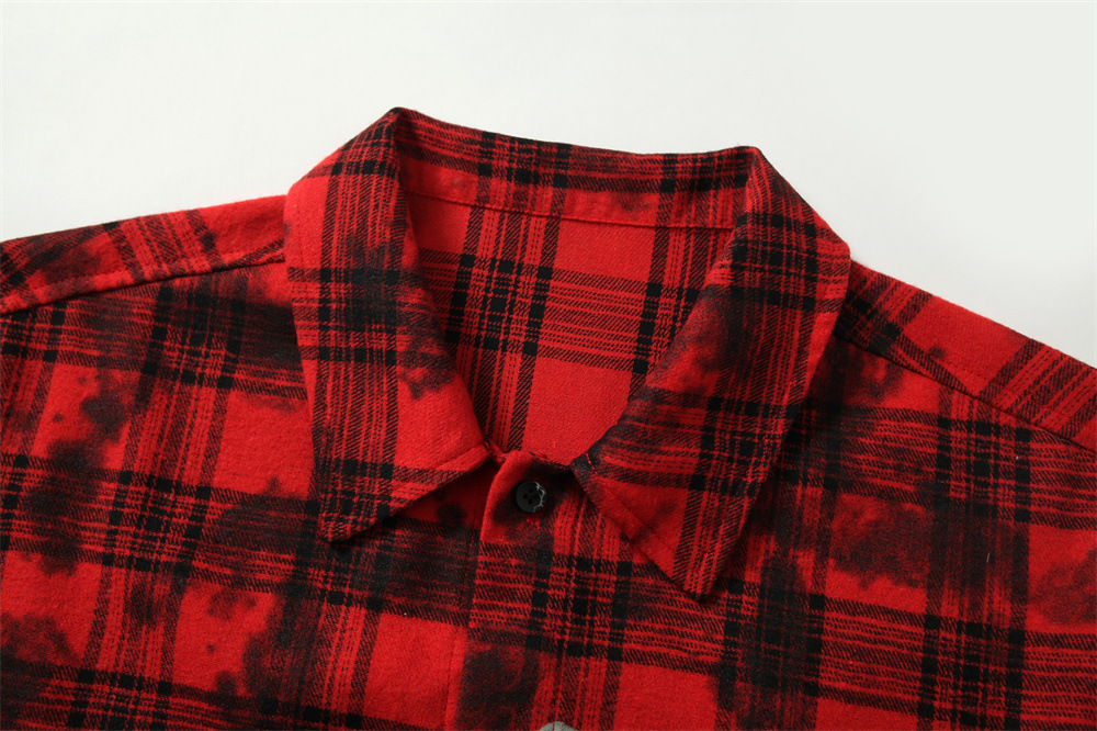 아메리칸 스타일 레트로 남성용 셔츠 남성용 더러운 옷깃 체크 프린트 트렌디 브랜드 느슨한 새 셔츠