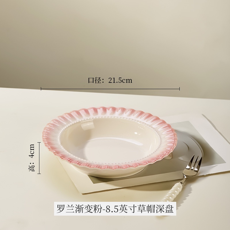 프랑스 스타일 유약 컬러 세라믹 밥 그릇 가정용 접시 2025 새로운 스타일 높은 가치의 밀짚 모자 접시 식기 수프 그릇스토어 가기