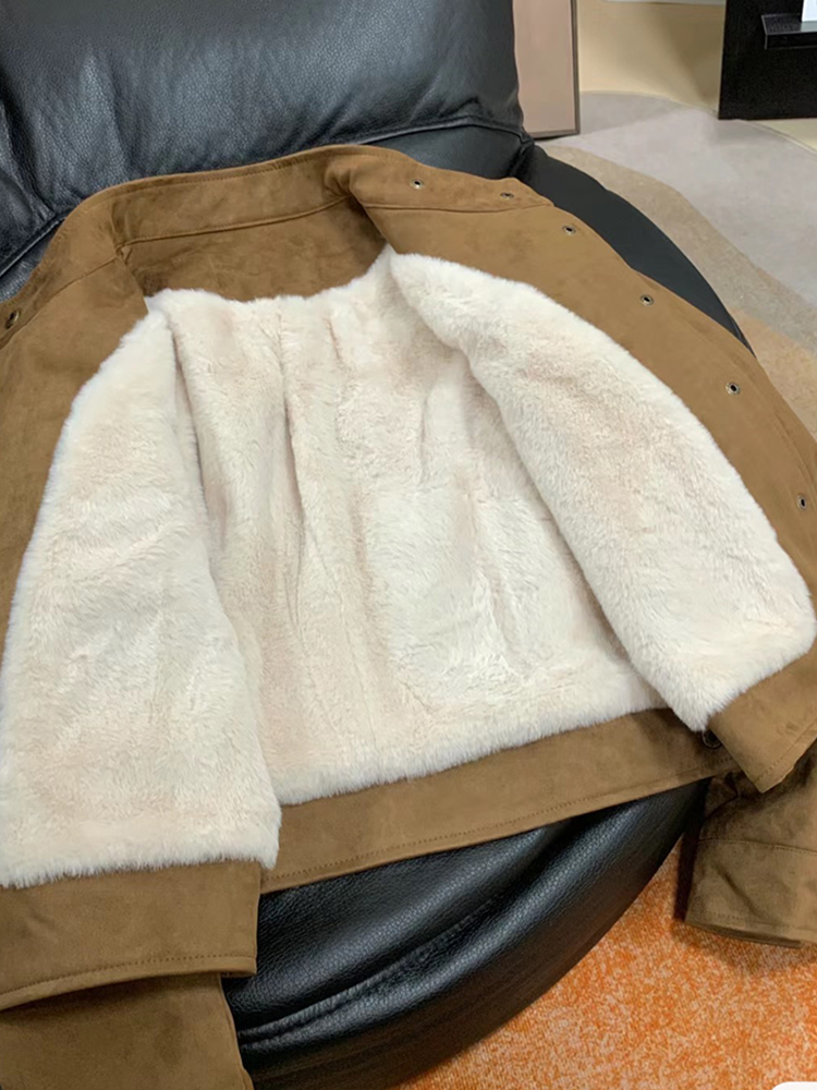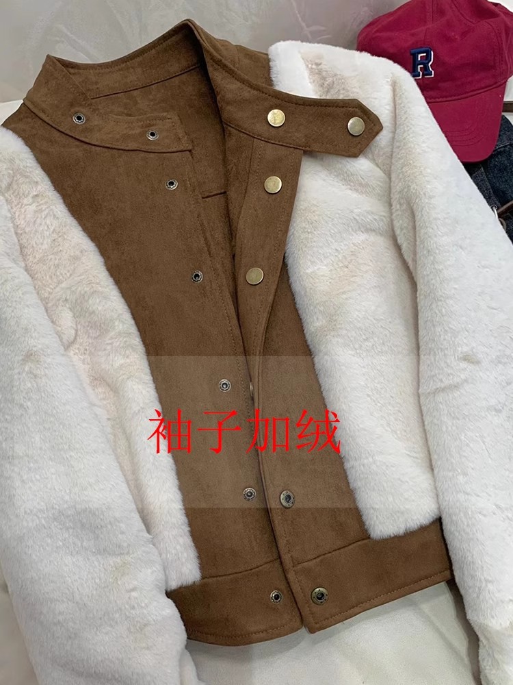 짧은 기모 두꺼운 코트 여성의 가을 겨울 새로운 2025 폭발 한국 캐주얼 인기 작은 재킷 탑