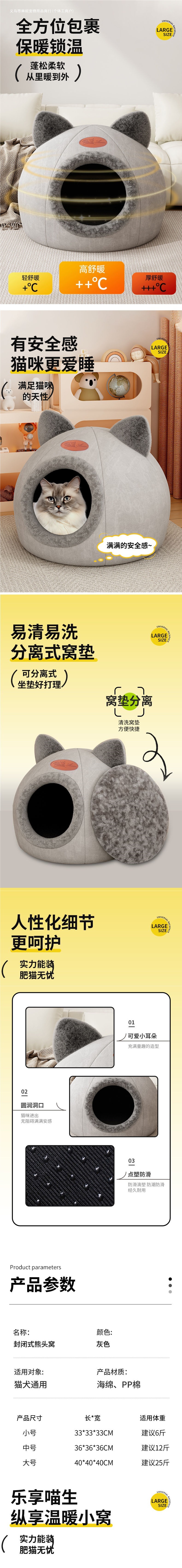 닫힌 고양이 둥지 사계절 유니버설 고양이 집 고양이 빌라 작은 개 둥지 애완 동물 고양이 머리 둥지 고양이 집 매트