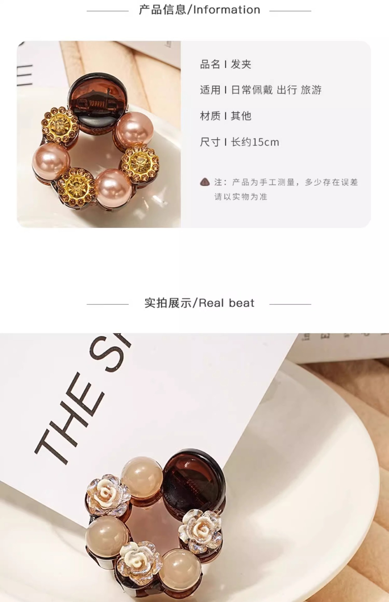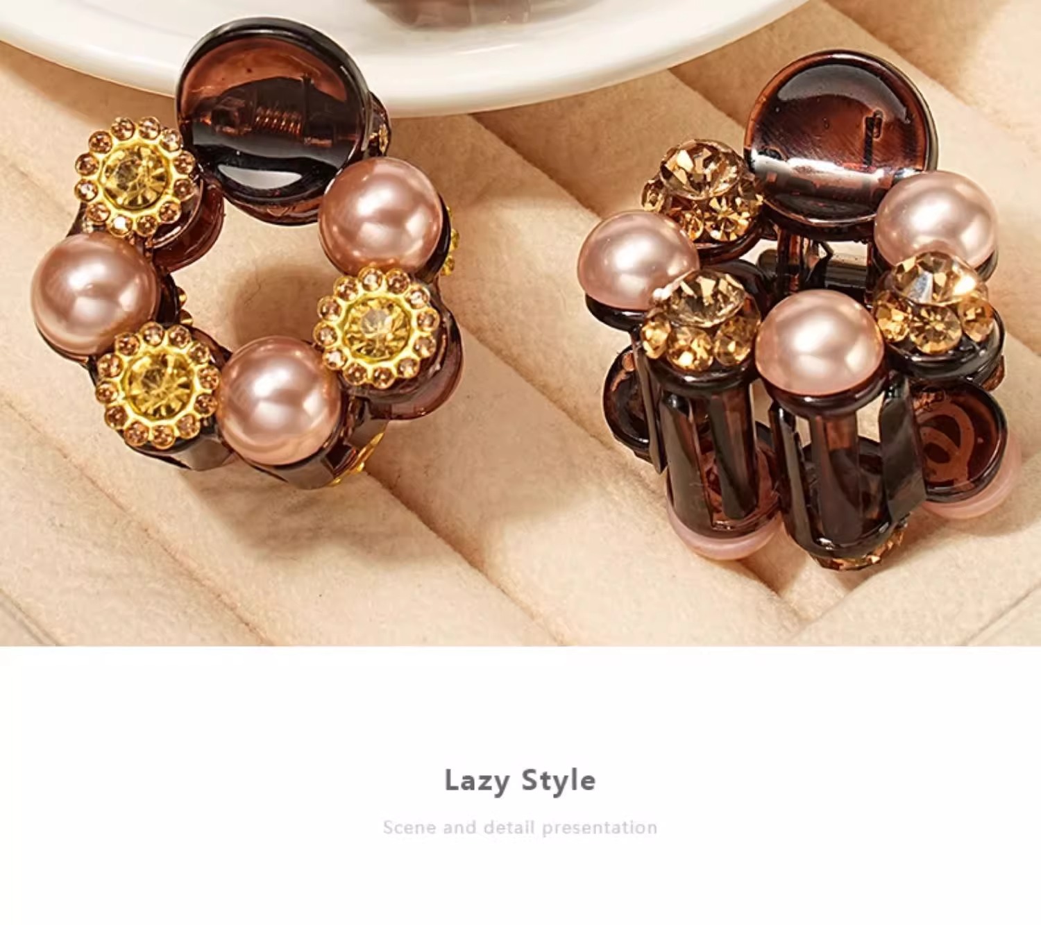 • 샴페인 쉘 비즈와 라인스톤 꽃 모양 약 4cm