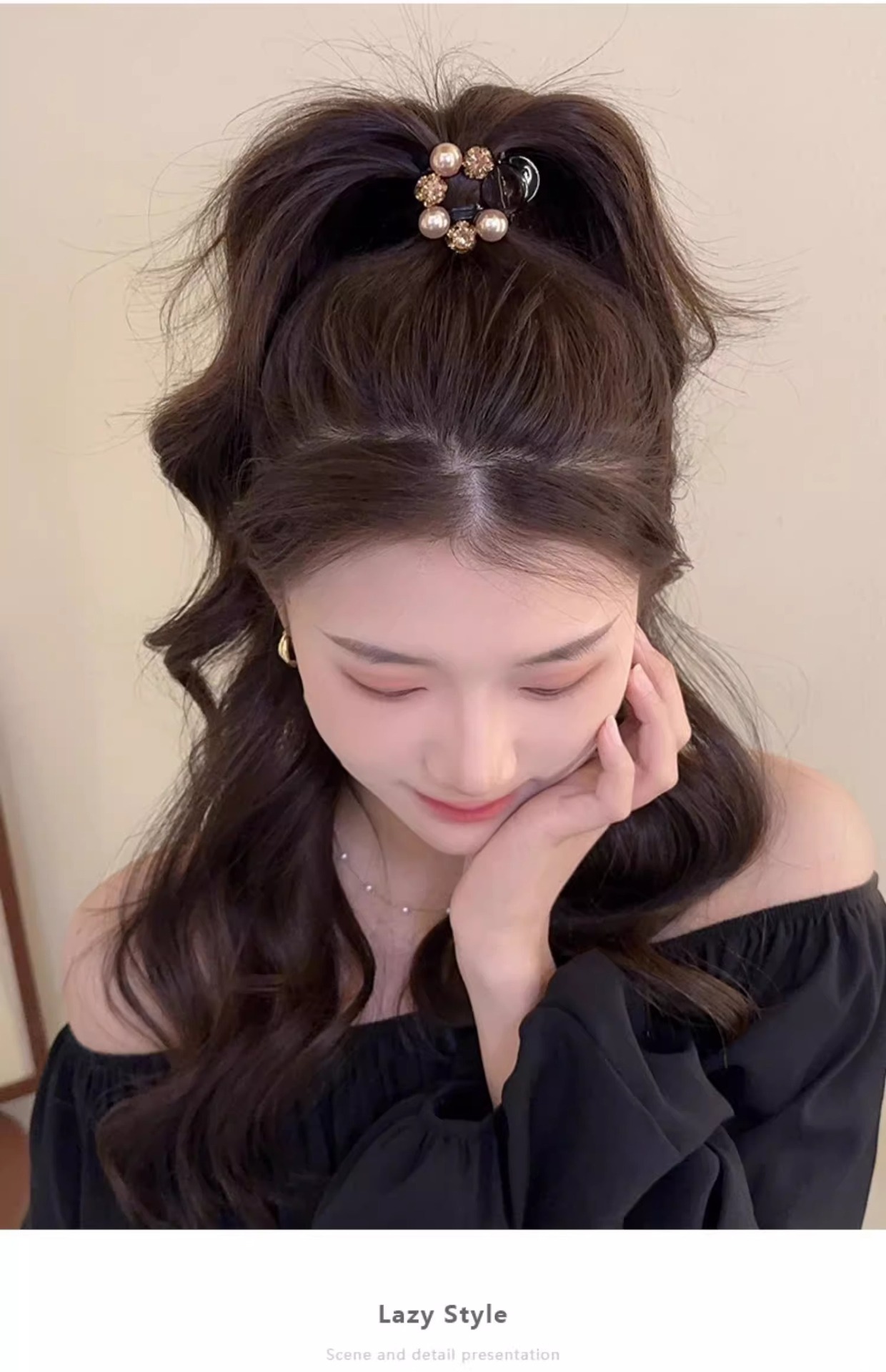 우아한 올 매치 플래시 다이아몬드 작은 잡아 클립 2025 새로운 여성 하이 엔드 하프 타이 헤어핀 절묘한 상어 클립 헤어핀 헤드웨어스토어 가기