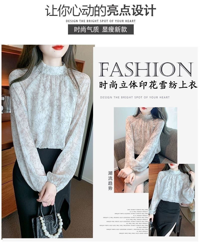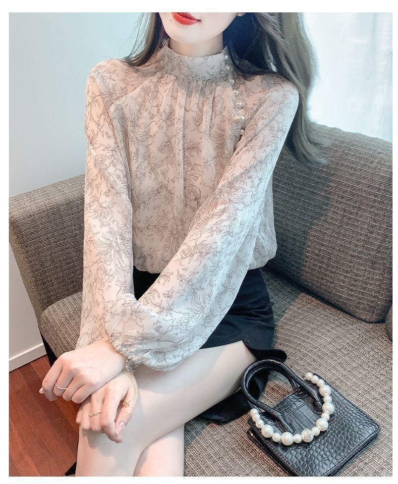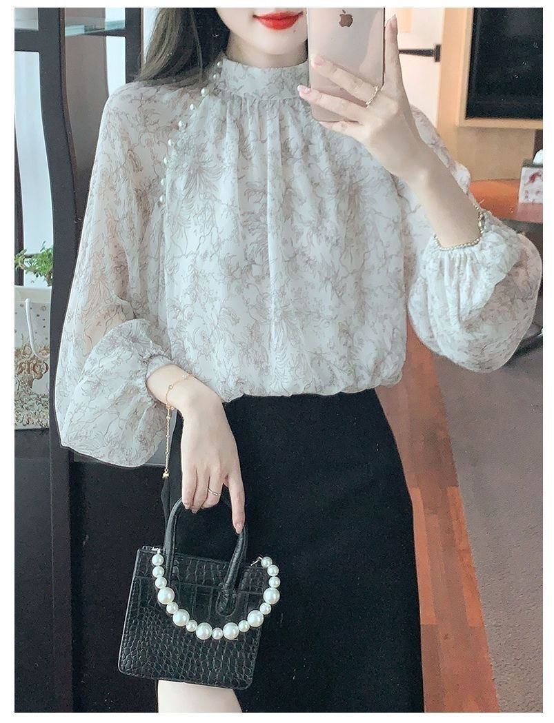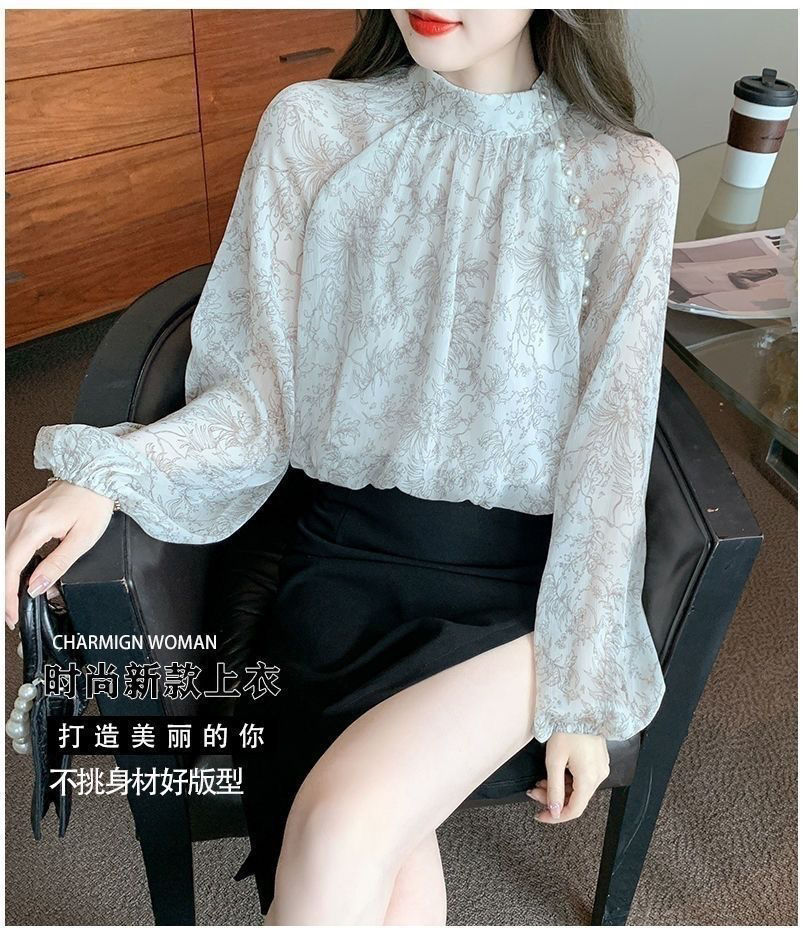 봄 패션 2025 인쇄 긴 소매 쉬폰 셔츠 새로운 스타일 우아한 최고 세련된 나이 감소 서양 스타일 작은 셔츠스토어 가기