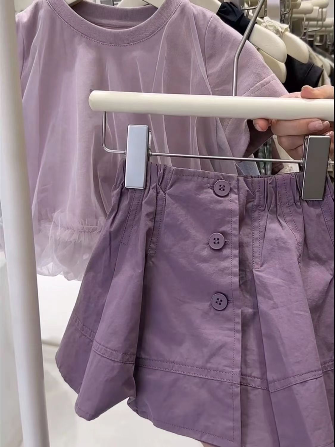 한국 여자 세트 25 여름 서양식 어린이 슈퍼 페어리 쉬폰 티셔츠 어린이 단색 스커트 투피스 세트