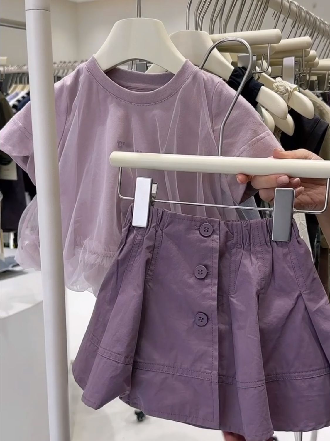 한국 여자 세트 25 여름 서양식 어린이 슈퍼 페어리 쉬폰 티셔츠 어린이 단색 스커트 투피스 세트스토어 가기