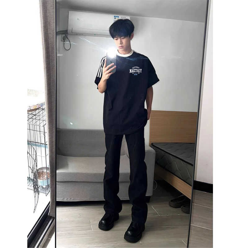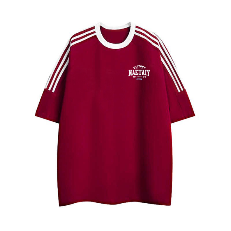 100 퓨어 코튼 봄과 여름 코스트사이즈 느슨한 느슨한 반소매 티셔츠 남성용 레트로 홍콩 스타일 Ins Letter 반팔 티셔츠 새로운 도착 느슨한 반소매