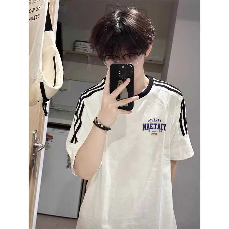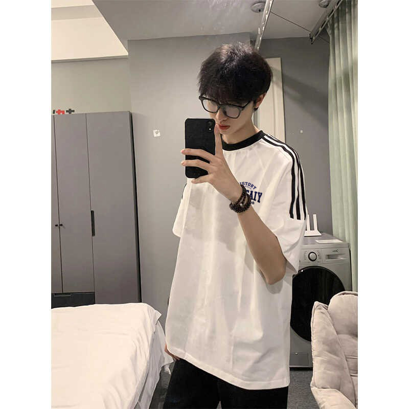 100 퓨어 코튼 봄과 여름 코스트사이즈 느슨한 느슨한 반소매 티셔츠 남성용 레트로 홍콩 스타일 Ins Letter 반팔 티셔츠 새로운 도착 느슨한 반소매스토어 가기