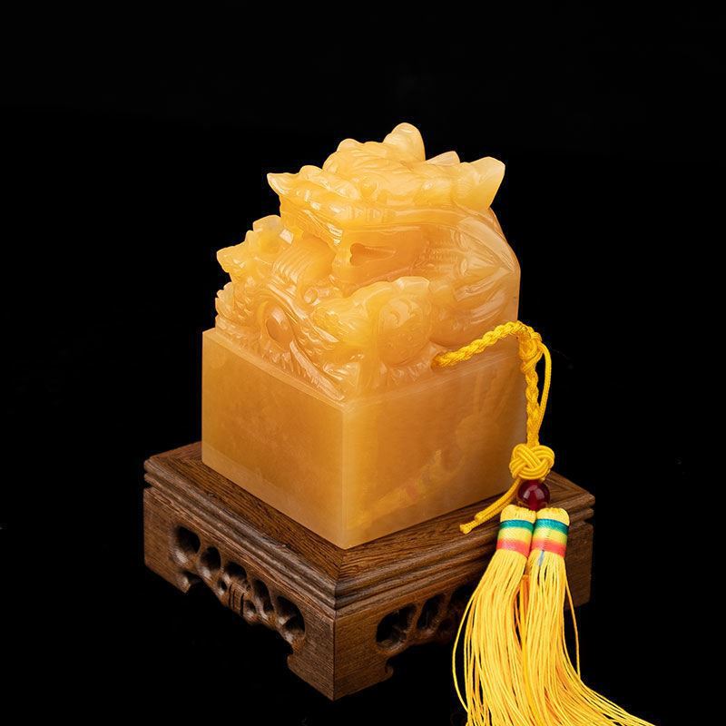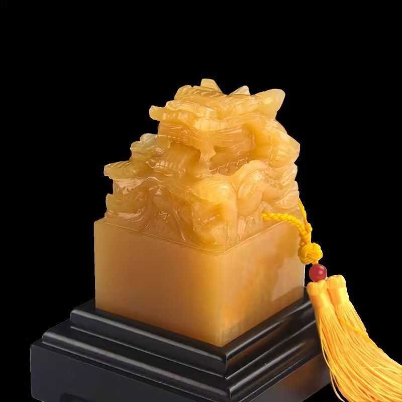 자연 노란색 옥 지울롱 인감, 홈 오피스 조각을위한 대형 옥 인감 모집스토어 가기