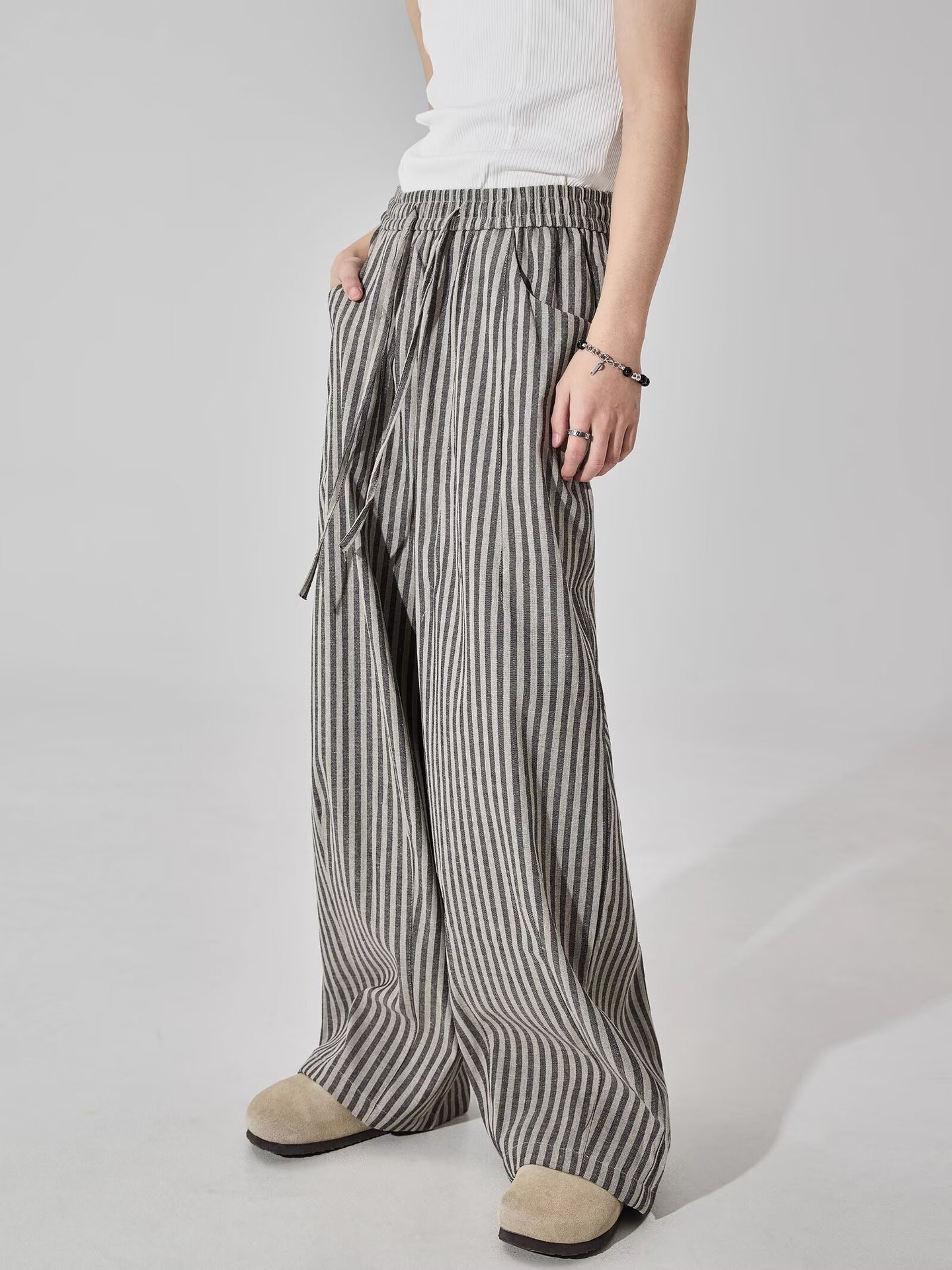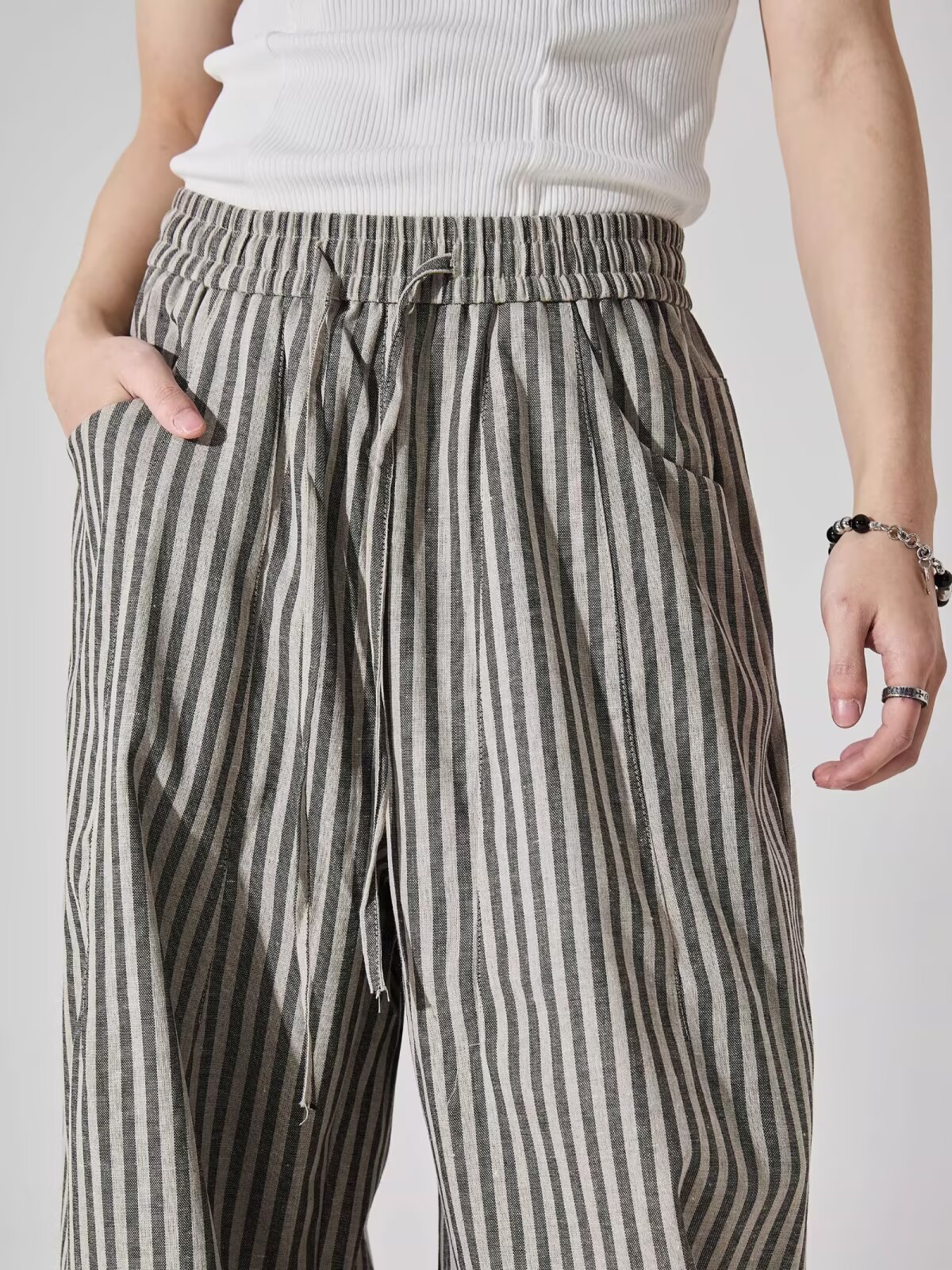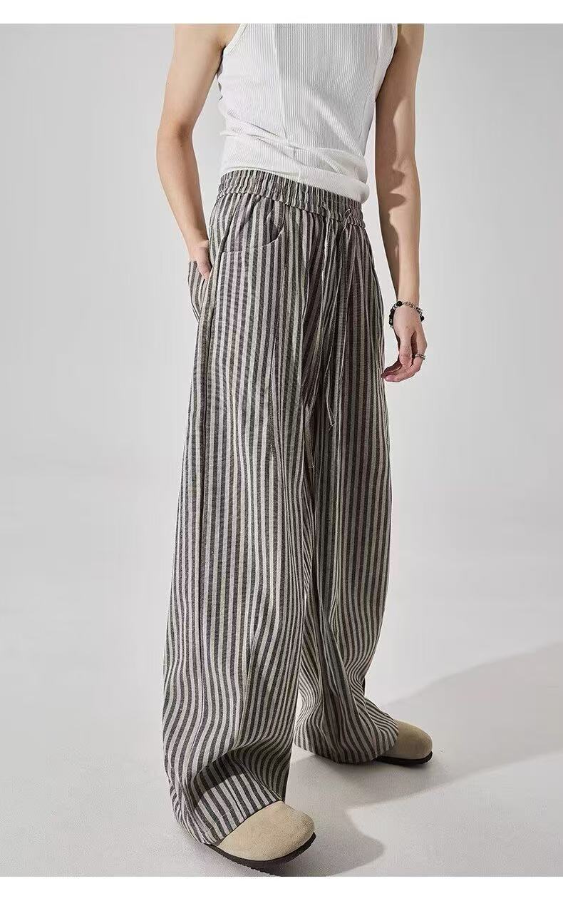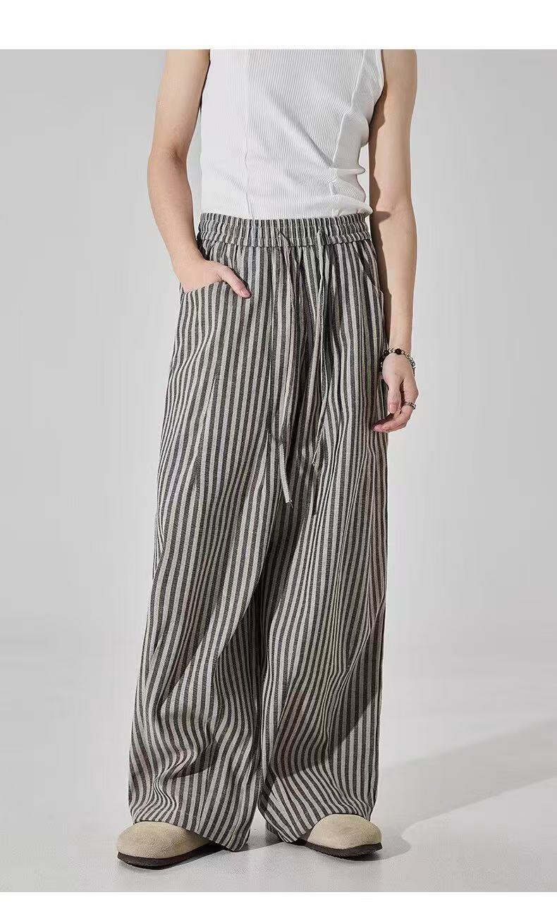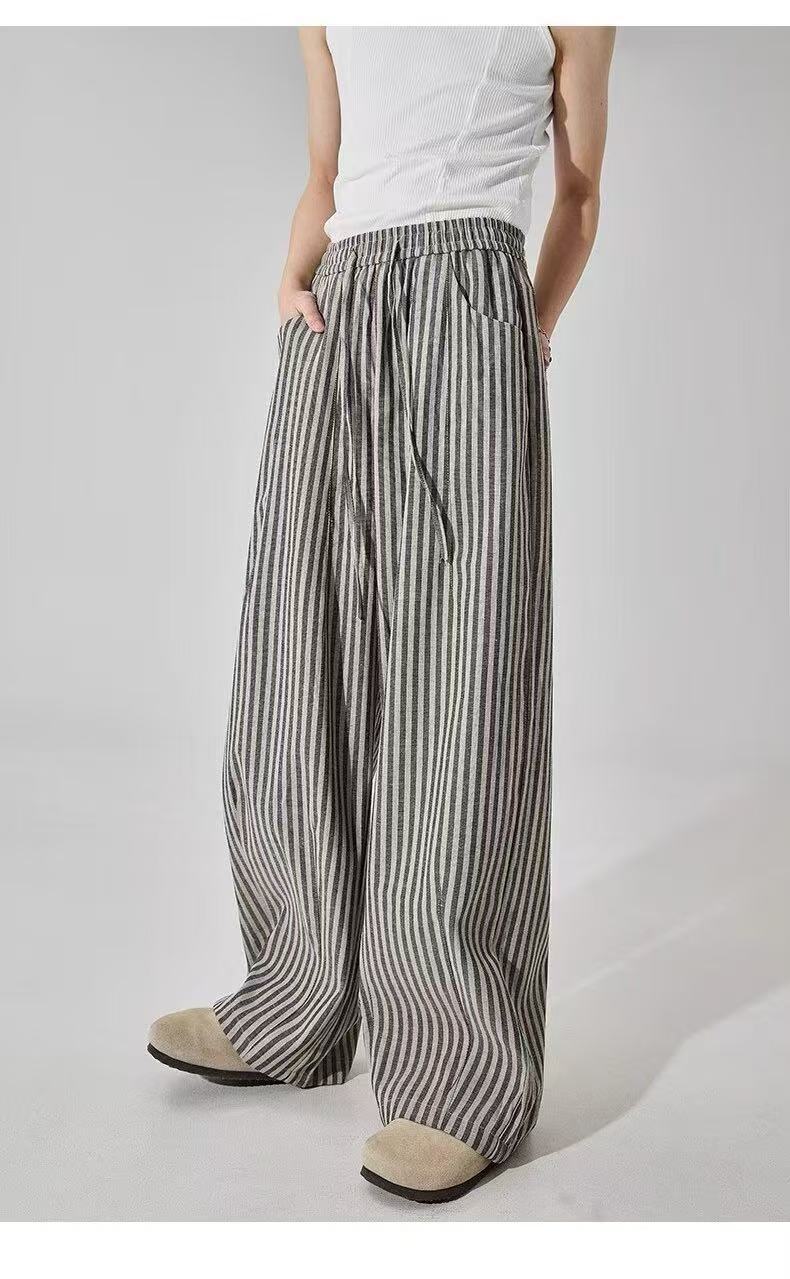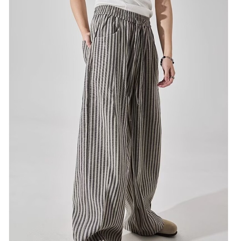 자연 한국 스타일 캐주얼 느슨한 격자 무늬 바지 여성 이른 봄 새로운 독특한 높은 허리 캐주얼 스트레이트 느슨한 긴 바지