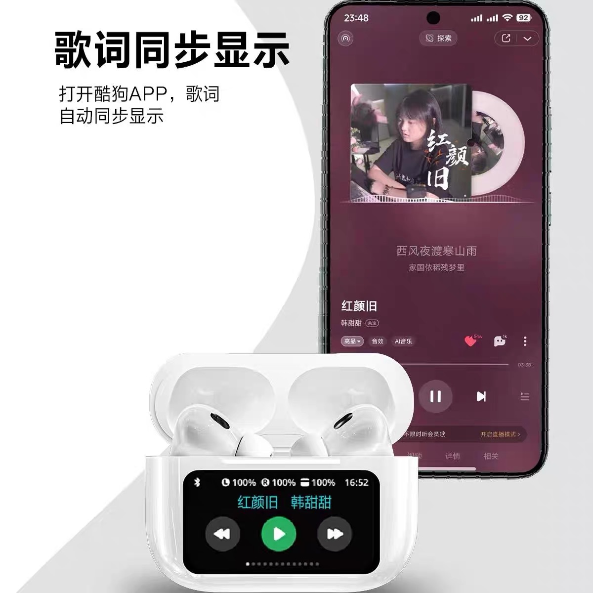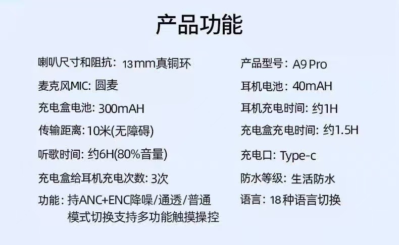 • A9PRO 풀 컬러 스크린 ANC 소음 감소 헤드폰(화이트)