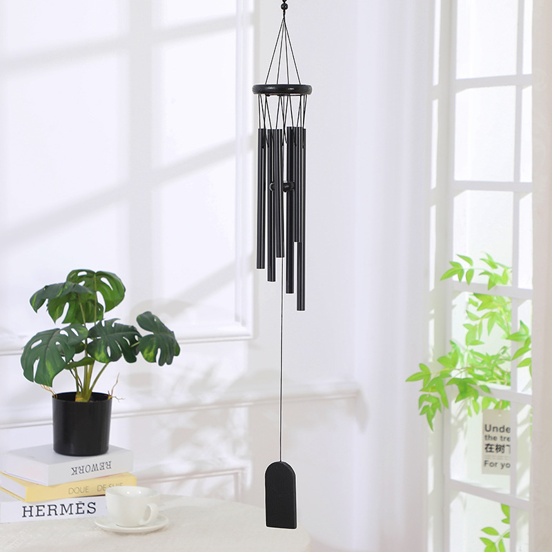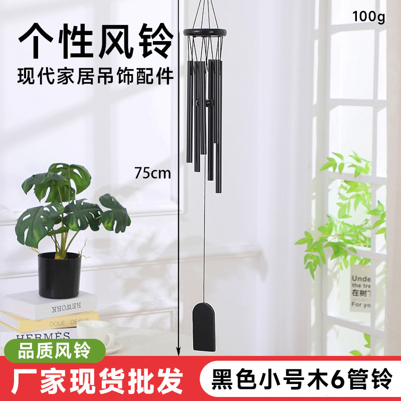 현대 간단한 바람 차임 스몰 사이즈 블랙 우드 6 파이프 벨 정원 교수형 장식 홈 교수형 액세서리 맞춤형 도어 헤드 바람 차임