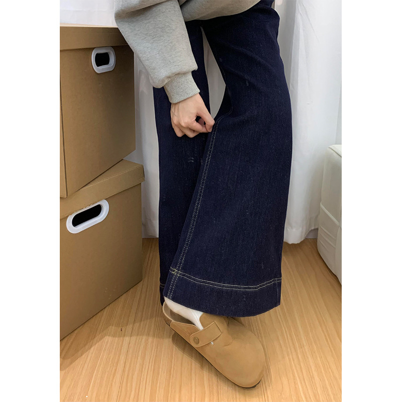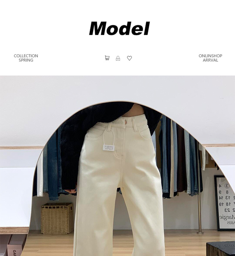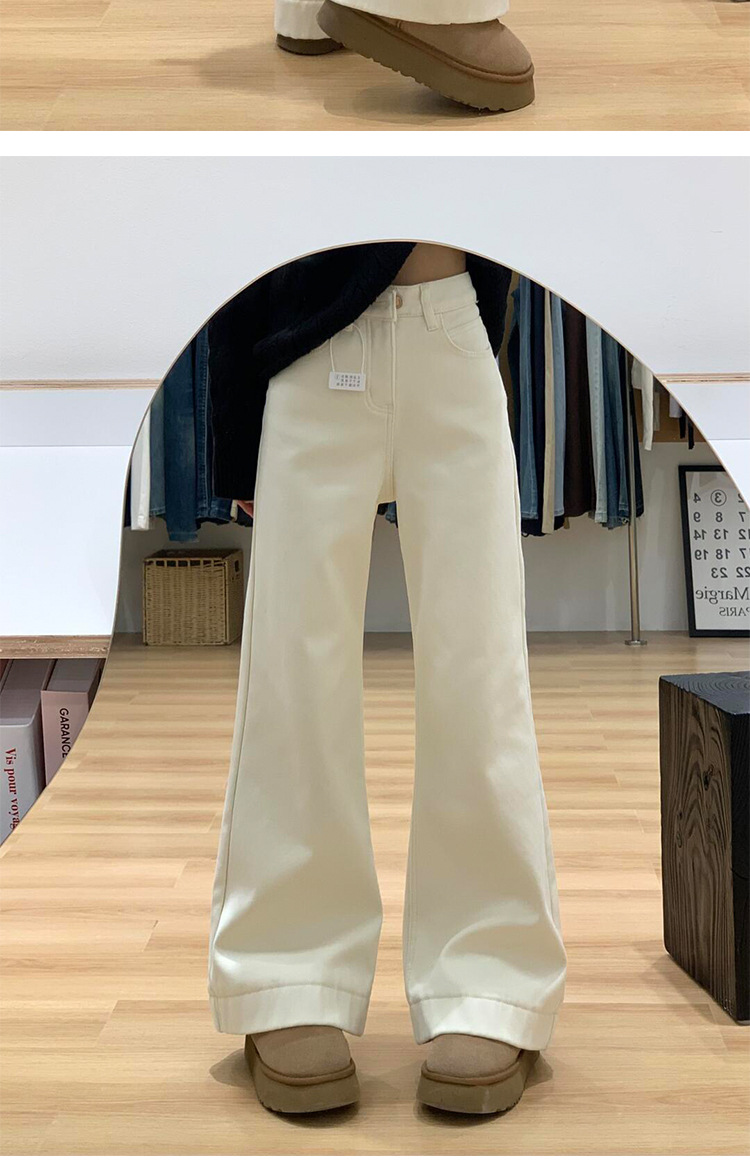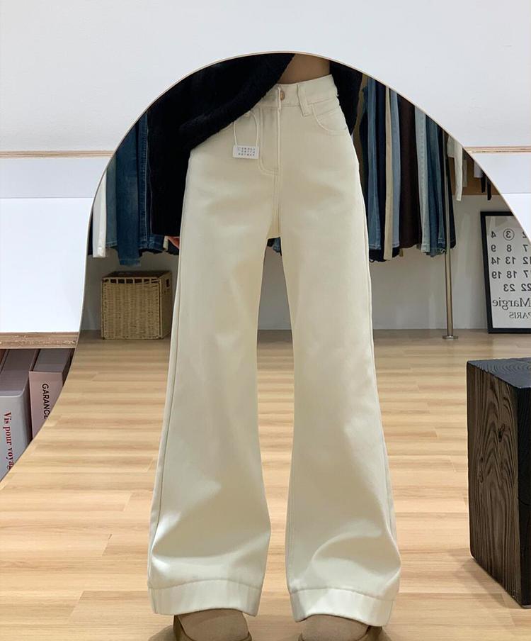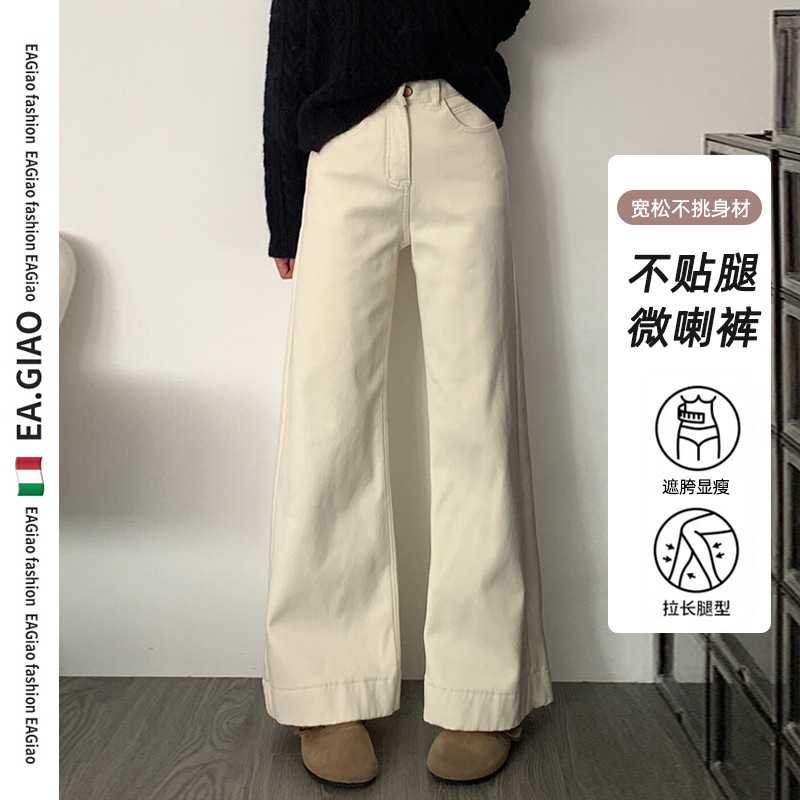 아이보리 마이크로 와이드 레그 청바지 여성 2025 년 새 여름 살구색 다리를 잃지 않음 높은 허리 경적 바지스토어 가기