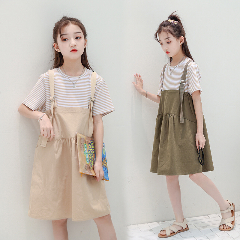 여자 원피스 여름 원피스 2024 새로운 10 어린이 여름 치마 11 큰 어린이 스트랜드 원피스 12 면 13 세