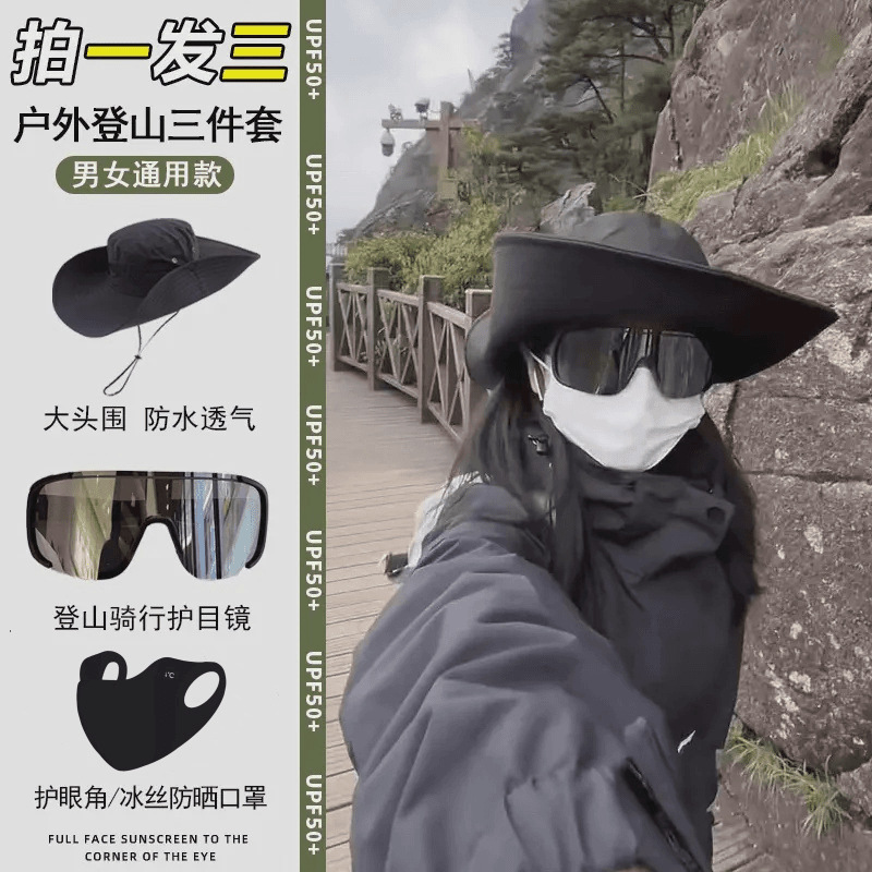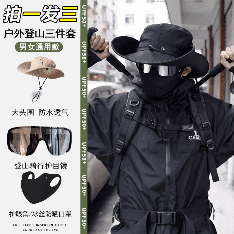 여름 야외 등산 모자 3 피스 등산 장비 눈 안경 아이스 실크 마스크 통기성